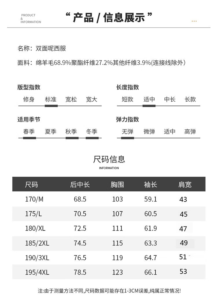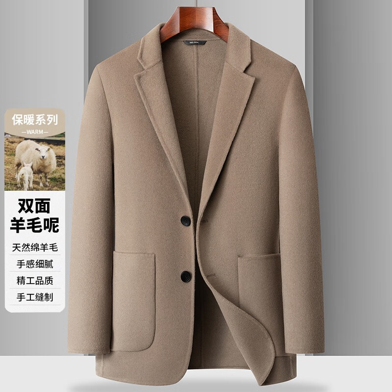 ROMON wool double-sided woolen suit men's 25 spring, autumn and winter cashmere business casual suit jacket woolen coat caramel color 70 wool (net content 68.9%) M (size 48/weight-115Jin Jin equals 0.5 kg)