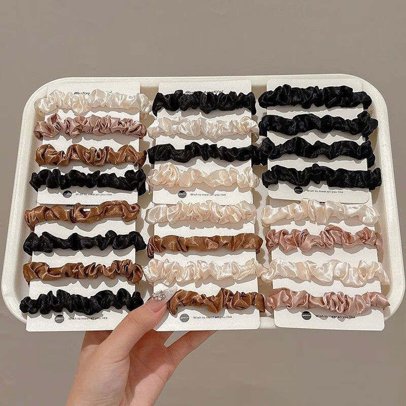 Headband for women, high-elasticity and durable rubber band hair rope, high-end French small intestine hair tie, hair accessories, adult leather case, 8 pieces of satin feel, mixed colors, random colors