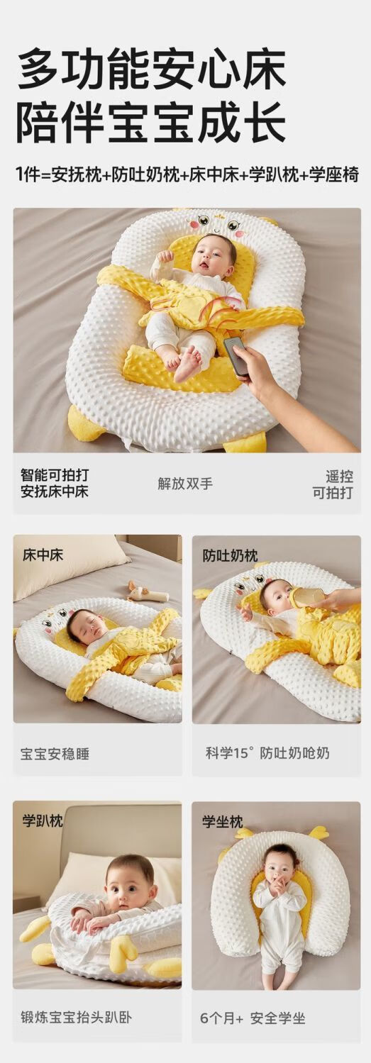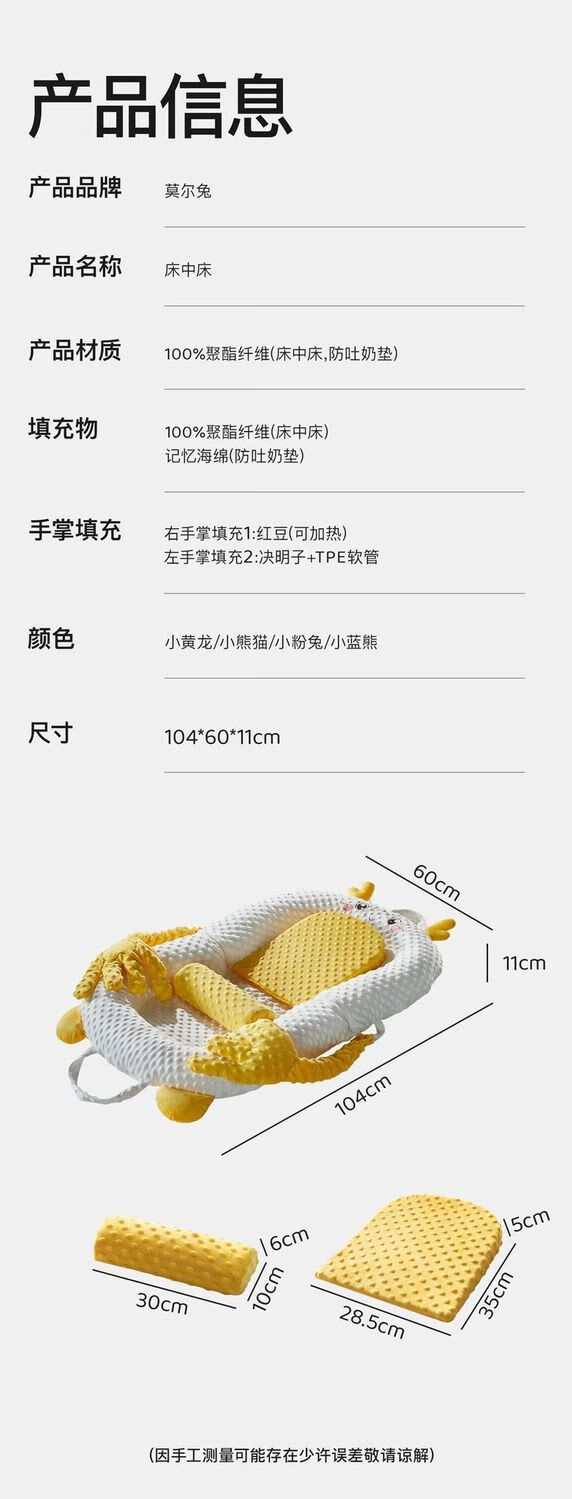 Moll Rabbit crib is a bed-in-a-bed that is electric and can be slapped for newborn babies to prevent jumps and soothe the slope. The bionic floor-to-ceiling artifact is a new model. Little Blue Bear. Cartoon sleeping bionic bed-in-bed. Anti-vomiting model. Patting to lull you to sleep + hot compress to warm the belly. Free slope mat.