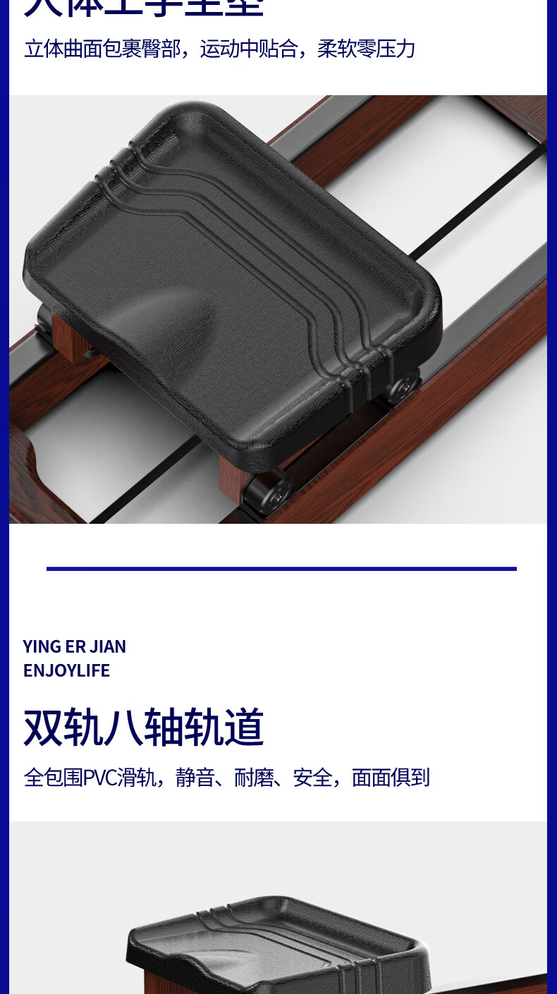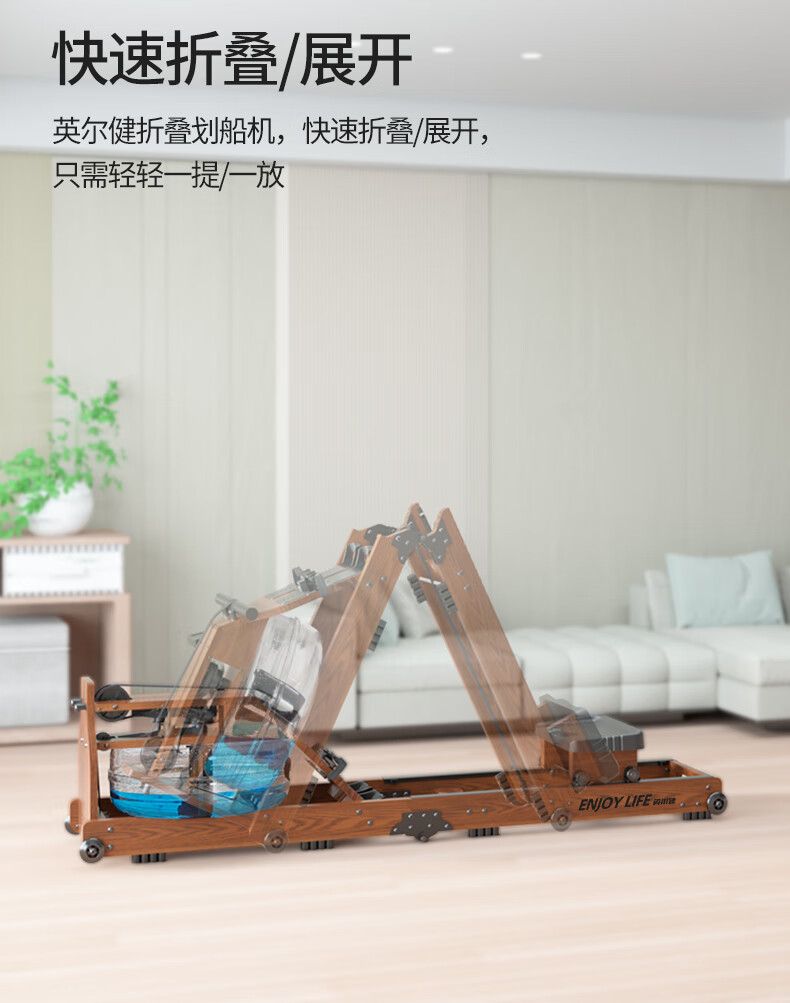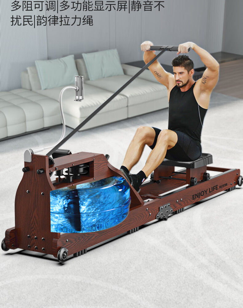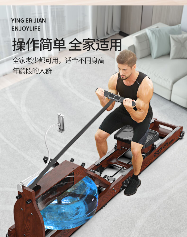 Yingerjian Electric Water Resistance Smart Rowing Machine Foldable Resistance Adjustable Household Indoor Silent Fitness Exercise Equipment Foldable Model Free of Installation Imported Rosewood - Black - Smart Electronic Watch + Personal Training Year