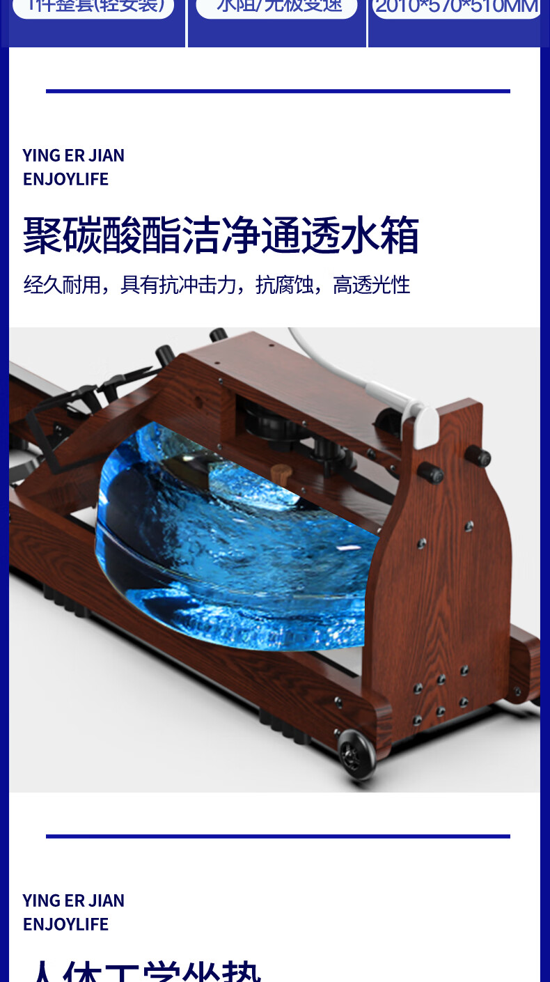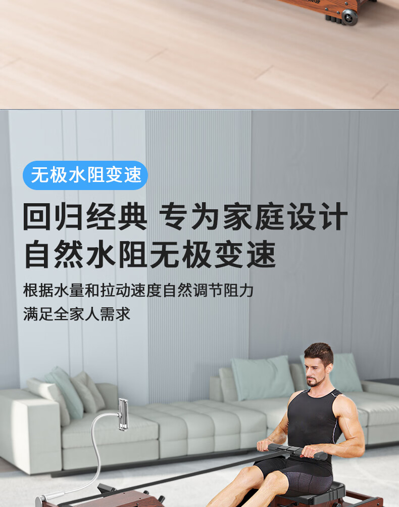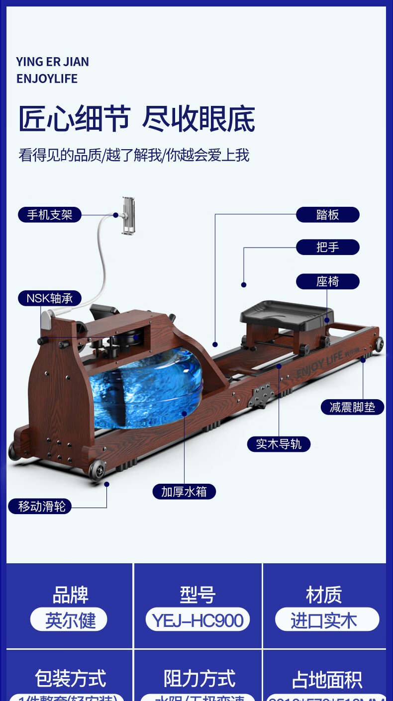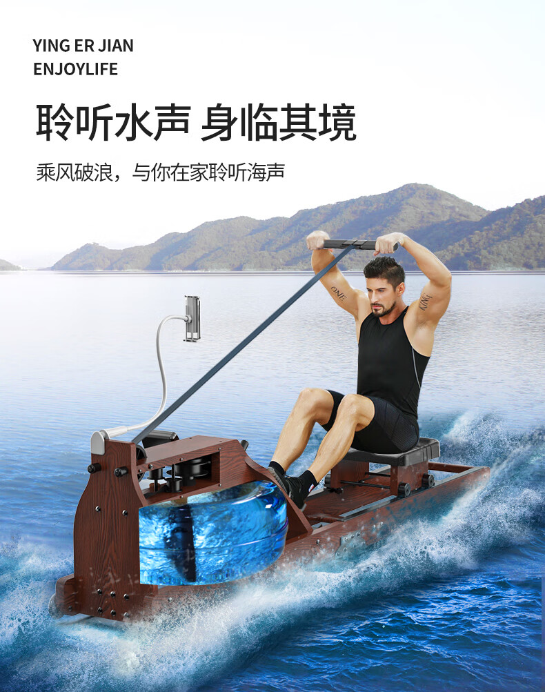 Yingerjian Electric Water Resistance Smart Rowing Machine Foldable Resistance Adjustable Household Indoor Silent Fitness Exercise Equipment Foldable Model Free of Installation Imported Rosewood - Black - Smart Electronic Watch + Personal Training Year