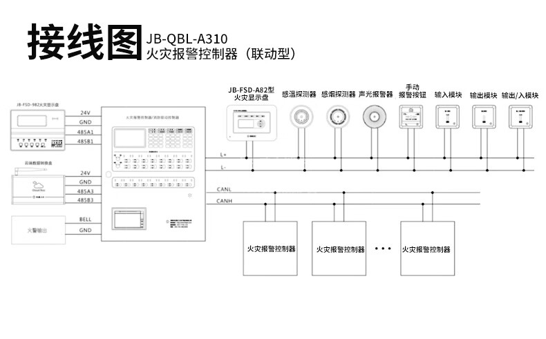 泛海三江消防报警主机JB-QBL-A310火灾报警控制器/消防联动控制器 A310/100点 (含9点总线带8点多线)
