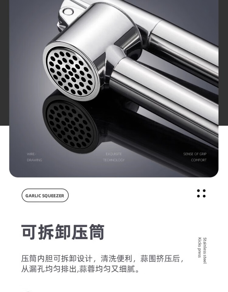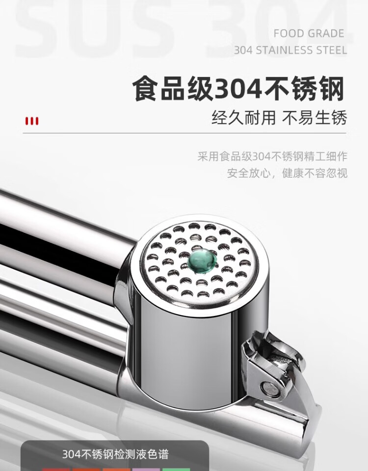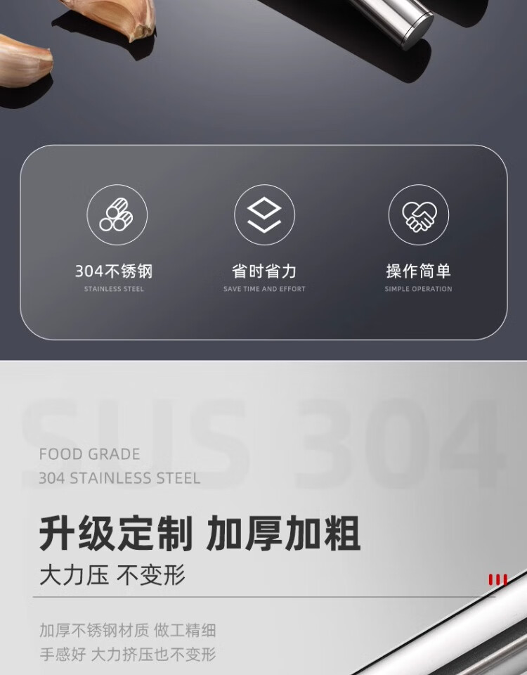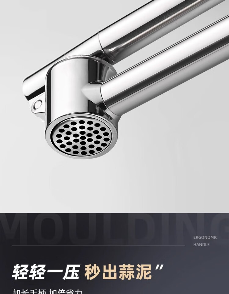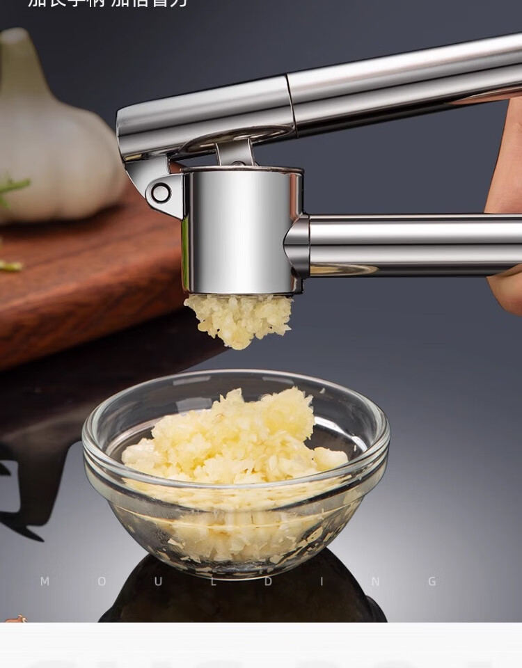 Fanyu imported quality 304 stainless steel garlic press from Germany. Manually clamp garlic, peel garlic, mince garlic, mince garlic, mince garlic and mash. Longer and larger, more labor-saving. 304 stainless steel press