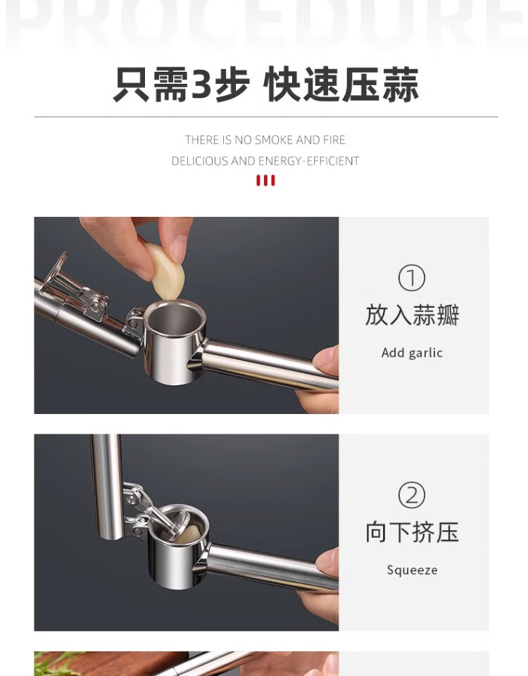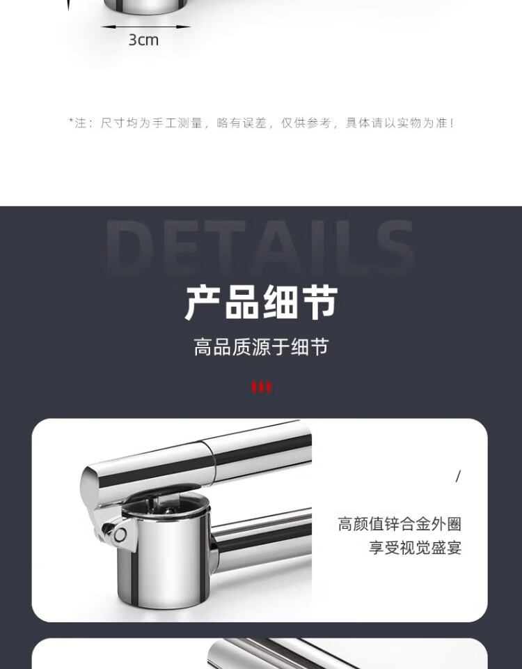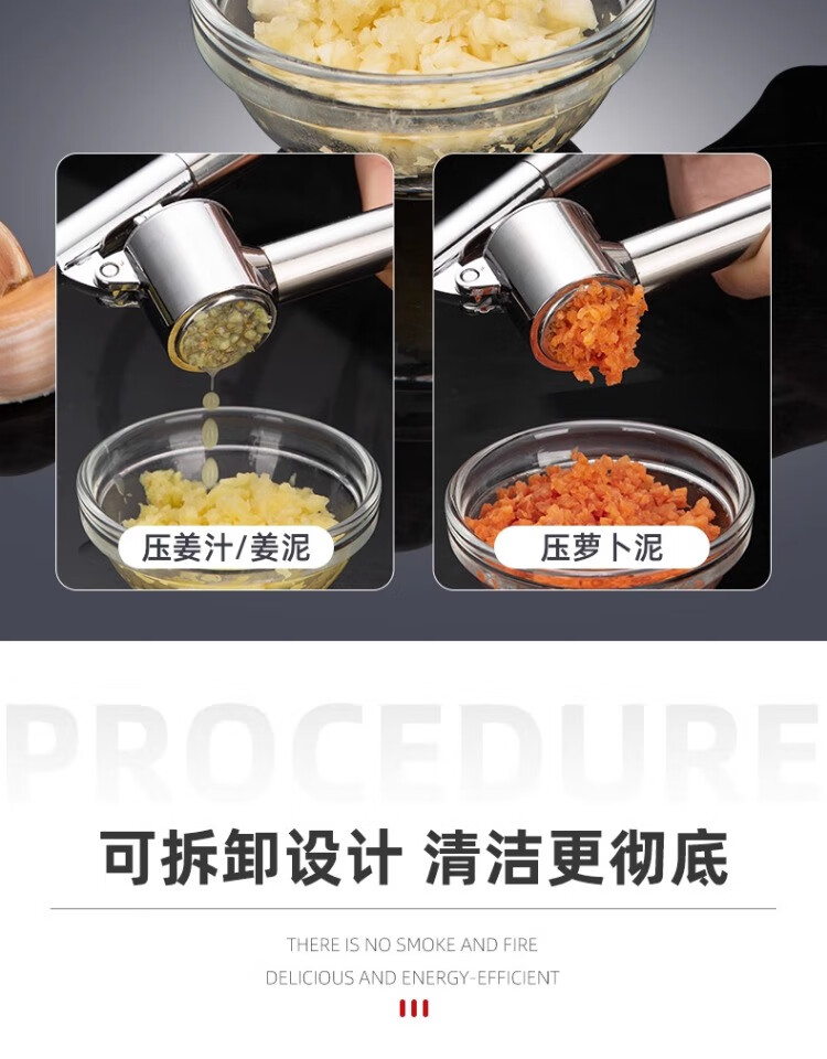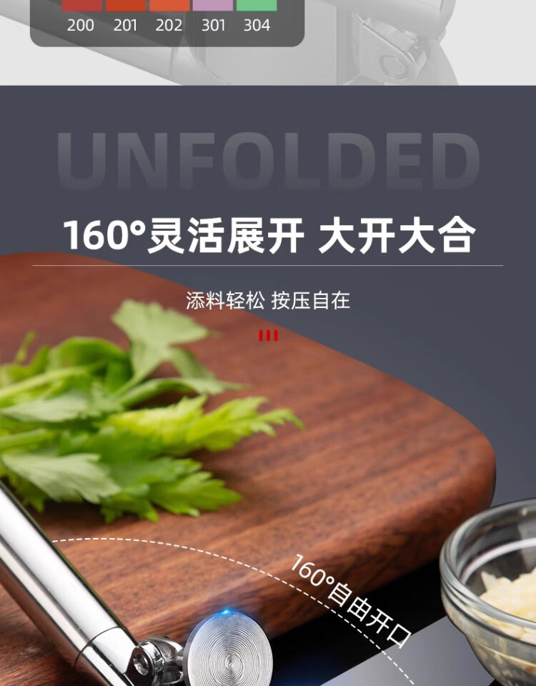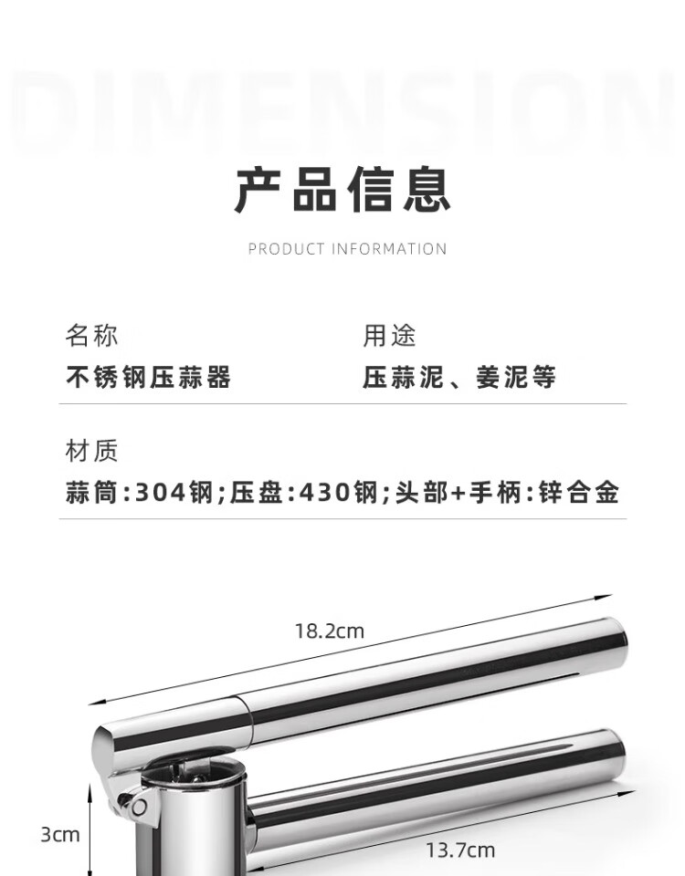 Fanyu imported quality 304 stainless steel garlic press from Germany. Manually clamp garlic, peel garlic, mince garlic, mince garlic, mince garlic and mash. Longer and larger, more labor-saving. 304 stainless steel press