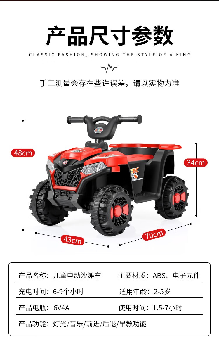 RSRDDY children's electric beach car four-wheel car male and female baby toy charging remote control car can seat people red electric model + early education music and lighting + USB