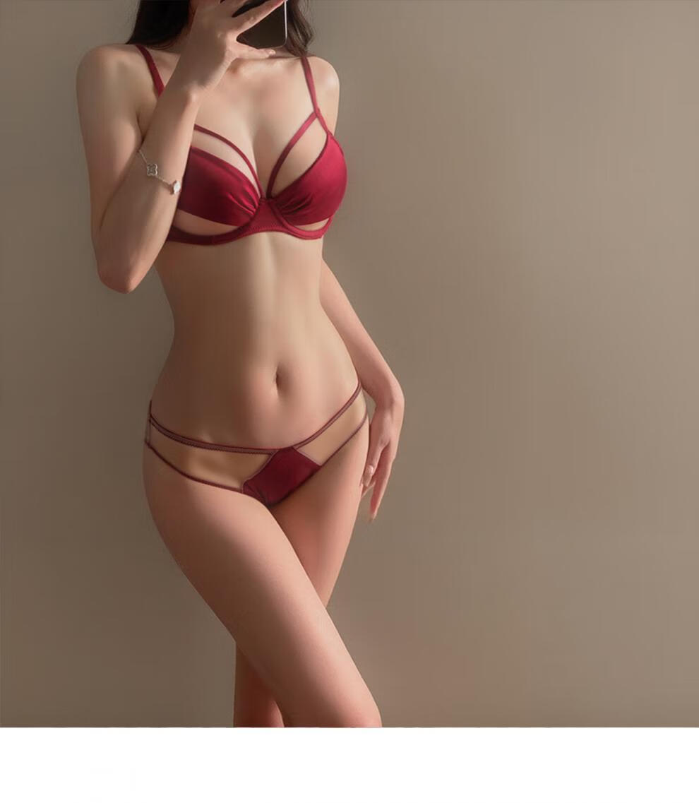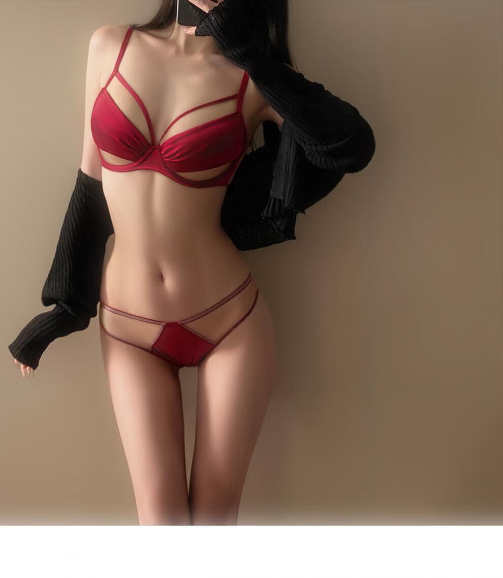 Victoria's Style Sexy Secret Sexy Plus Size Underwear Women's Thin Push-Up Big Breasts Show Small Zodiac Year Red Bra Set Gift Red Set 75E 34