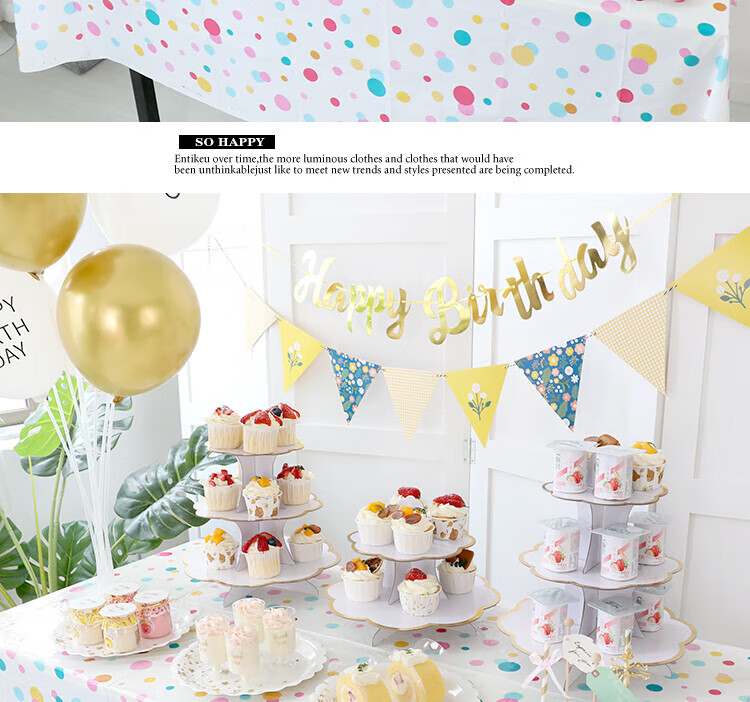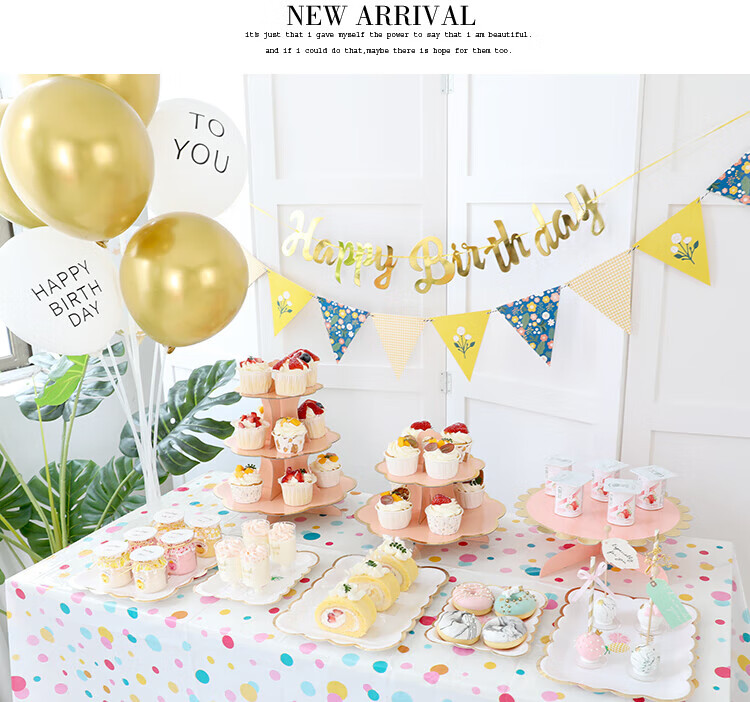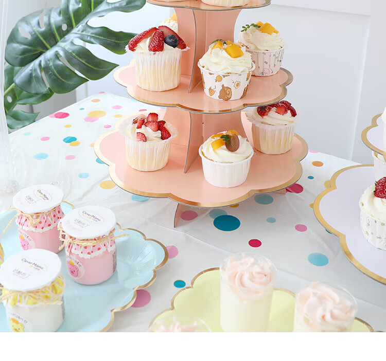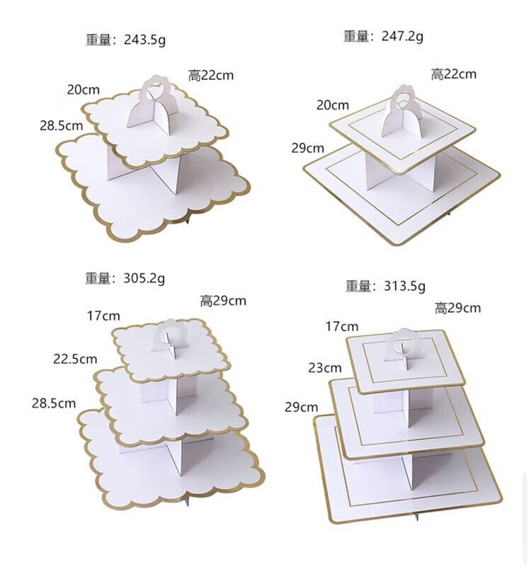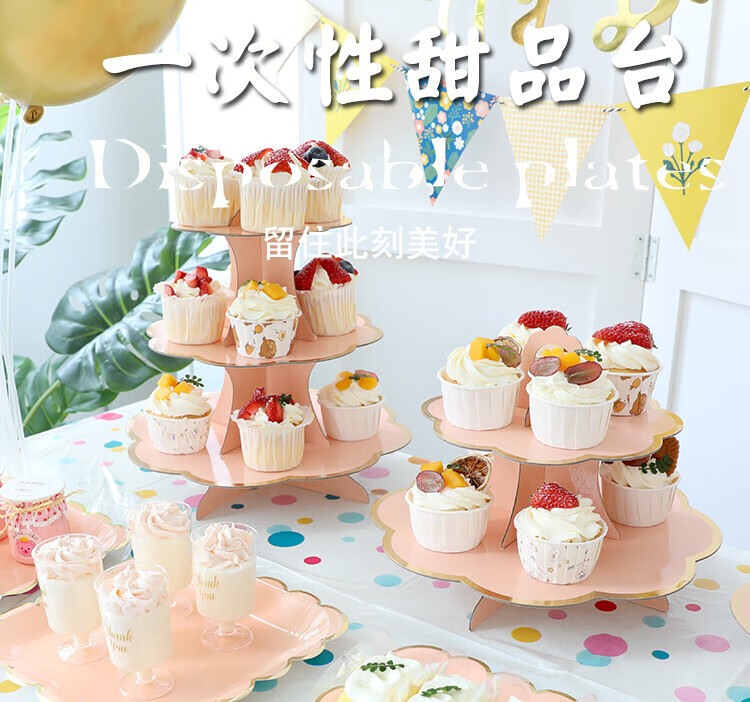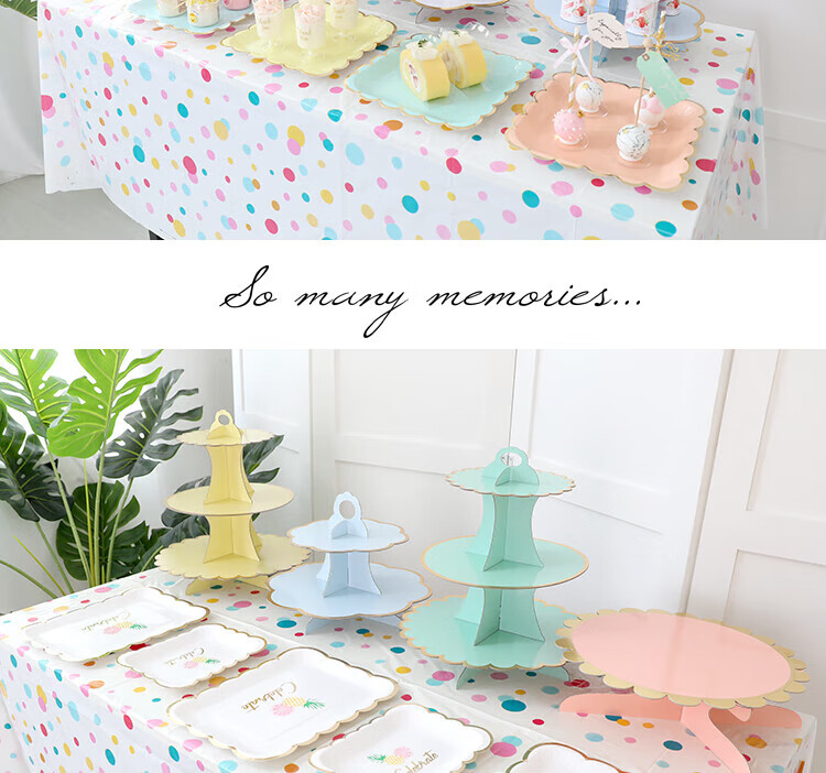 He Jiagong birthday arrangement dessert table ornaments wedding display shelf disposable three-layer table cake tray snack rack white dessert table large wave white package 70
