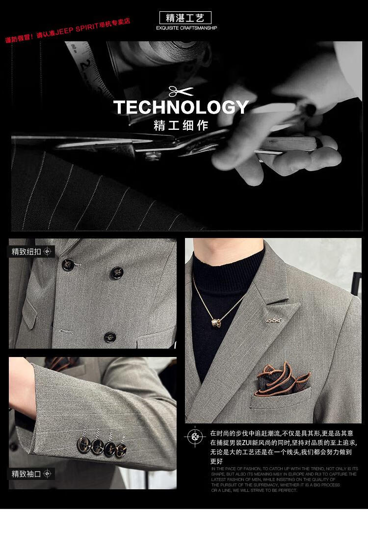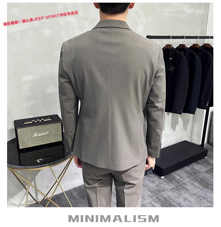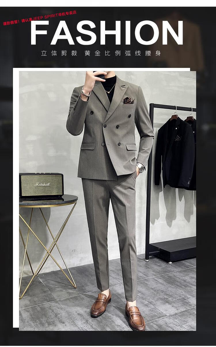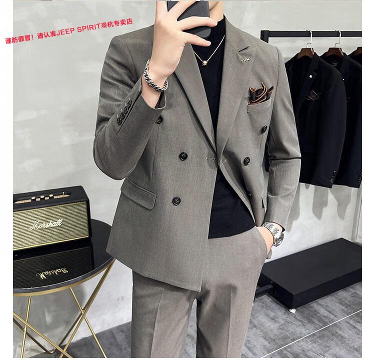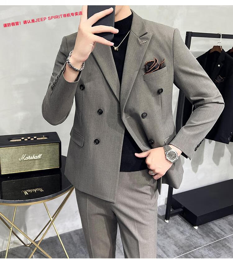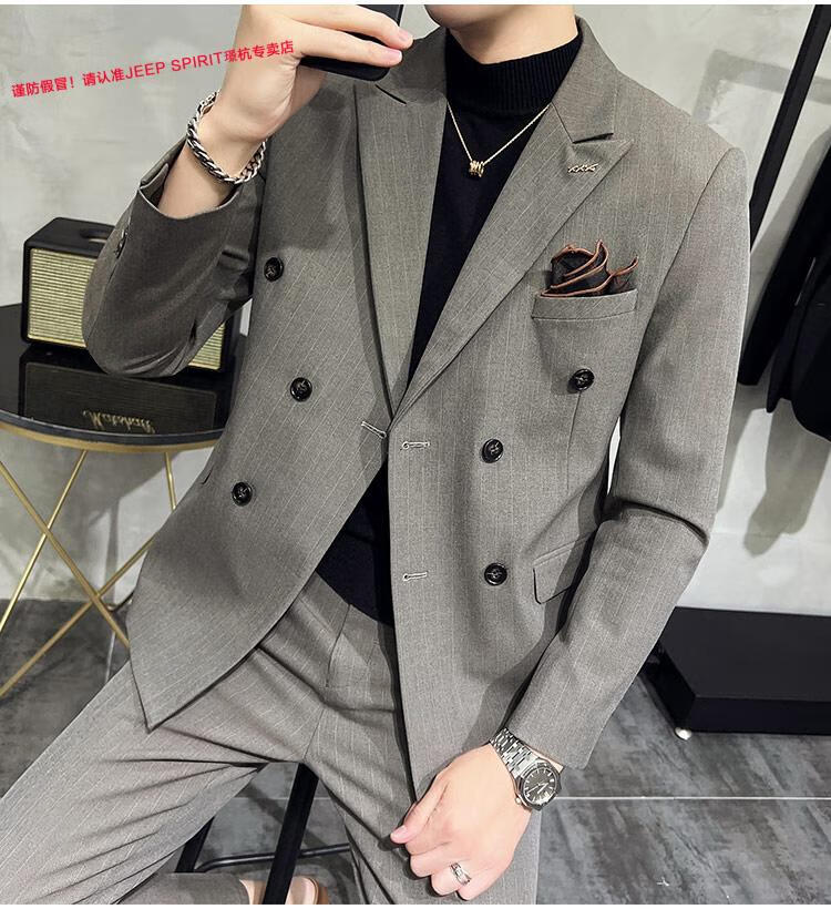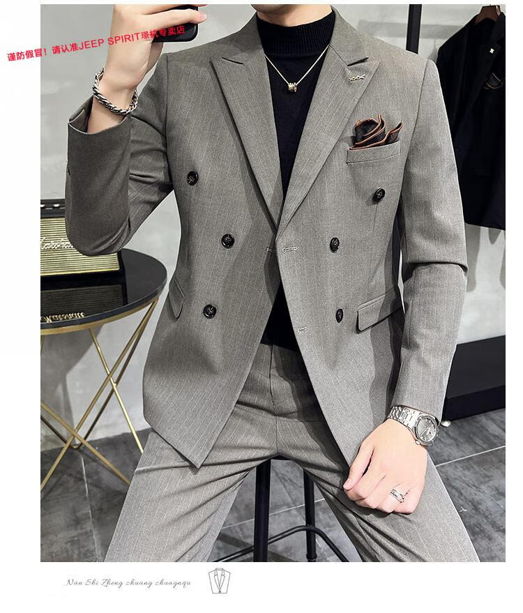 JEEP SPIRIT Jeep Double Breasted Suit Men's Suit Suit Autumn Men's Striped Casual Suit Men's Business Formal Wear Groom Dinner Black (Suit+Trousers+Vest) XL 52 125-140 Jin Jin is equal to 0.5 kg