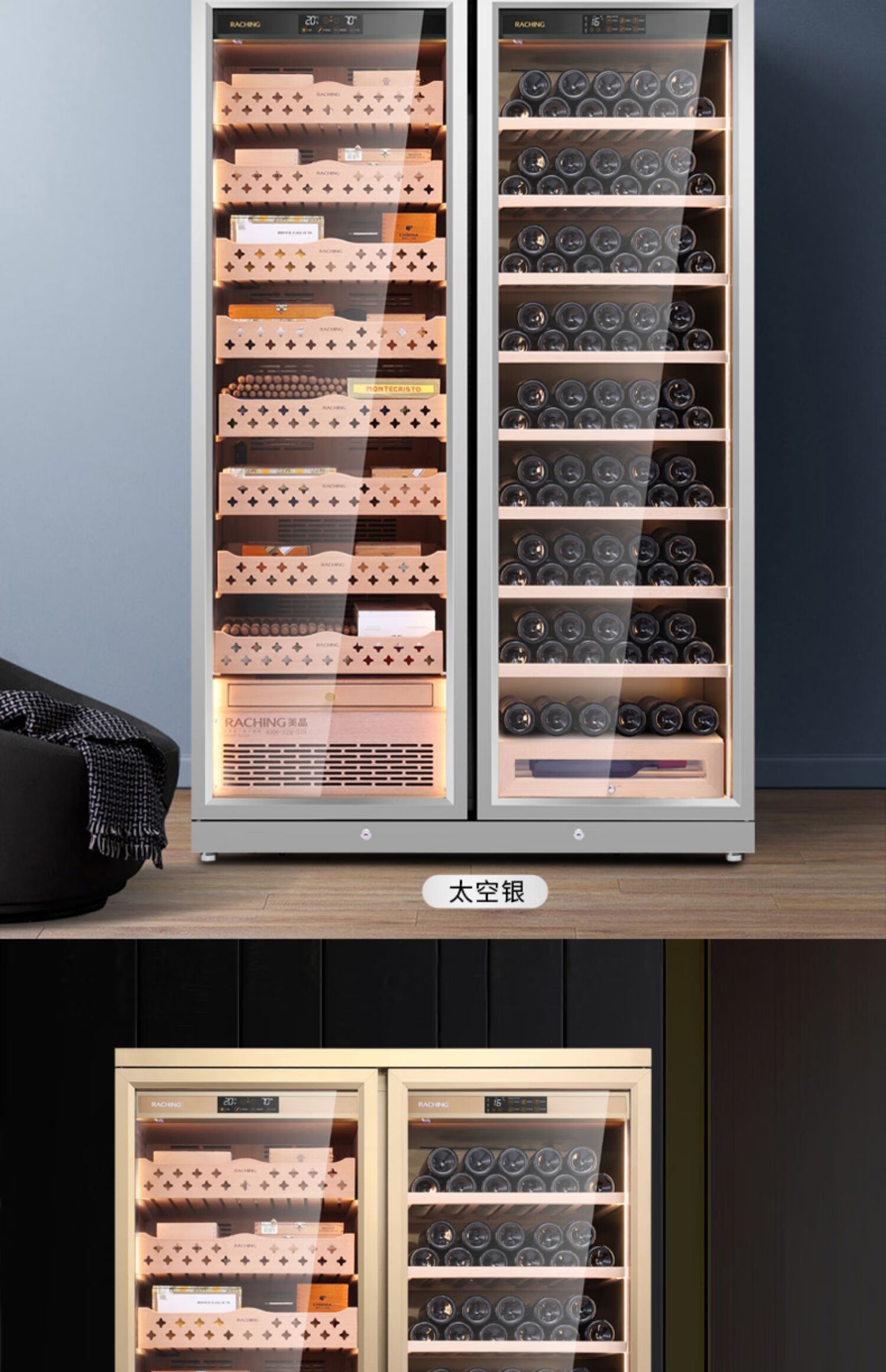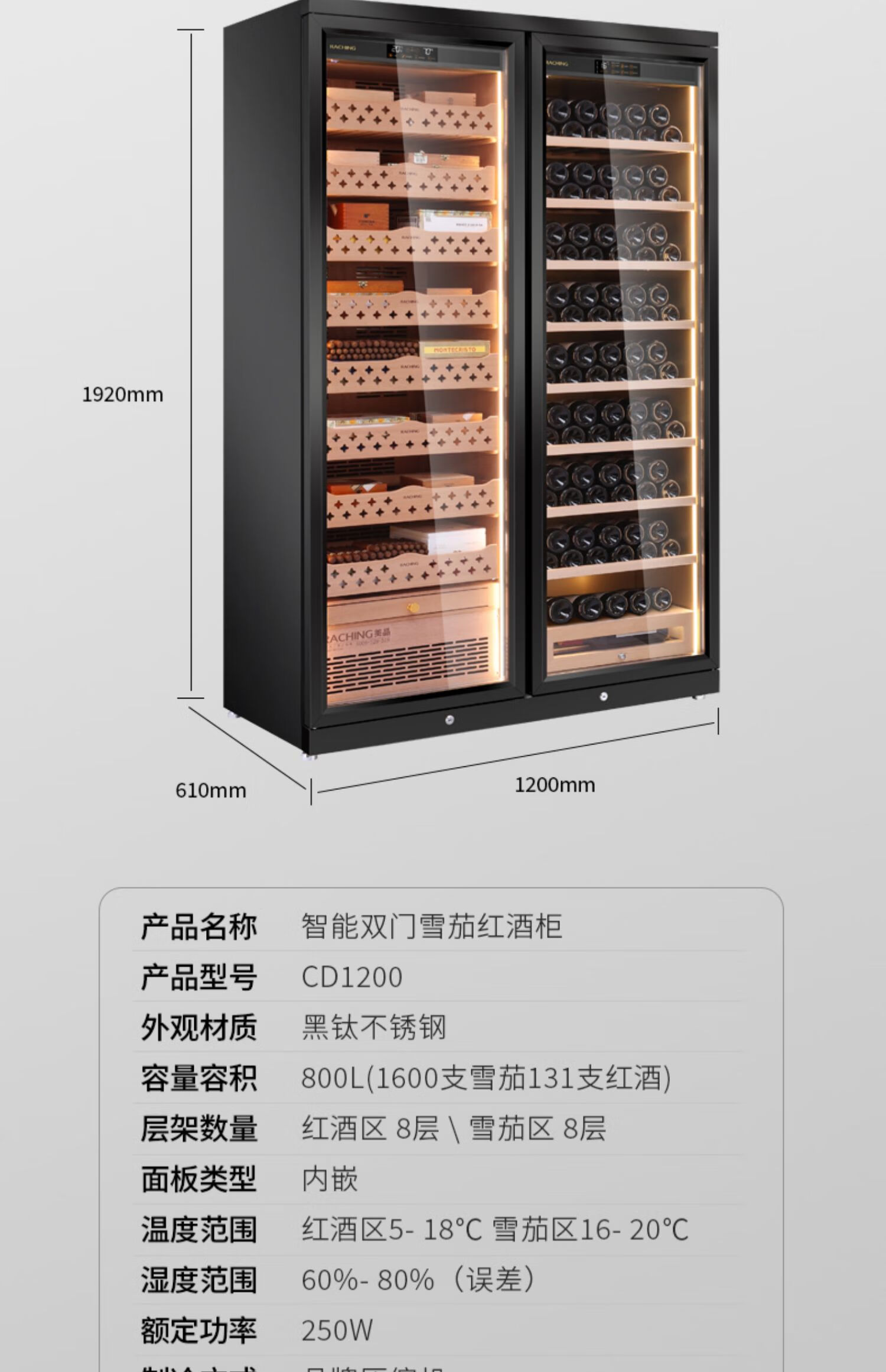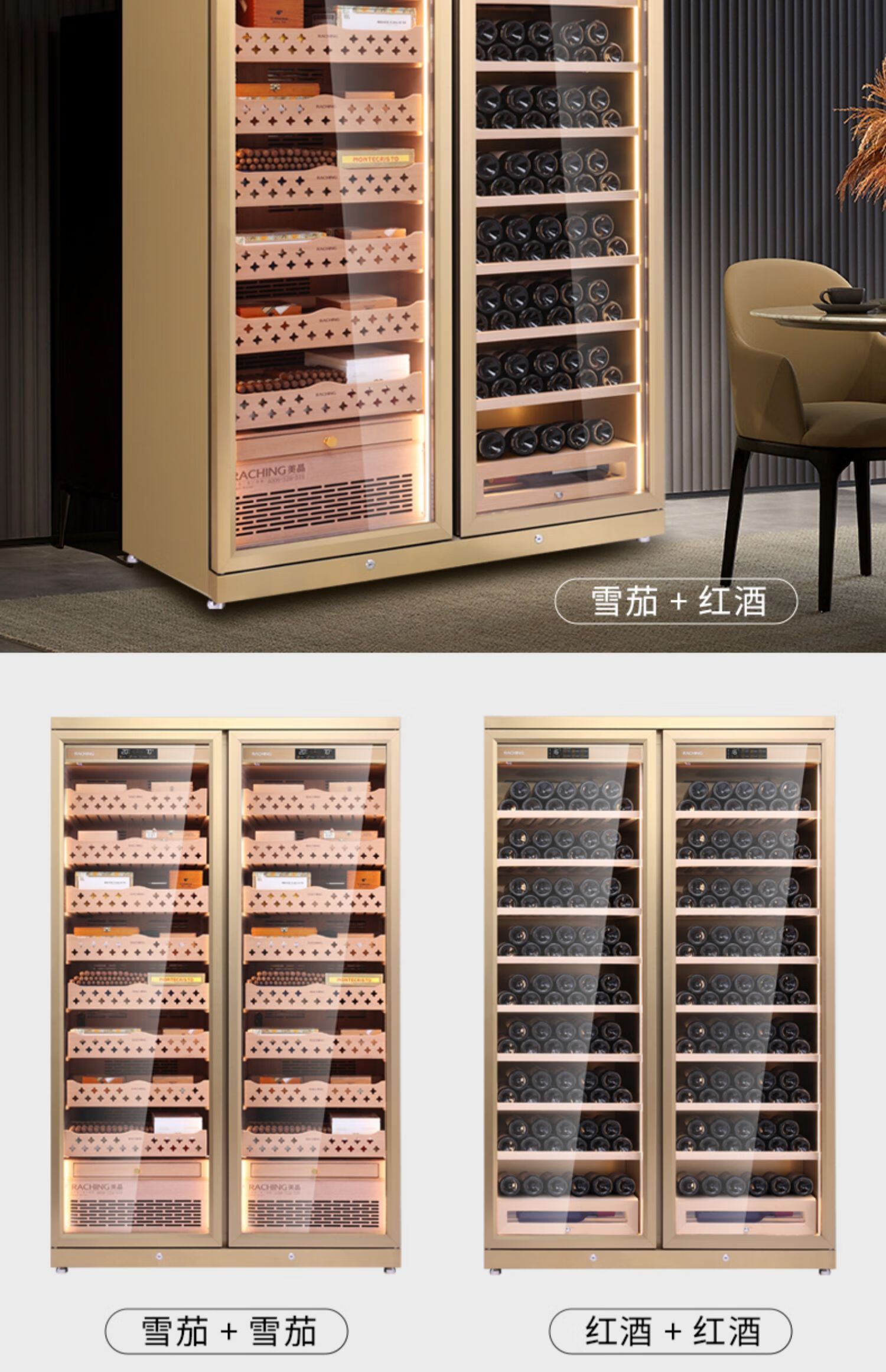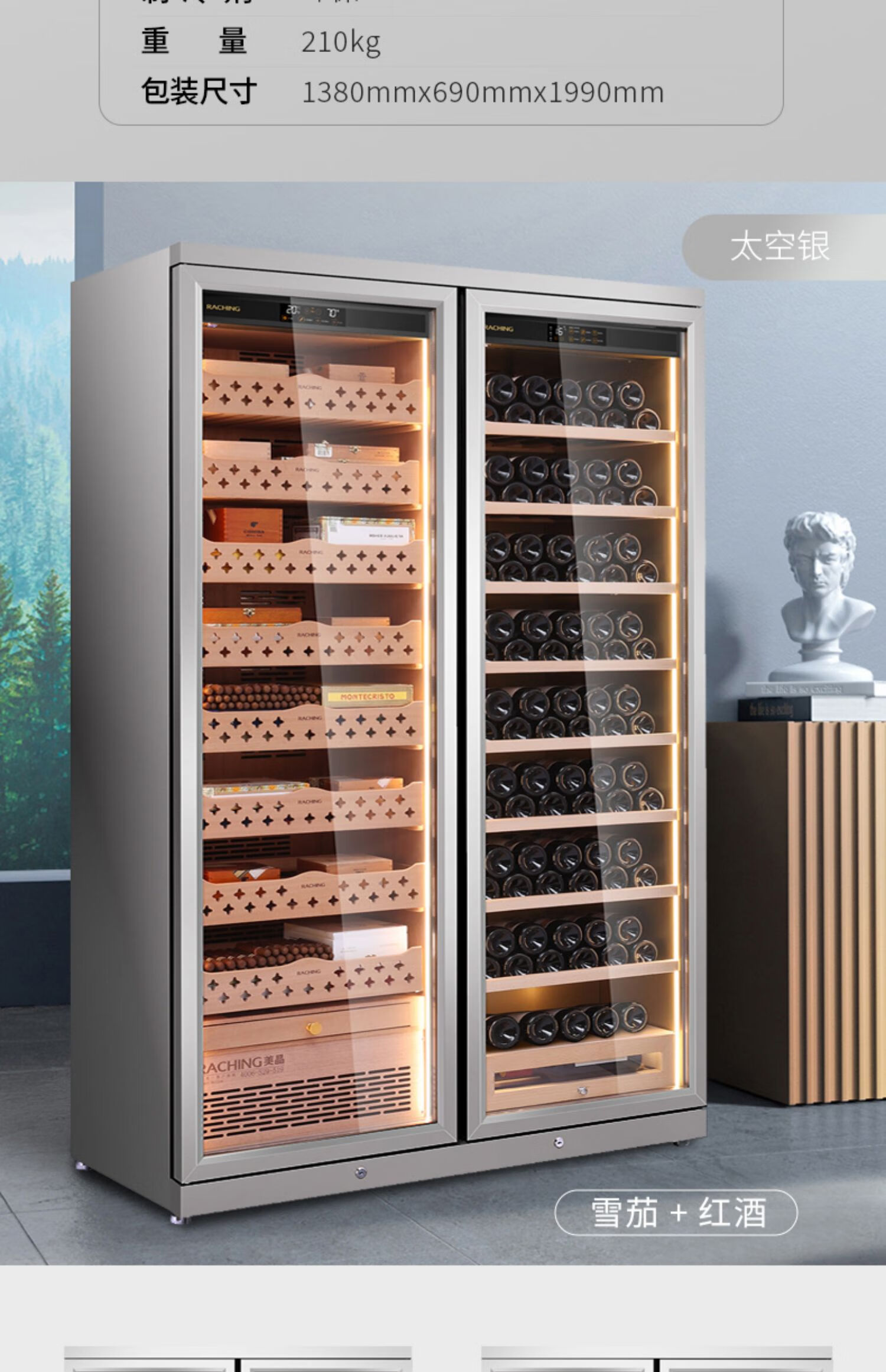 Meijing Raching/Meijing Red Wine + Cigar Combination Cabinet CD1200 Stainless Steel Old Cannon Double Door Constant Temperature and Humidity Compressor Humidity Cabinet Tuhaojin-Double Door Cigar Cabinet
