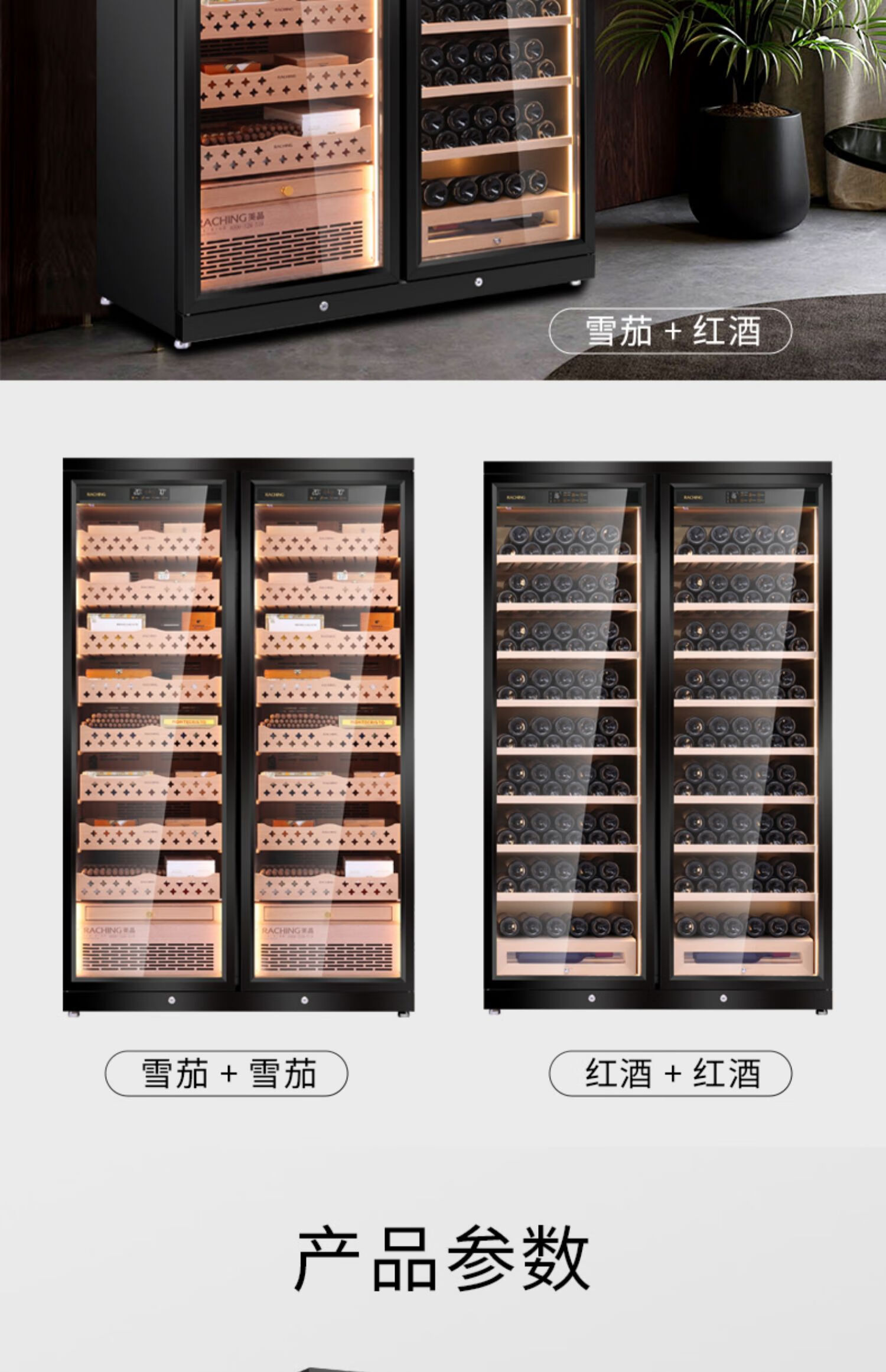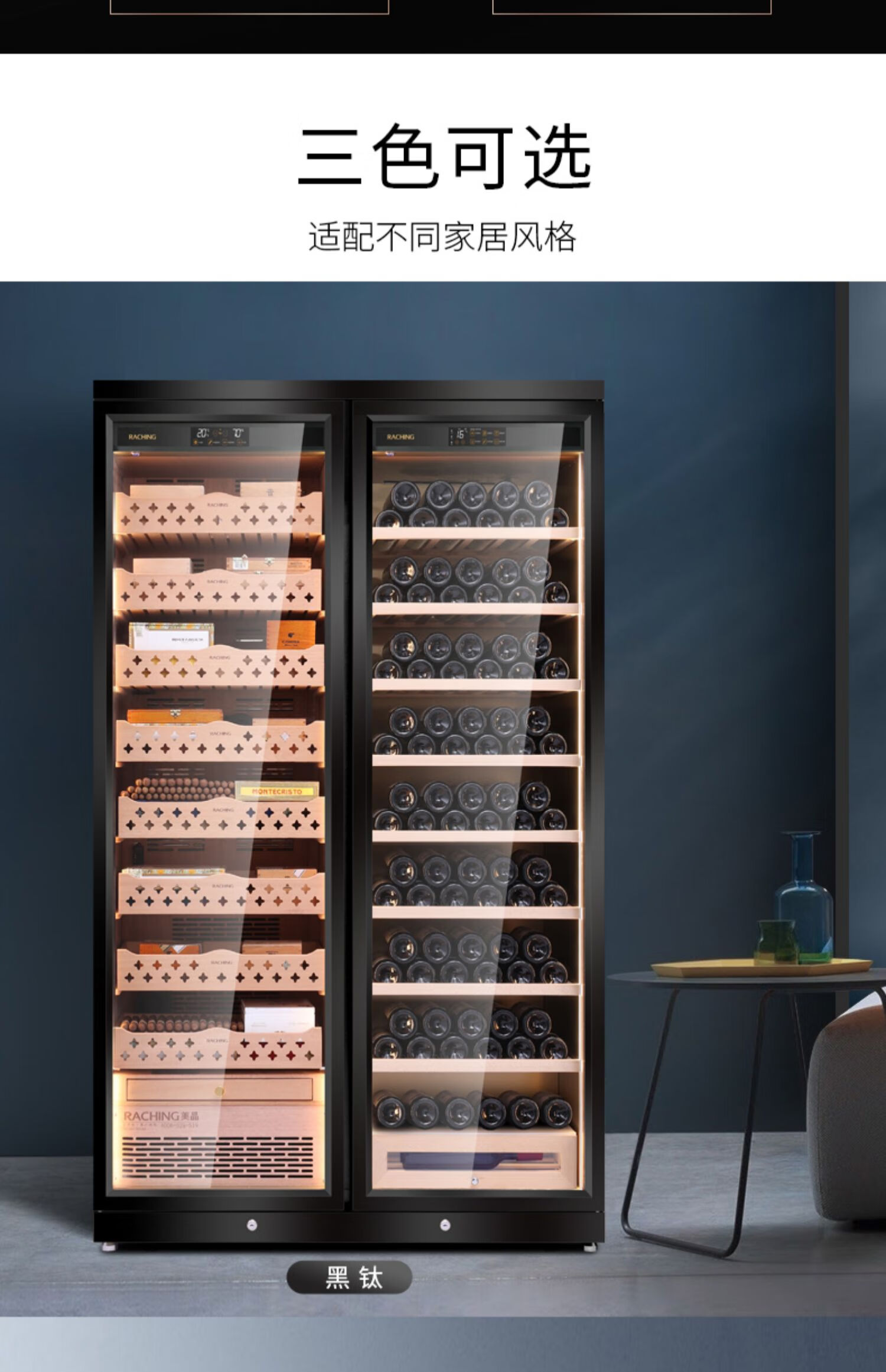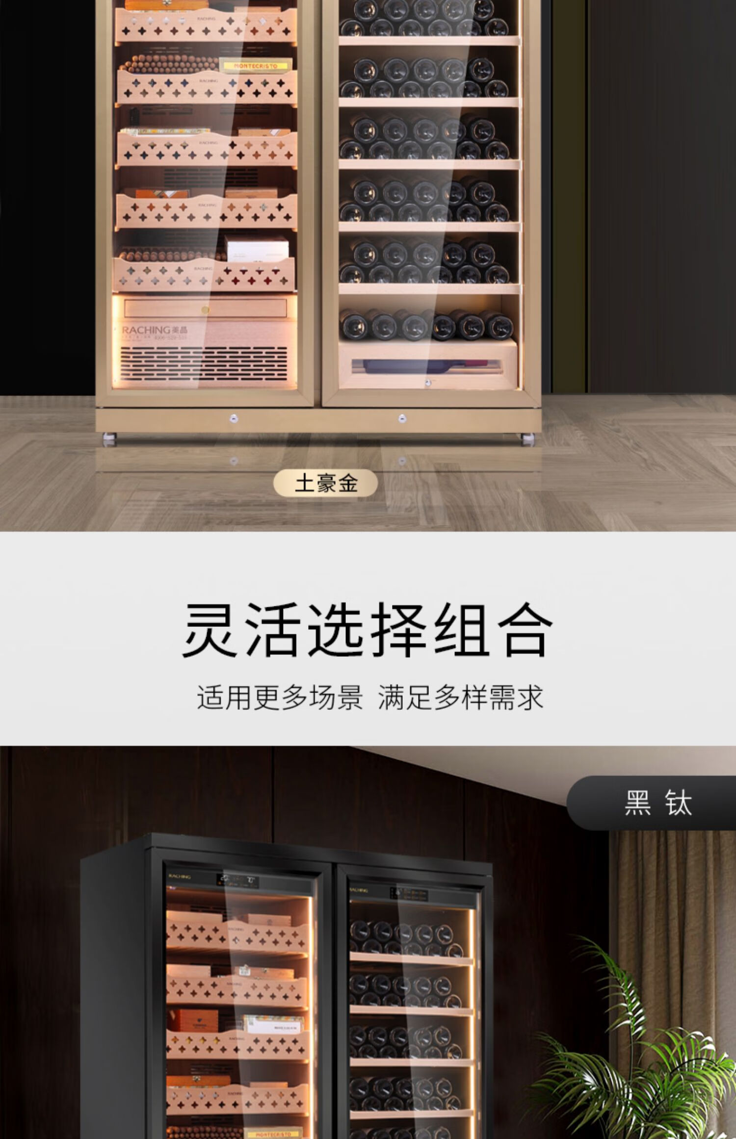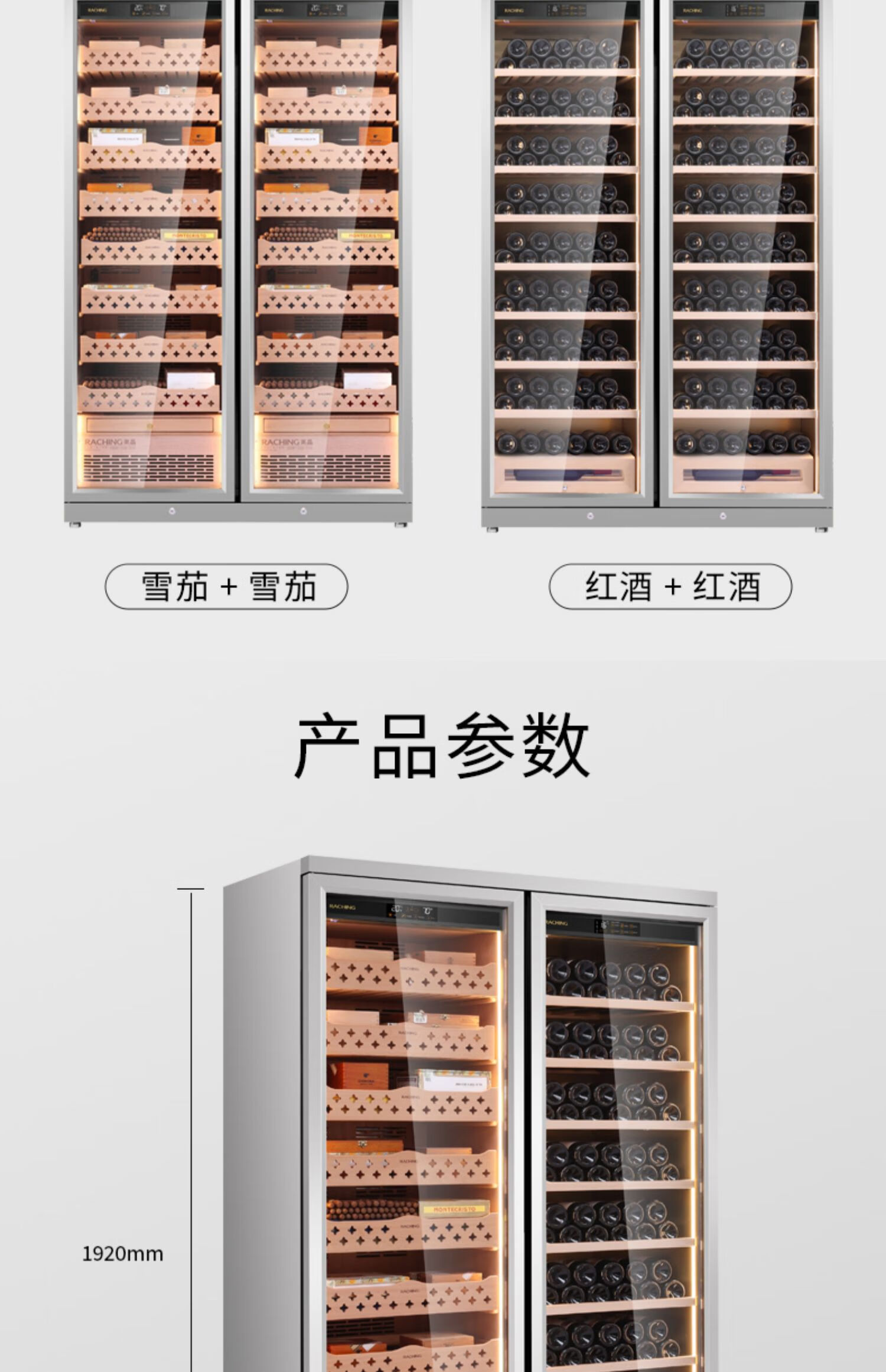 Meijing Raching/Meijing Red Wine + Cigar Combination Cabinet CD1200 Stainless Steel Old Cannon Double Door Constant Temperature and Humidity Compressor Humidity Cabinet Tuhaojin-Double Door Cigar Cabinet