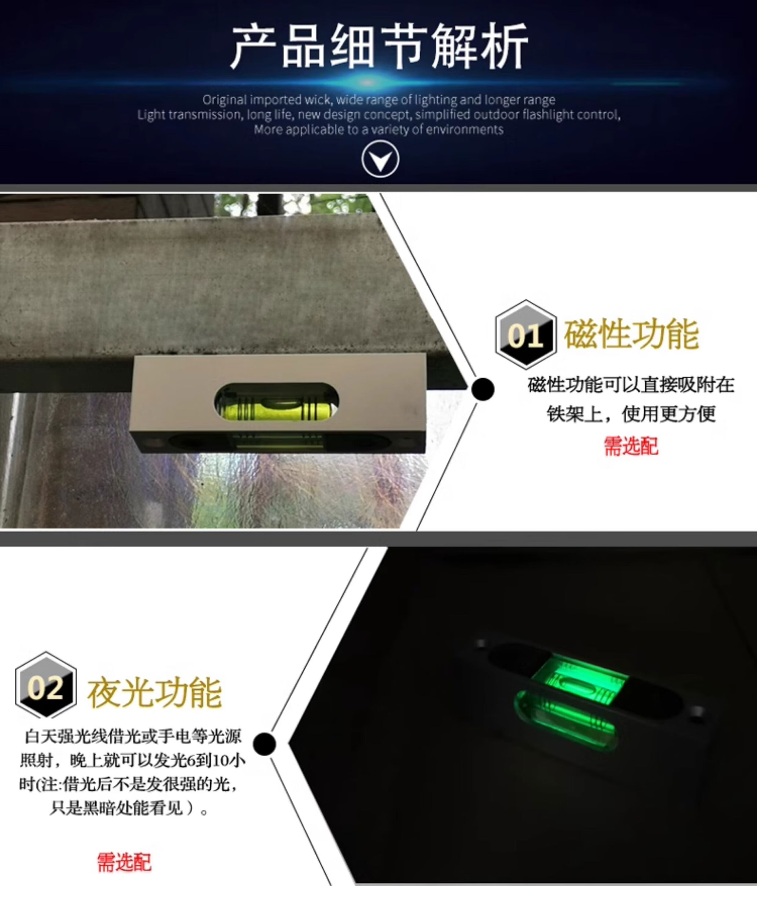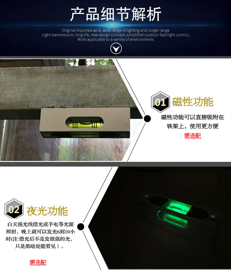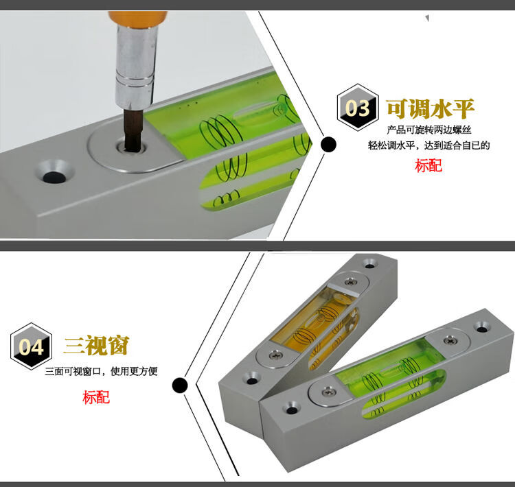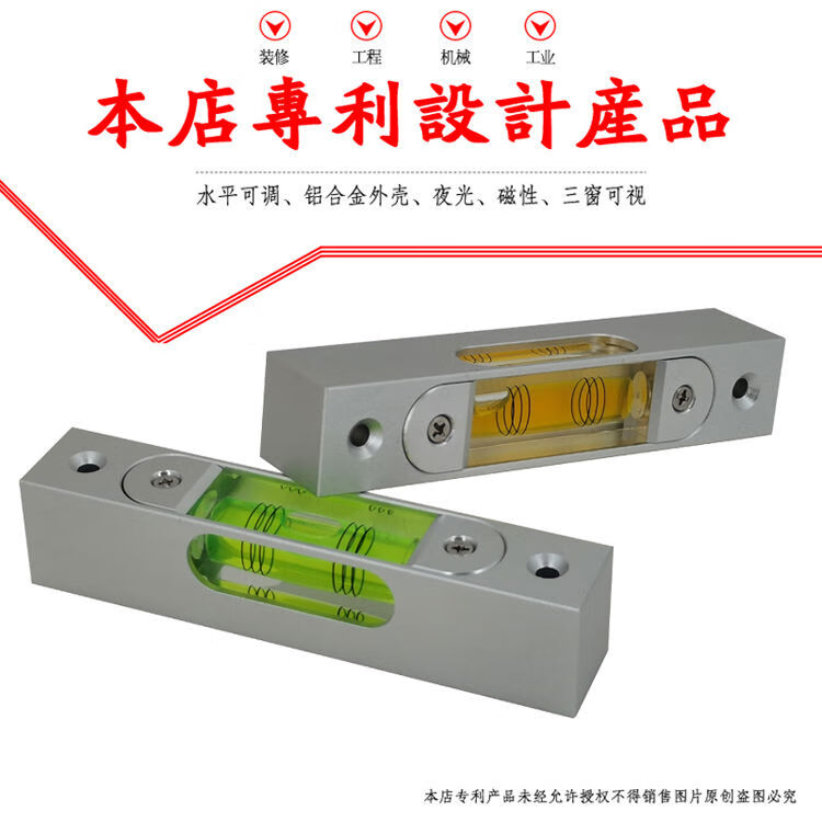 High-precision aluminum metal adjustable level bubble square strip type luminous magnetic 180MM multi-Specifications level 66 long silver shell green water magnetic luminous