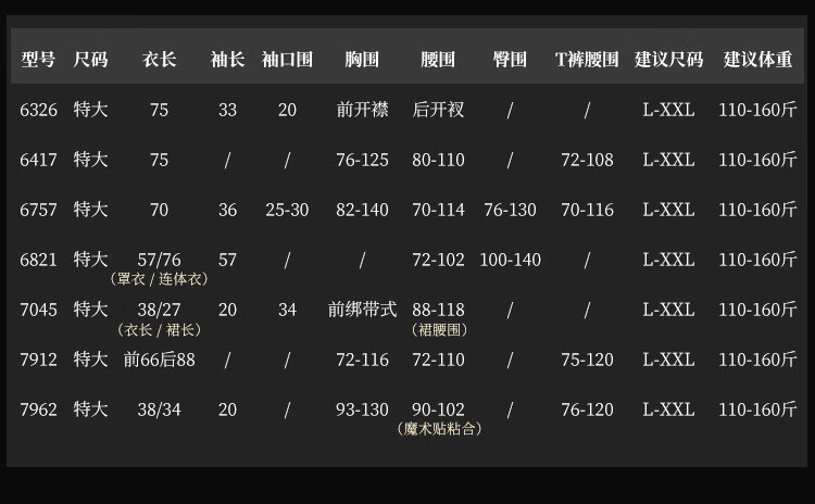 China (cm) 160-165/84-86 165-170 / 88-90 167-172 / 92-96 168-173 / 98-102 170-176 / 106-110