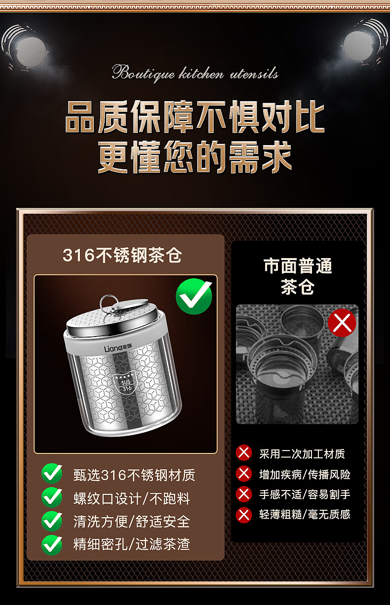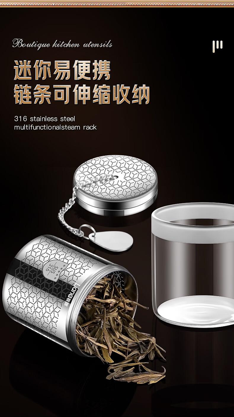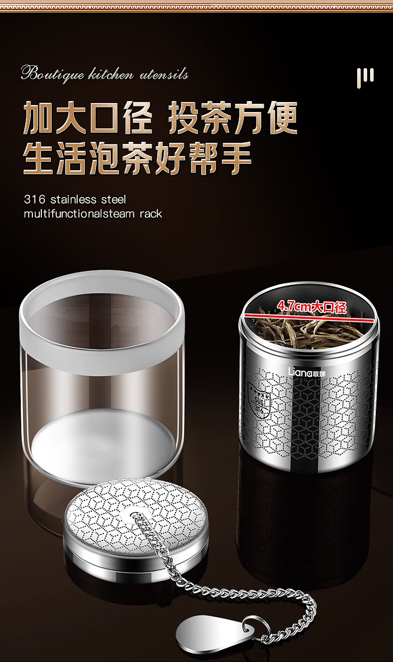 Lianna 316 stainless steel tea leakage small tea warehouse portable tea filter tea separation cup teapot tea filter five-star 316 steel tea leakage with portable piece
