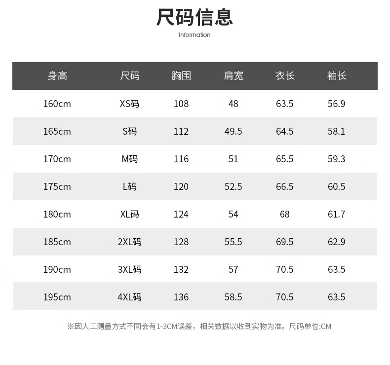 China (cm) 165 / 88-90 170 / 96-98 175 / 108-110 180 / 118-122 185 / 126-130