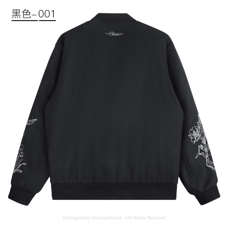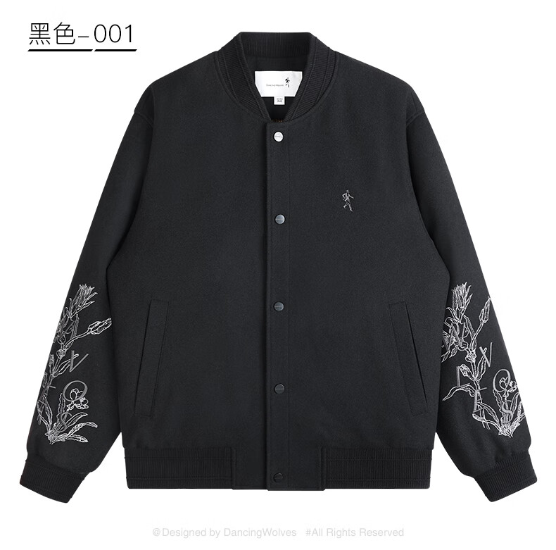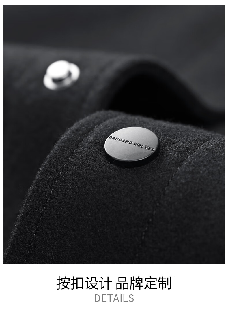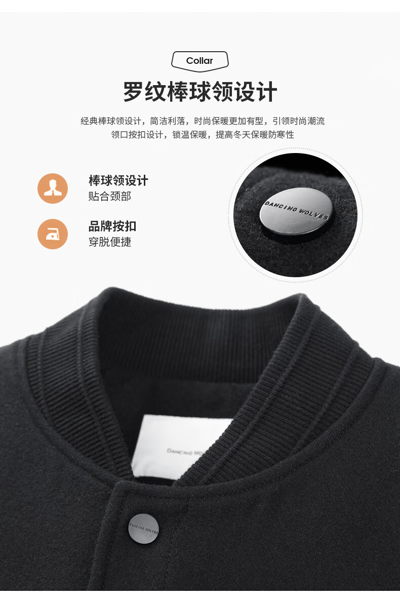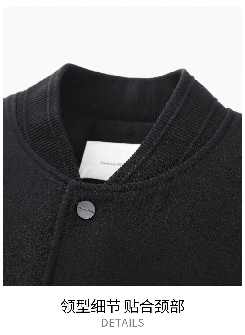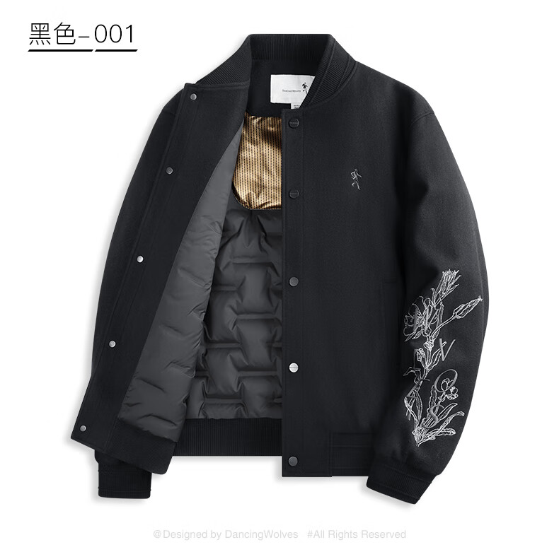Dances with Wolves 56.8% Sheep Wool Baseball Collar Woolen Jacket Men's 2025 Autumn and Winter New Down Warm Jacket 1004 Black 001 S (165)