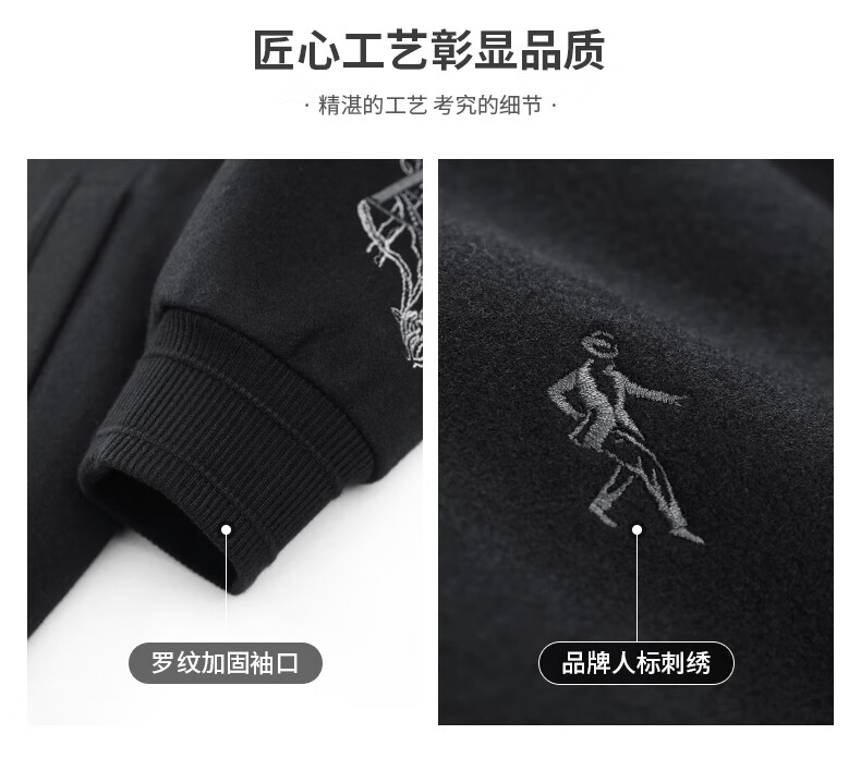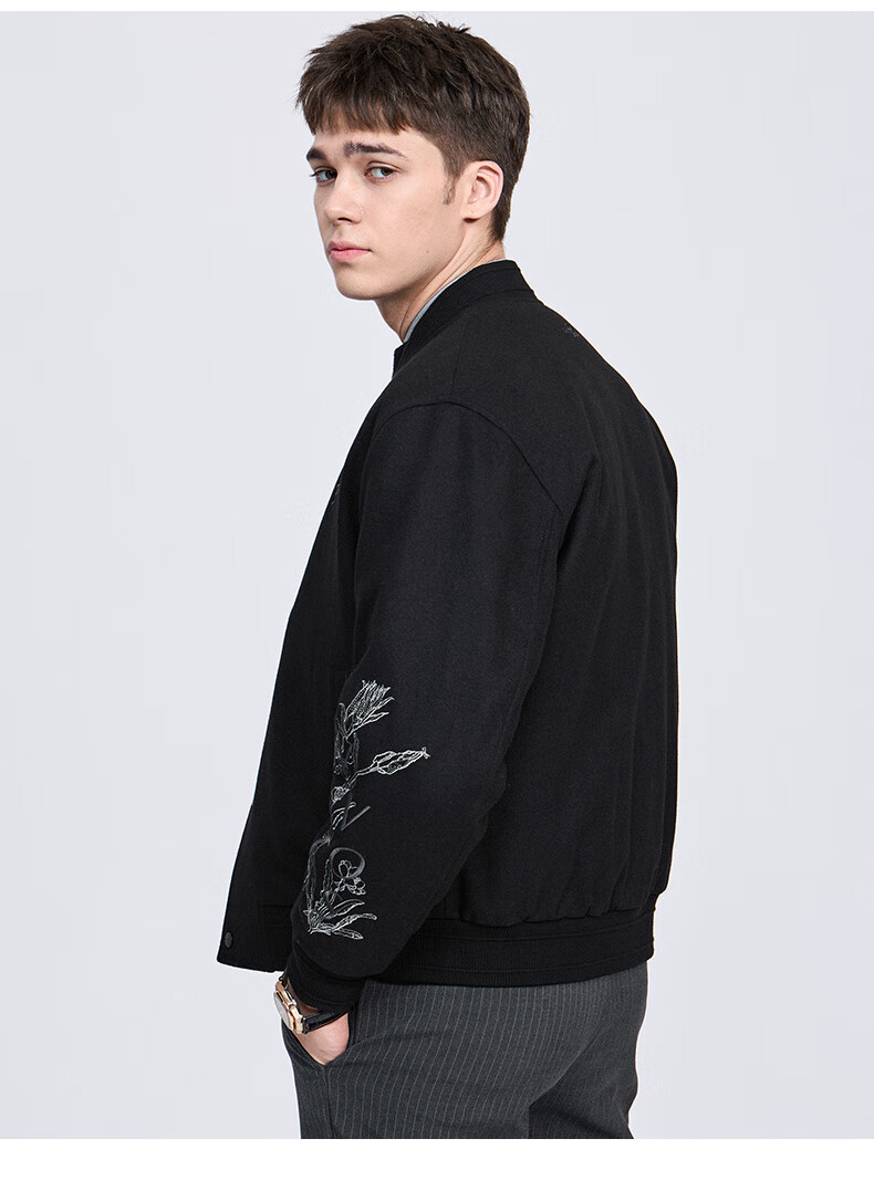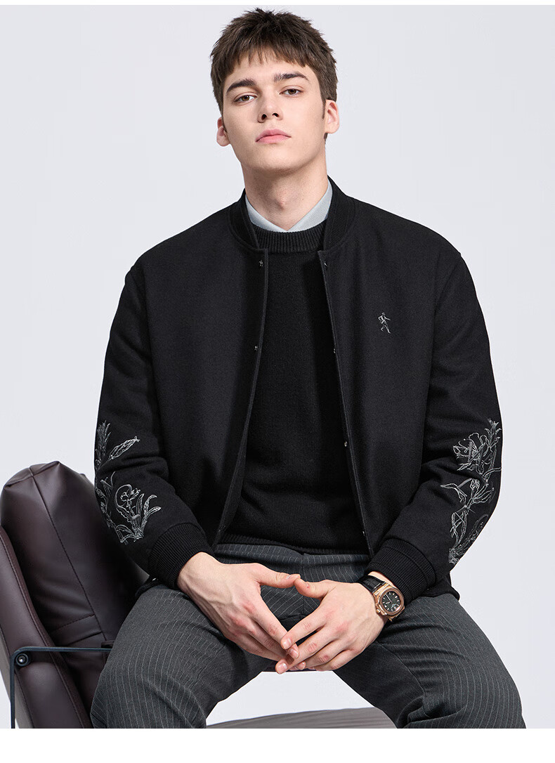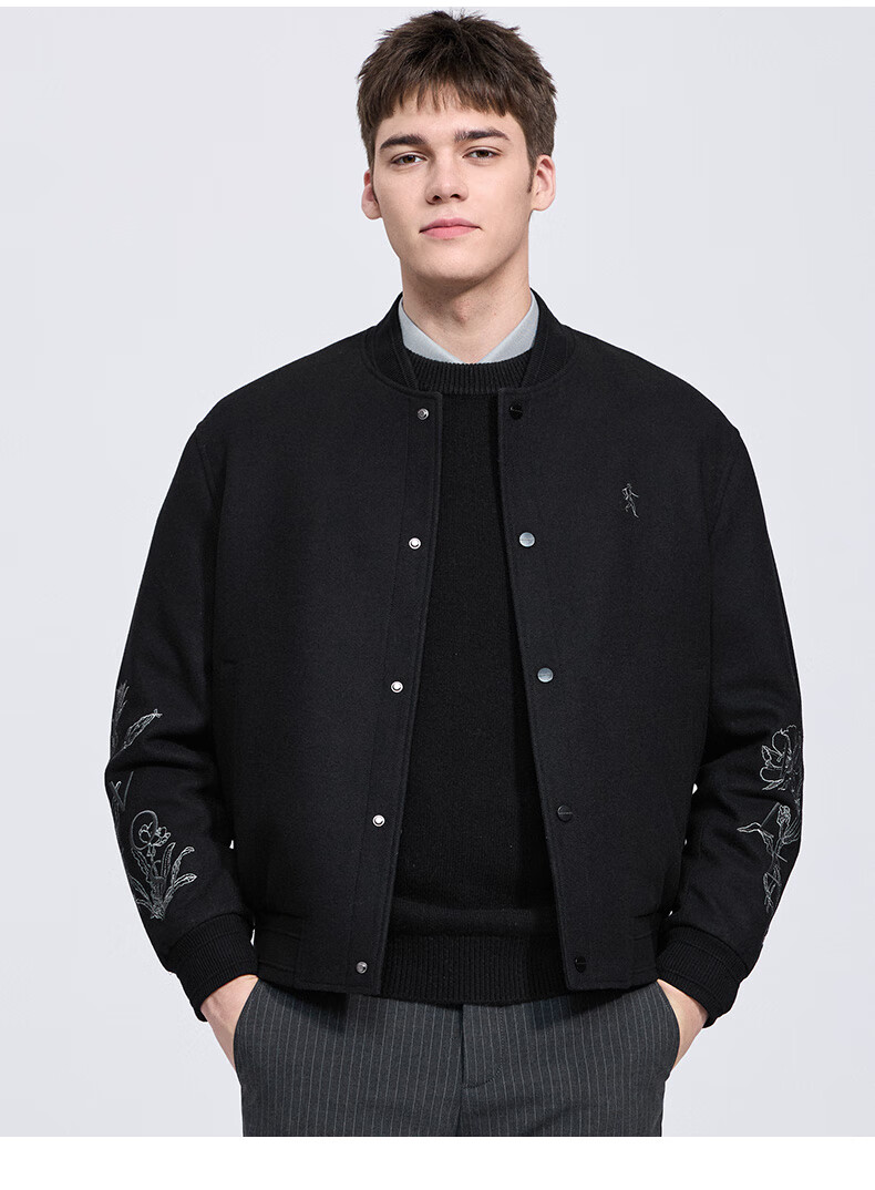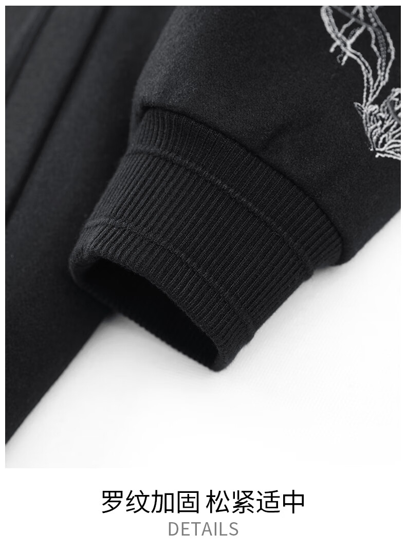 Dances with Wolves 56.8% Sheep Wool Baseball Collar Woolen Jacket Men's 2025 Autumn and Winter New Down Warm Jacket 1004 Black 001 S (165)