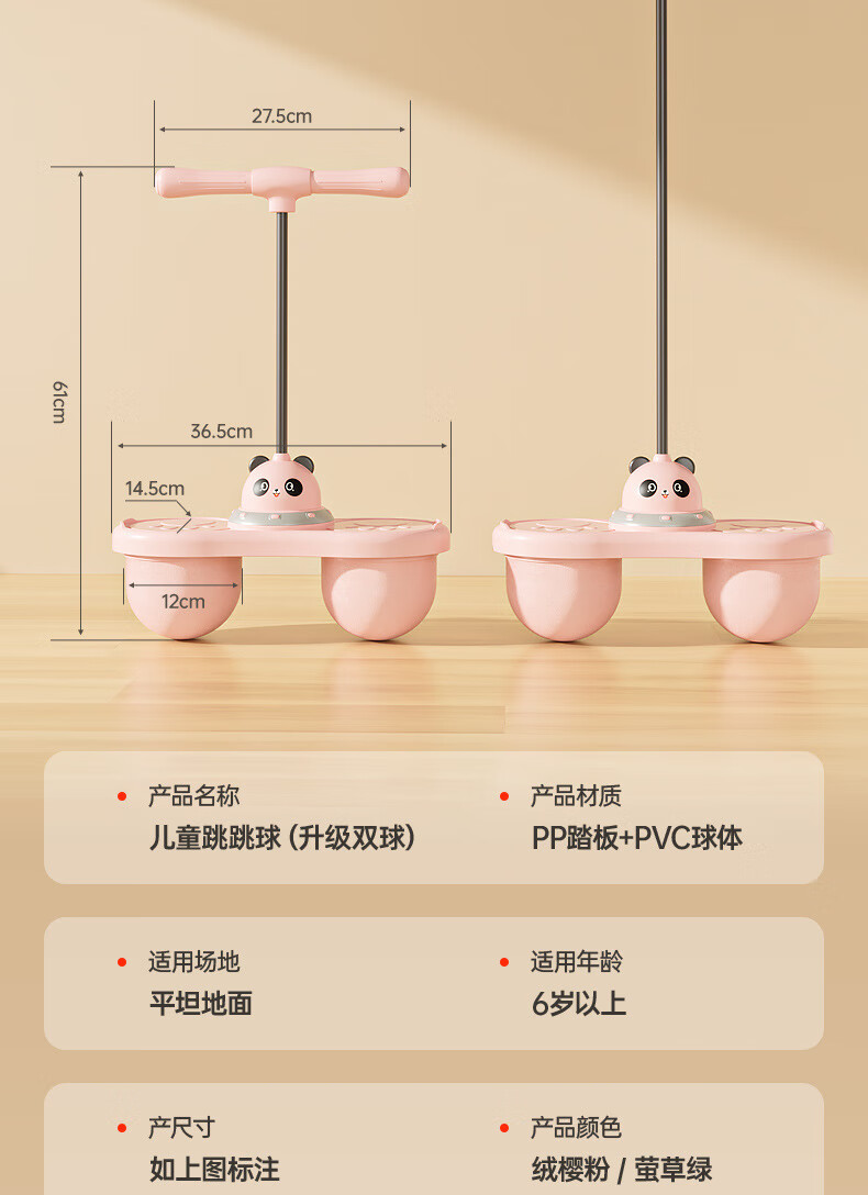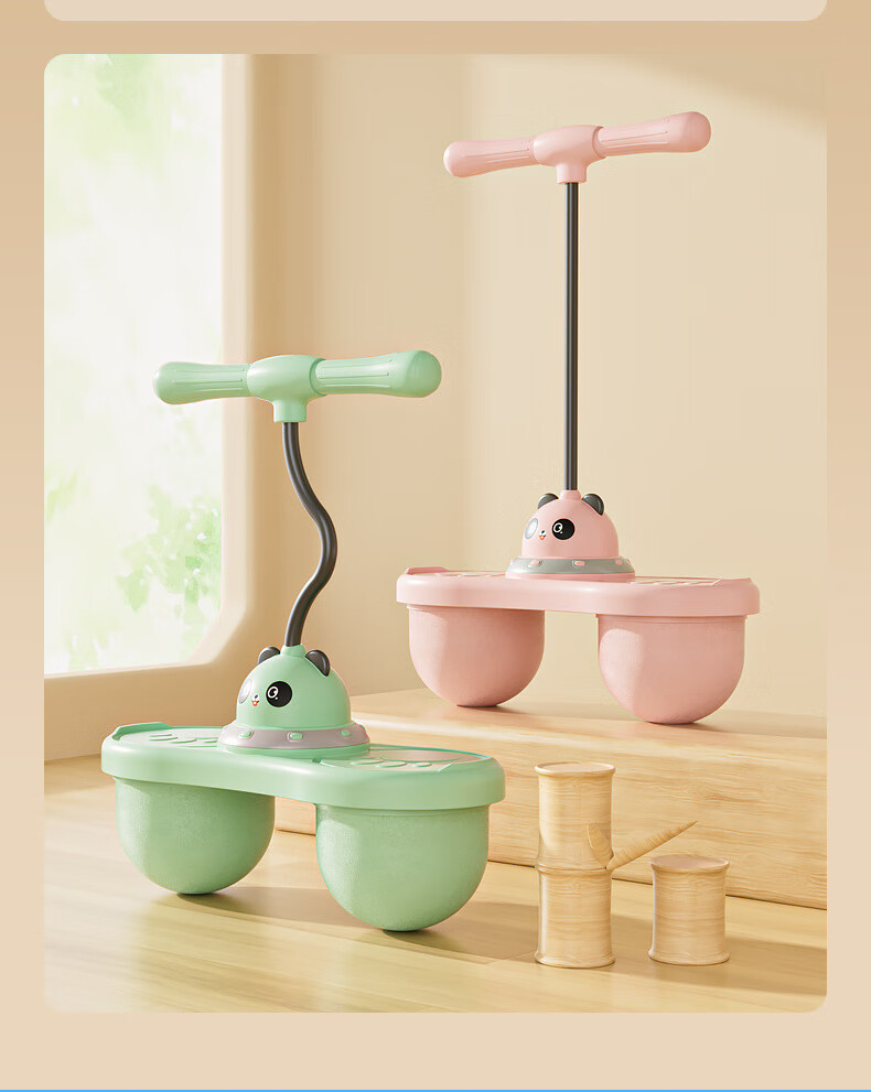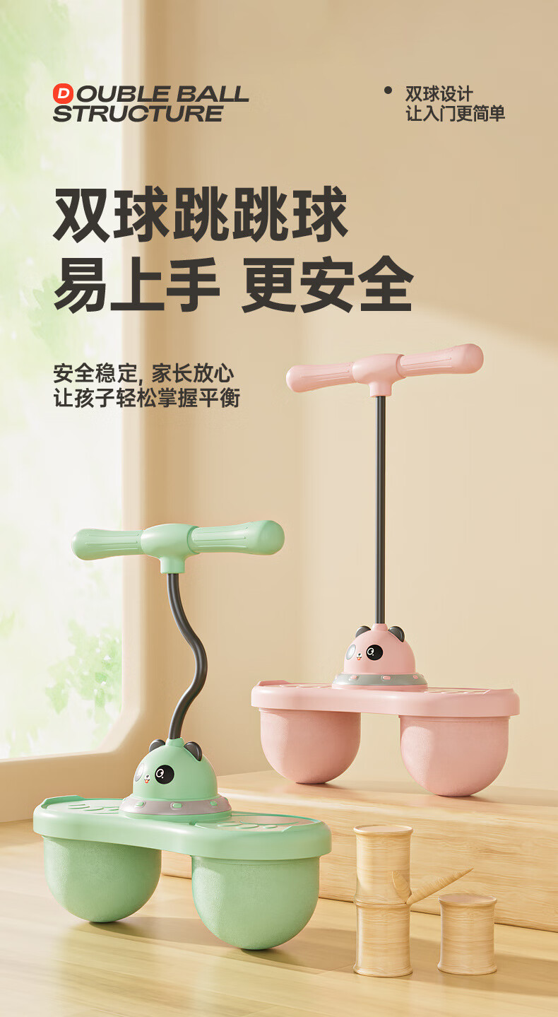 Zhiqixin children's jumping ball, children's and teenagers' sensory training, bouncing ball, frog jumping, balance jumping pole, fitness equipment, double ball, thickened, high load-bearing/high elasticity, primrose green + pump