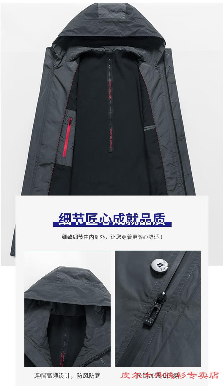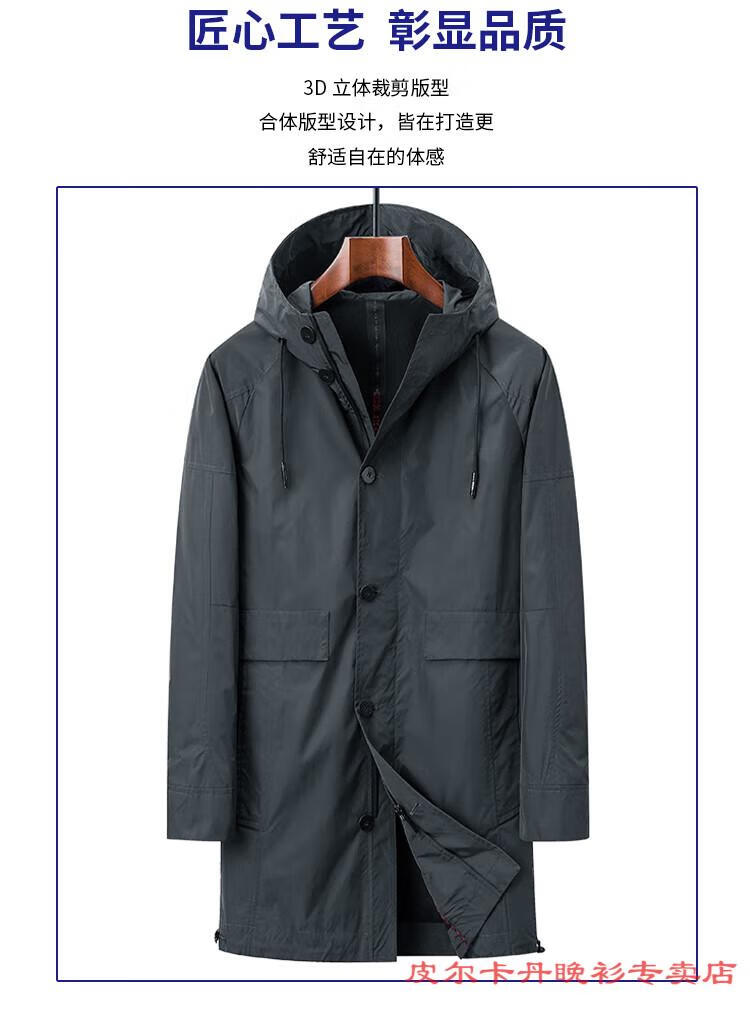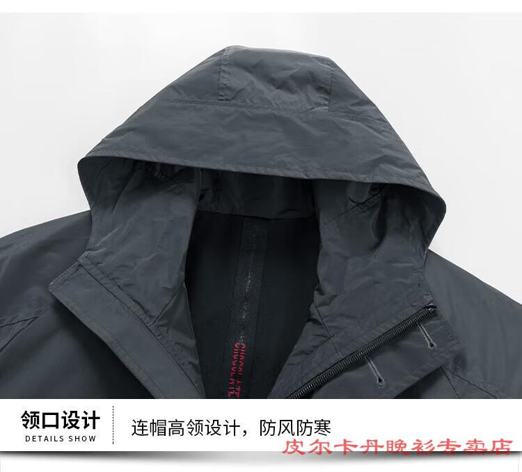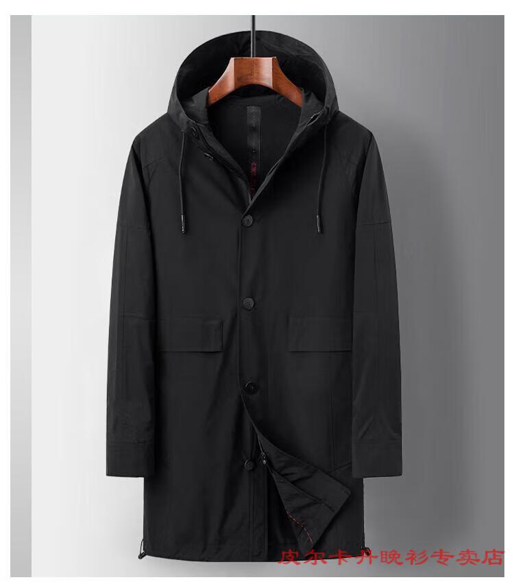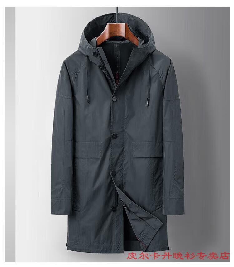 Pierre Cardin (pierre cardin) hooded windbreaker men's mid-length high-end brand coat light luxury men's 2026 spring and autumn coat cloak high-end gray M 170 recommended 100-120Jin Jin equals 0.5 kg