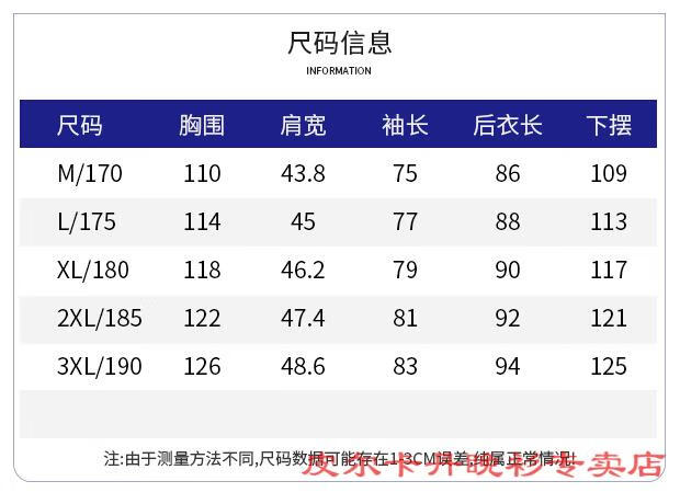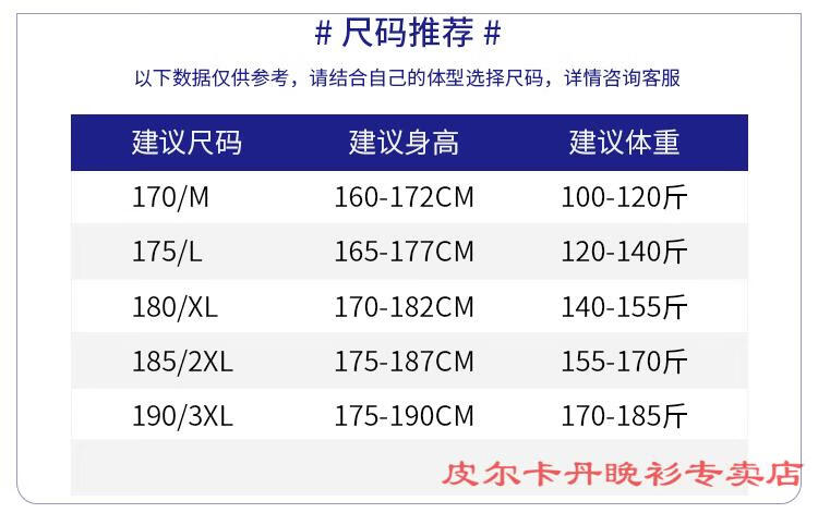 China (cm) 165 / 88-90 170 / 96-98 175 / 108-110 180 / 118-122 185 / 126-130