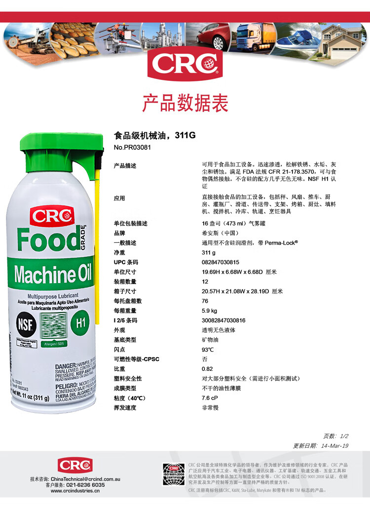 CRC03081 Food Grade Machine Oil Food Grade Machine Oil US original imported PR CRC PR03080 single bottle price
