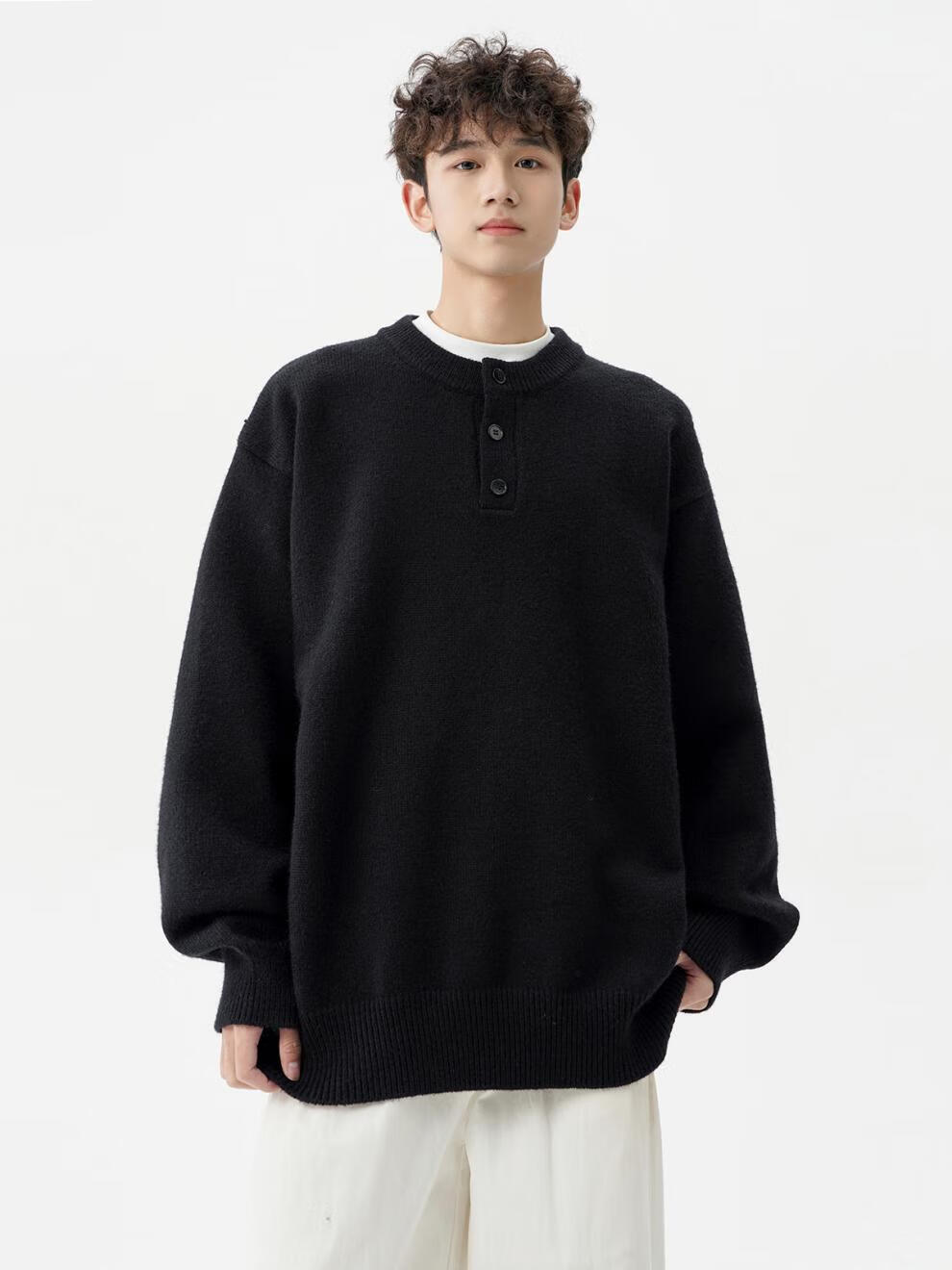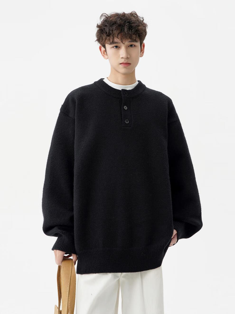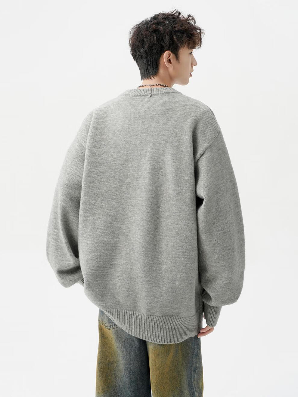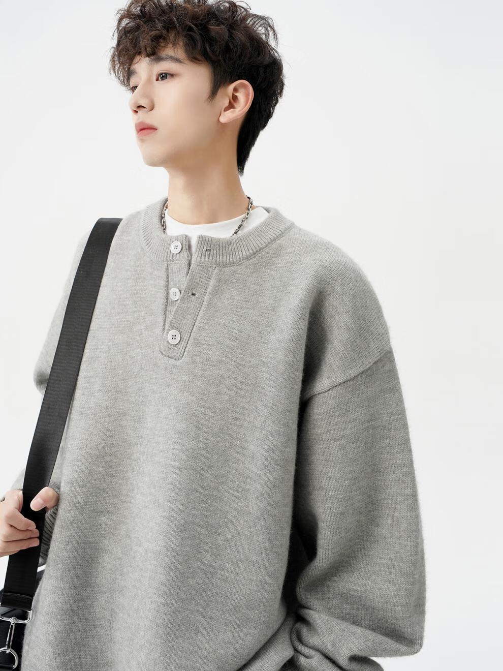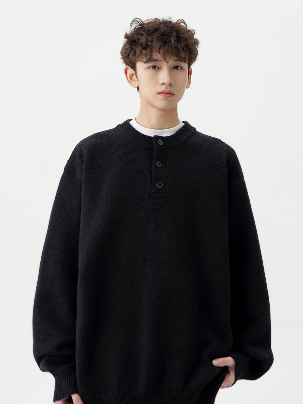 Playboy (PLAYBOY) American solid color Henry collar sweater men's autumn and winter new trendy brand-style sweater casual warm couple jacket light gray XL