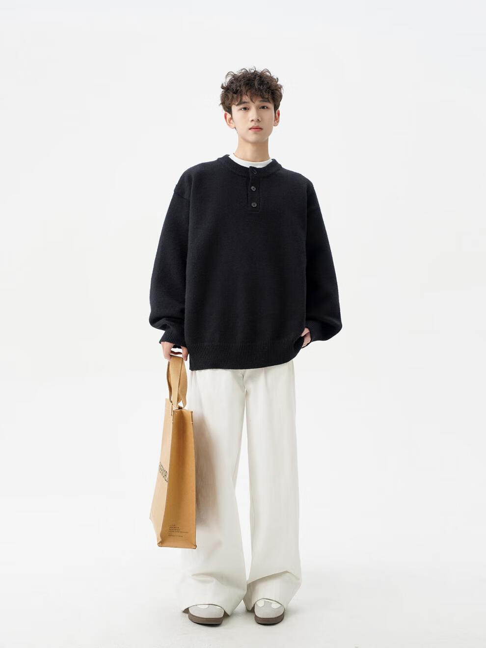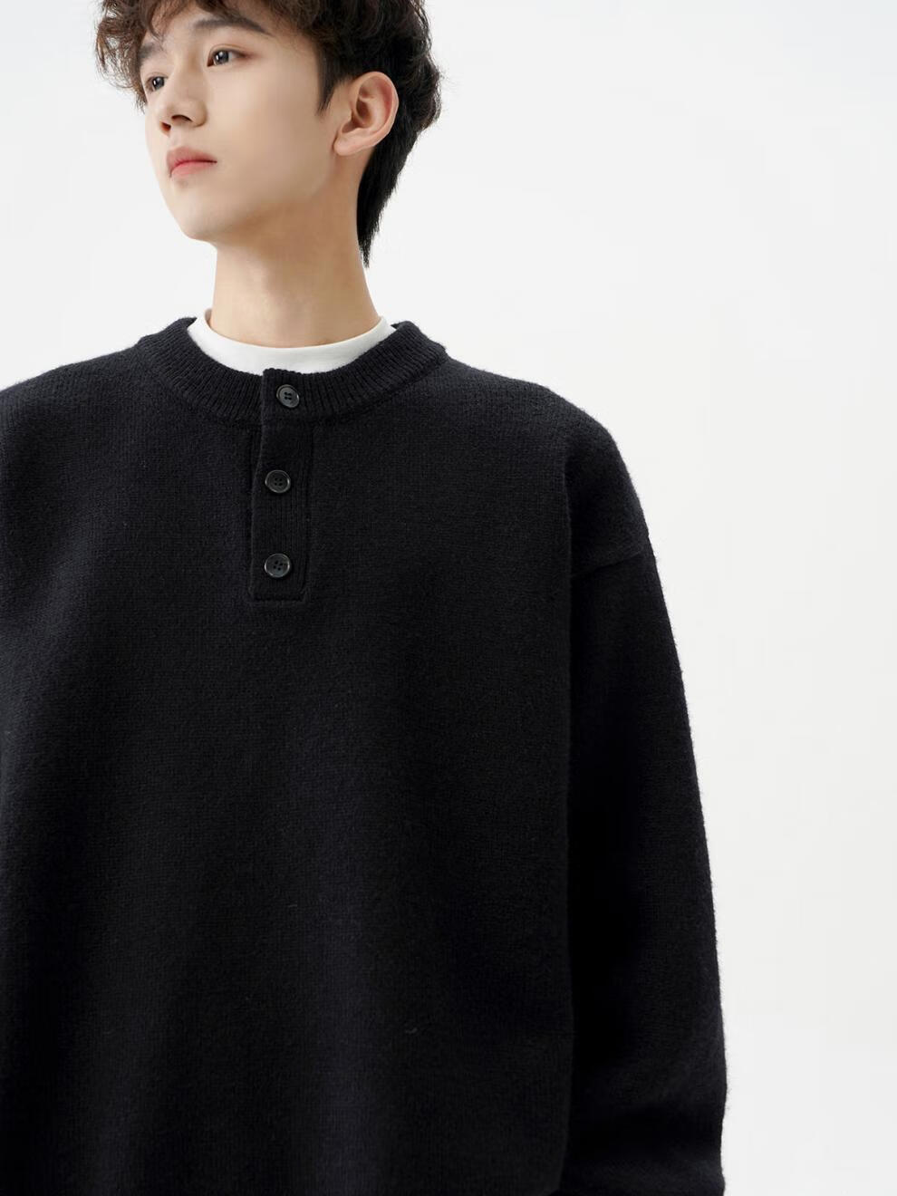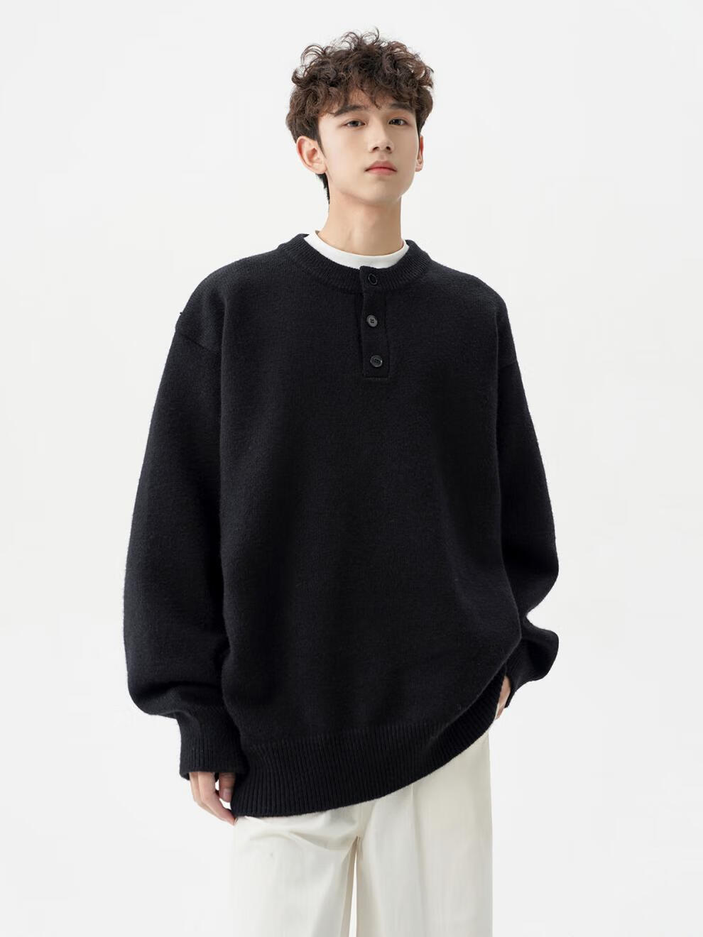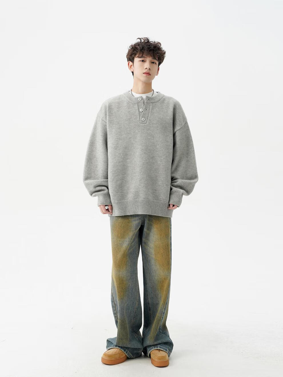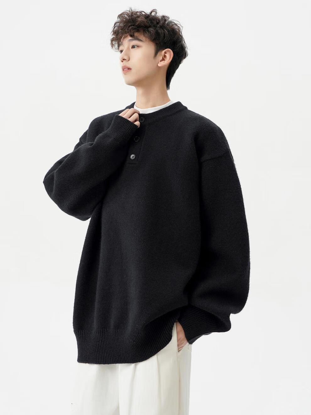 Playboy (PLAYBOY) American solid color Henry collar sweater men's autumn and winter new trendy brand-style sweater casual warm couple jacket light gray XL