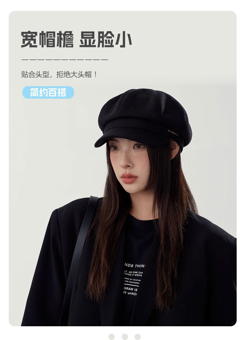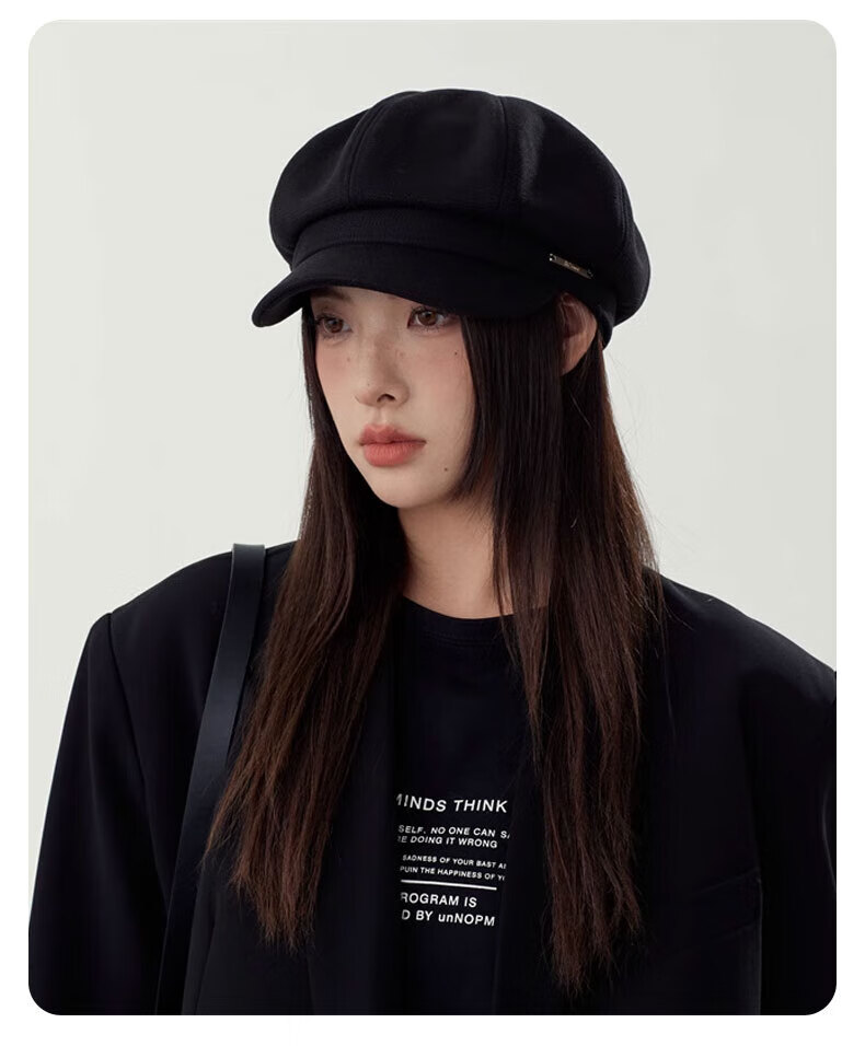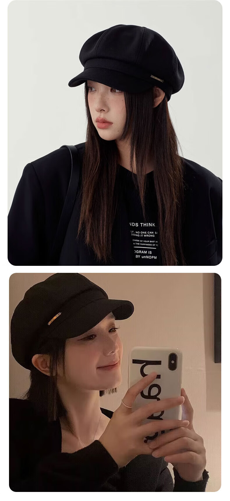 Tanbeiman beret women's spring and summer octagonal hat with large head circumference, new peaked cap, art painter hat, small face, fashionable and western style Octagonal beret, black, adjustable, one-size-fits-all, small face (head circumference 54-59cm)