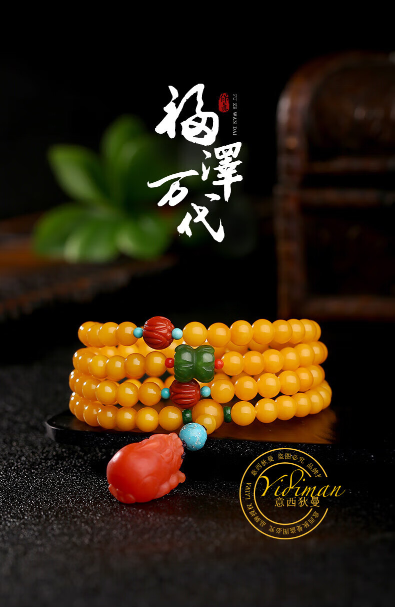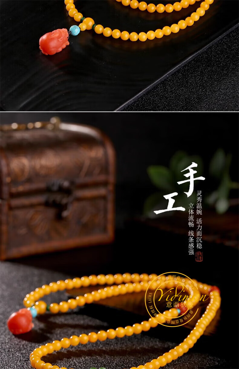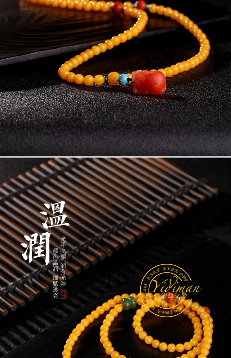 Italian beeswax bracelet for men and women, high-end multi-ring chicken fat yellow amber jade bracelet, Pixiu pendant necklace, cultural toy jewelry, 6mm, 108 pieces (one item, one certificate)