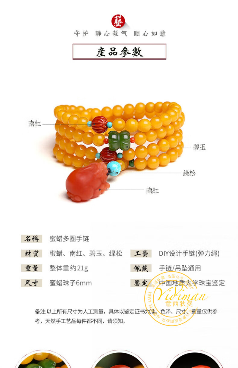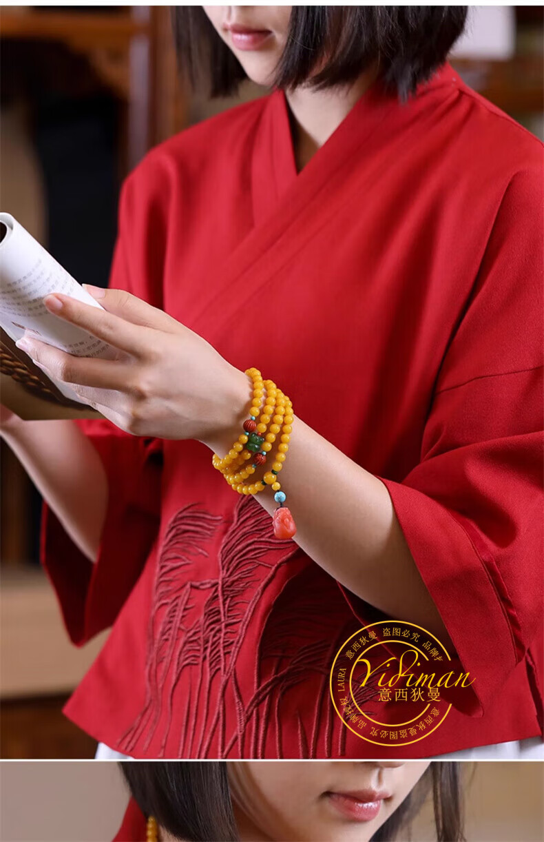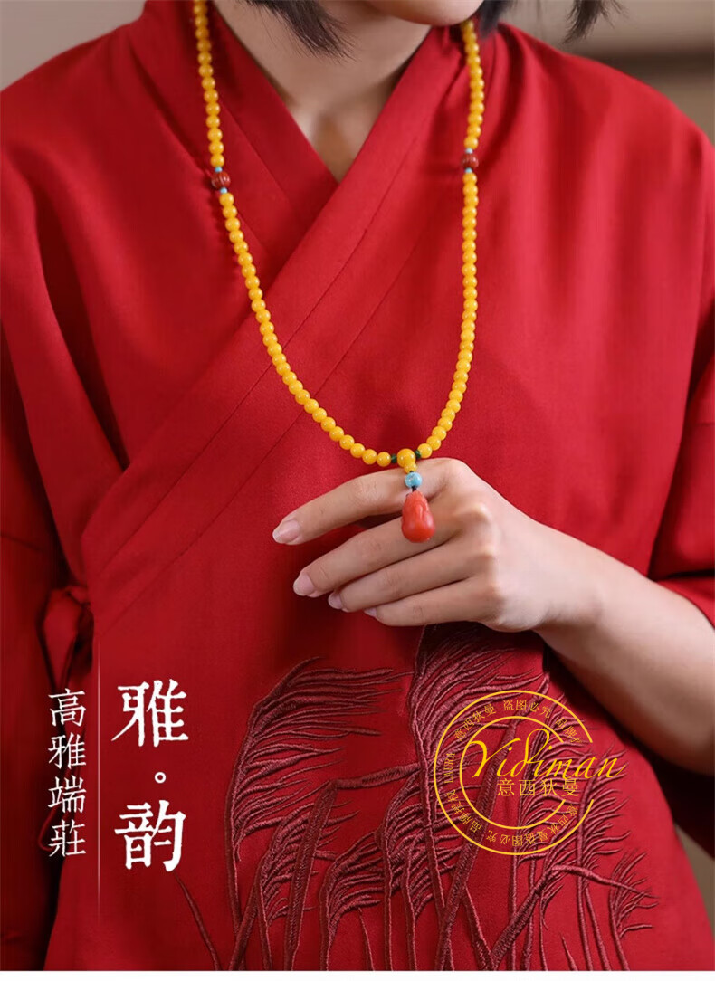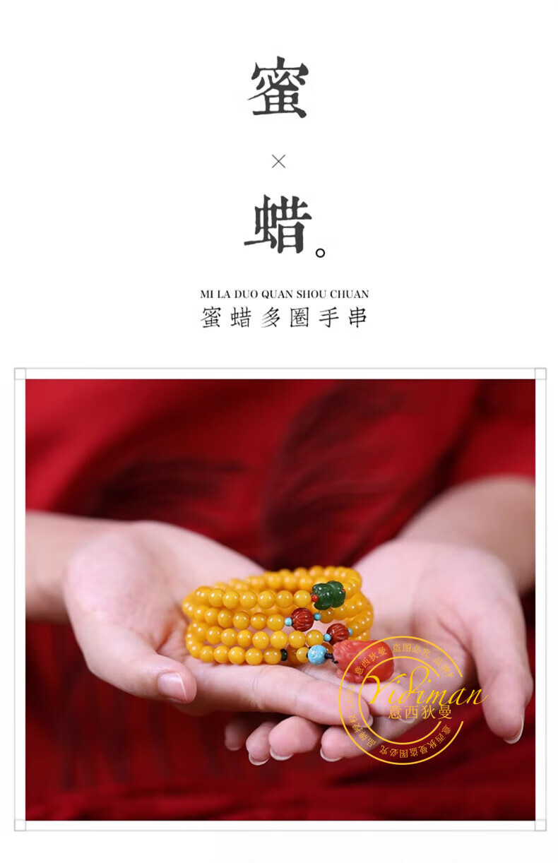 Italian beeswax bracelet for men and women, high-end multi-ring chicken fat yellow amber jade bracelet, Pixiu pendant necklace, cultural toy jewelry, 6mm, 108 pieces (one item, one certificate)