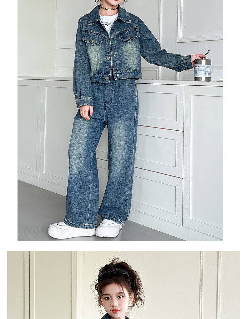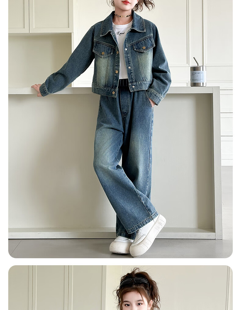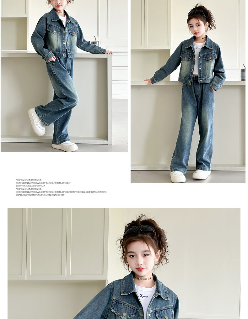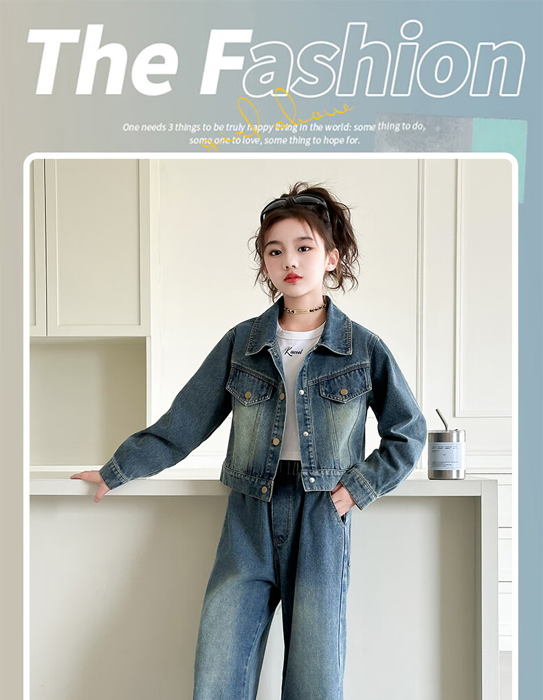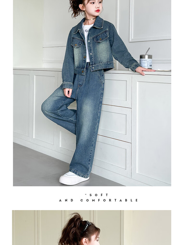WOATI International Imported Big Brand Children's Clothing Girls Autumn Denim Suit 2025 New Children's Fashionable Spring and Autumn Medium and Large Blue Jacket + Pants 130 cm