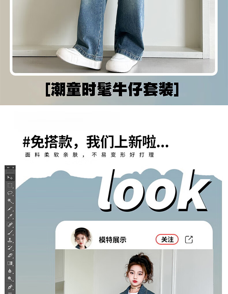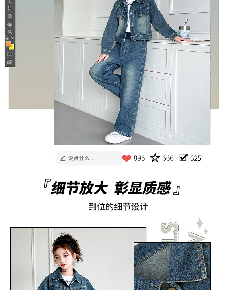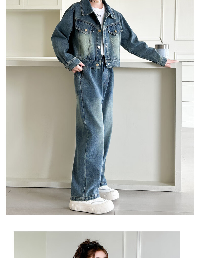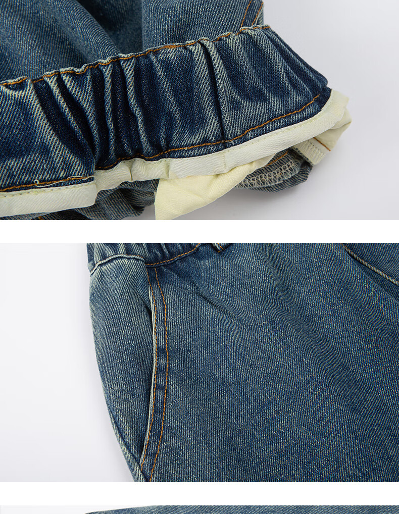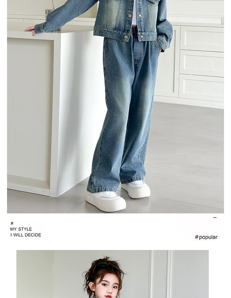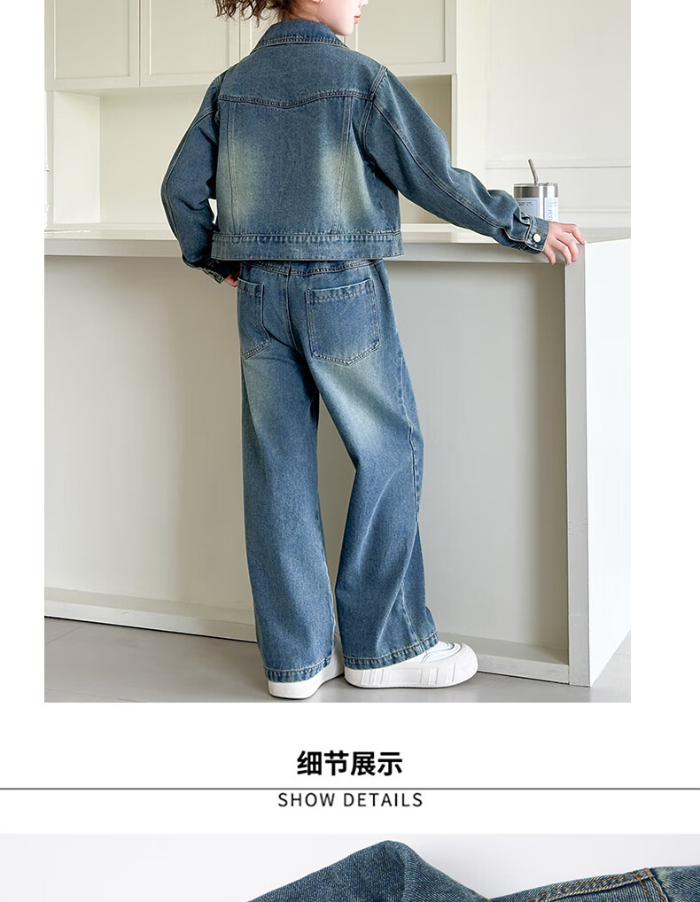 WOATI International Imported Big Brand Children's Clothing Girls Autumn Denim Suit 2025 New Children's Fashionable Spring and Autumn Medium and Large Blue Jacket + Pants 130 cm
