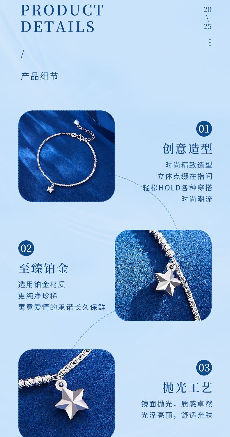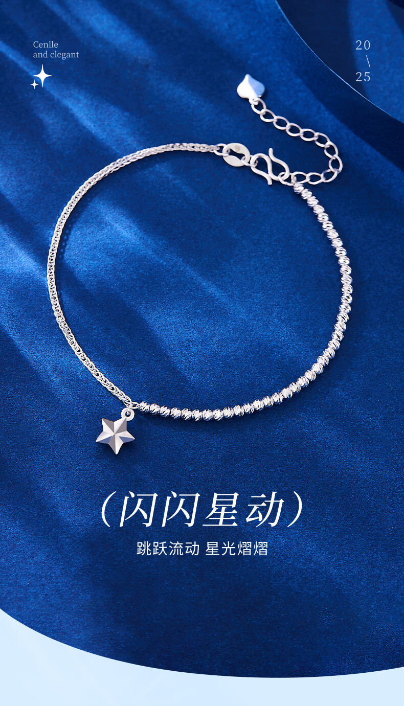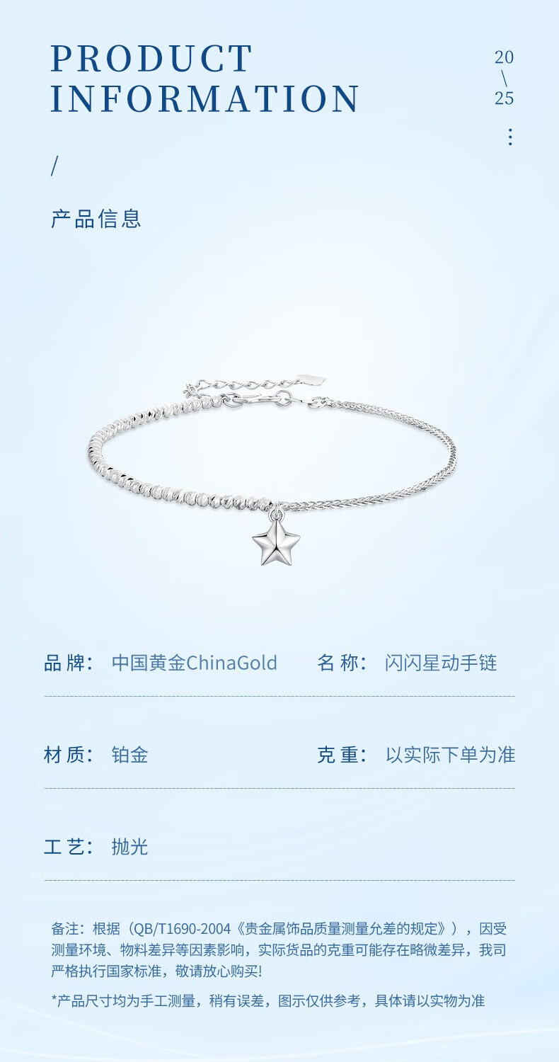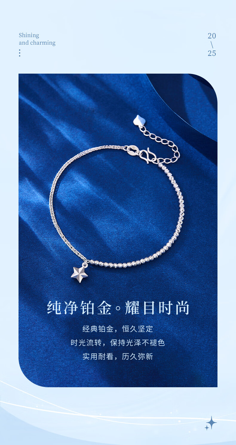 CHINA GOLD PT950 Platinum Star Bracelet Women's New Platinum Bracelet Valentine's Day Birthday Gift for Girlfriend and Wife Platinum Star Bracelet About 3.5g