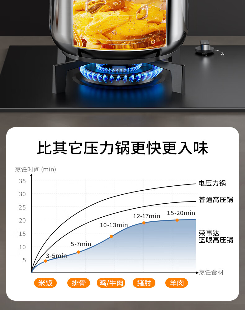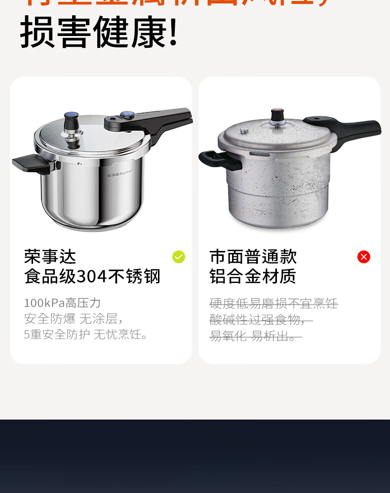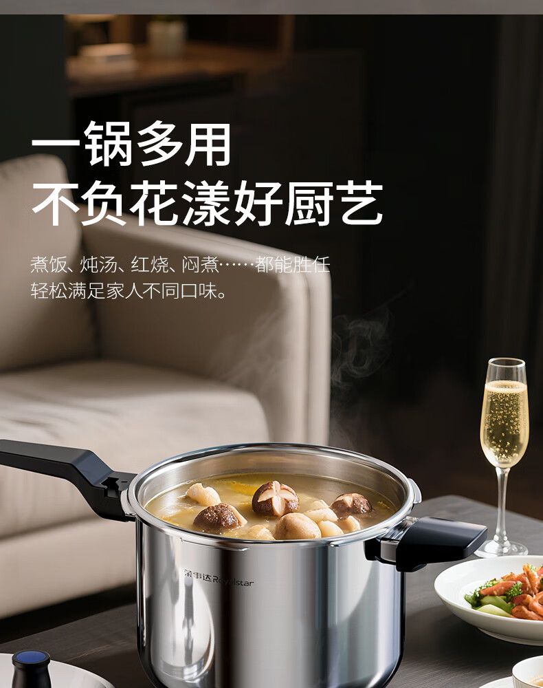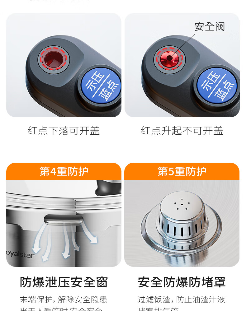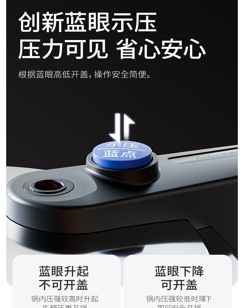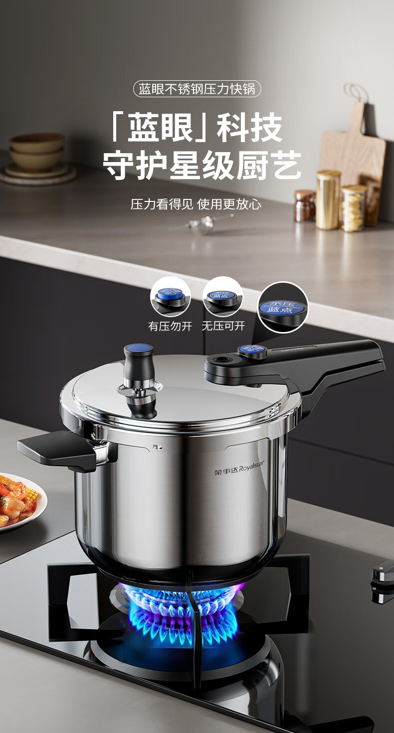 Royalstar pressure cooker household 304 stainless steel explosion-proof pressure cooker small new pot gas induction cooker universal 100kPa-blue dot pressure indicator (suitable for 2-3 people) 22cm 4L
