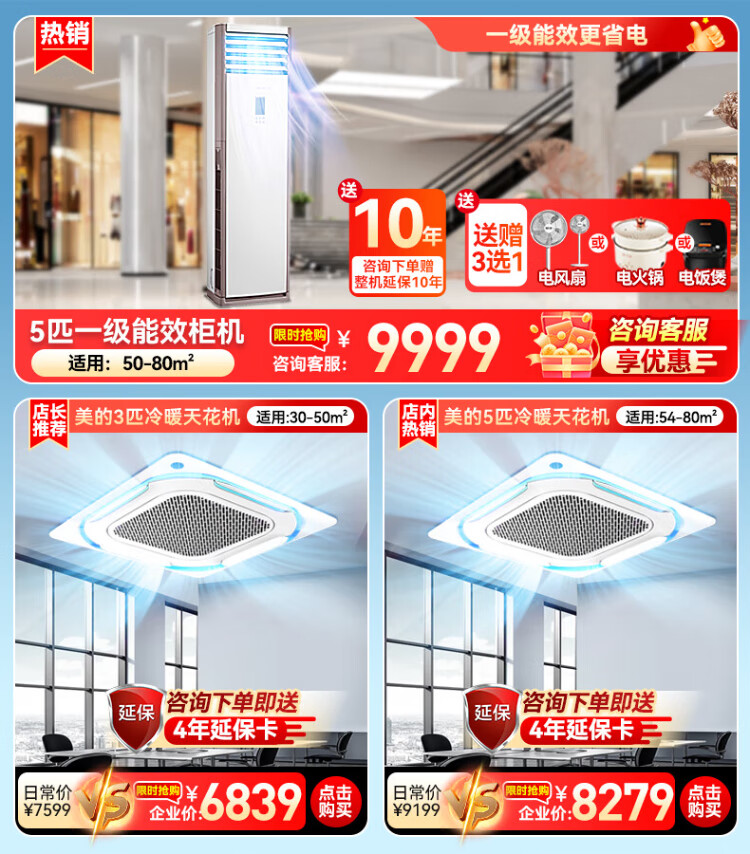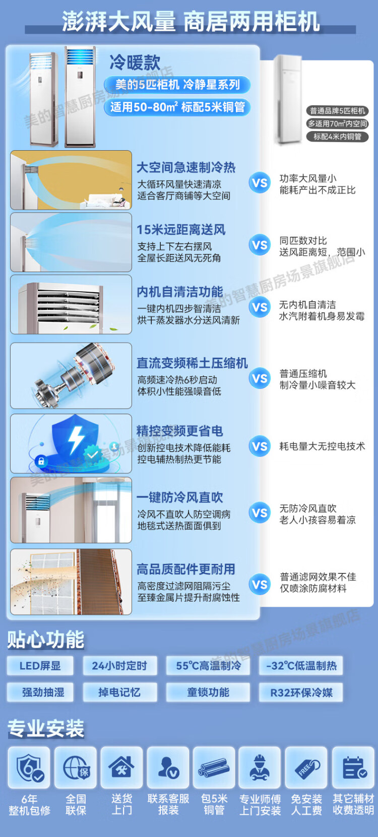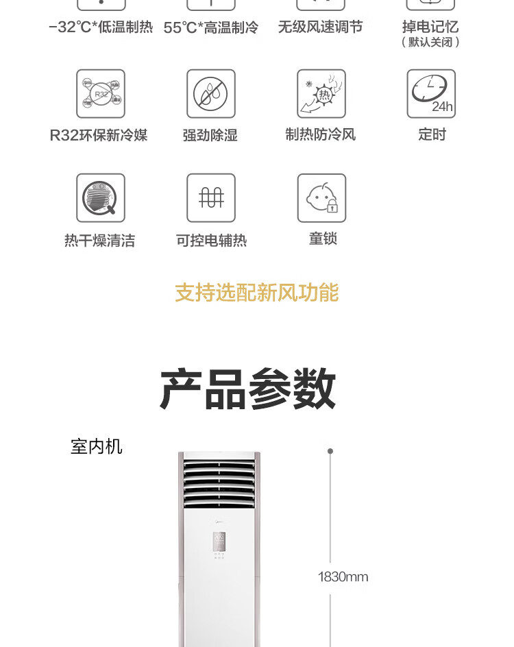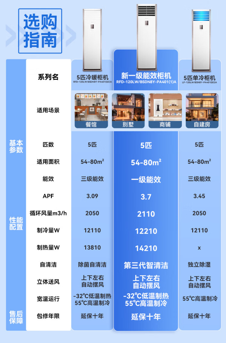 Midea Central Air Conditioning 5 HP Cabinet Air Conditioner Commercial Cabinet Vertical First Class Energy Efficiency Cooling and Heating Frequency Converter 380V RFD-120LW/BSDN8Y-PA401(1)A package 5 meters copper pipe 5 HP First Class Energy Efficiency Support special invoicing/public/price change