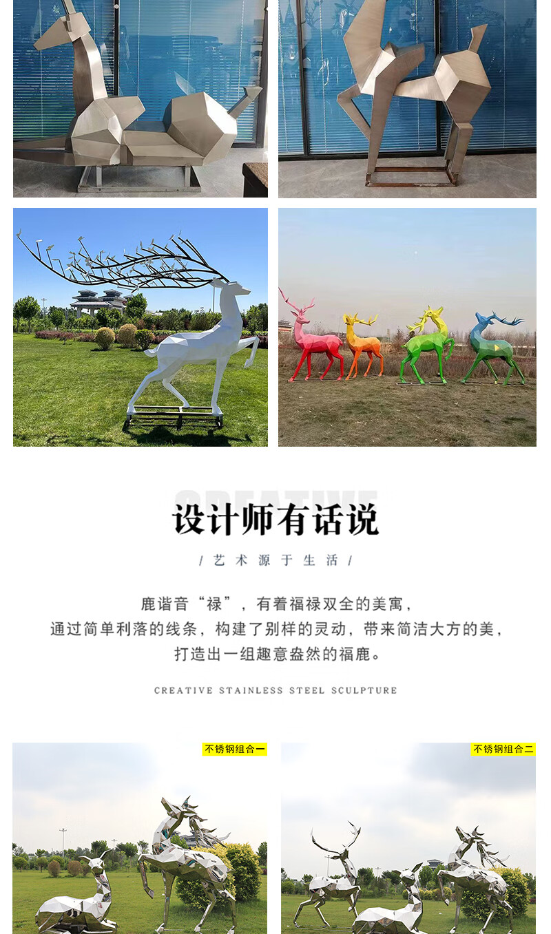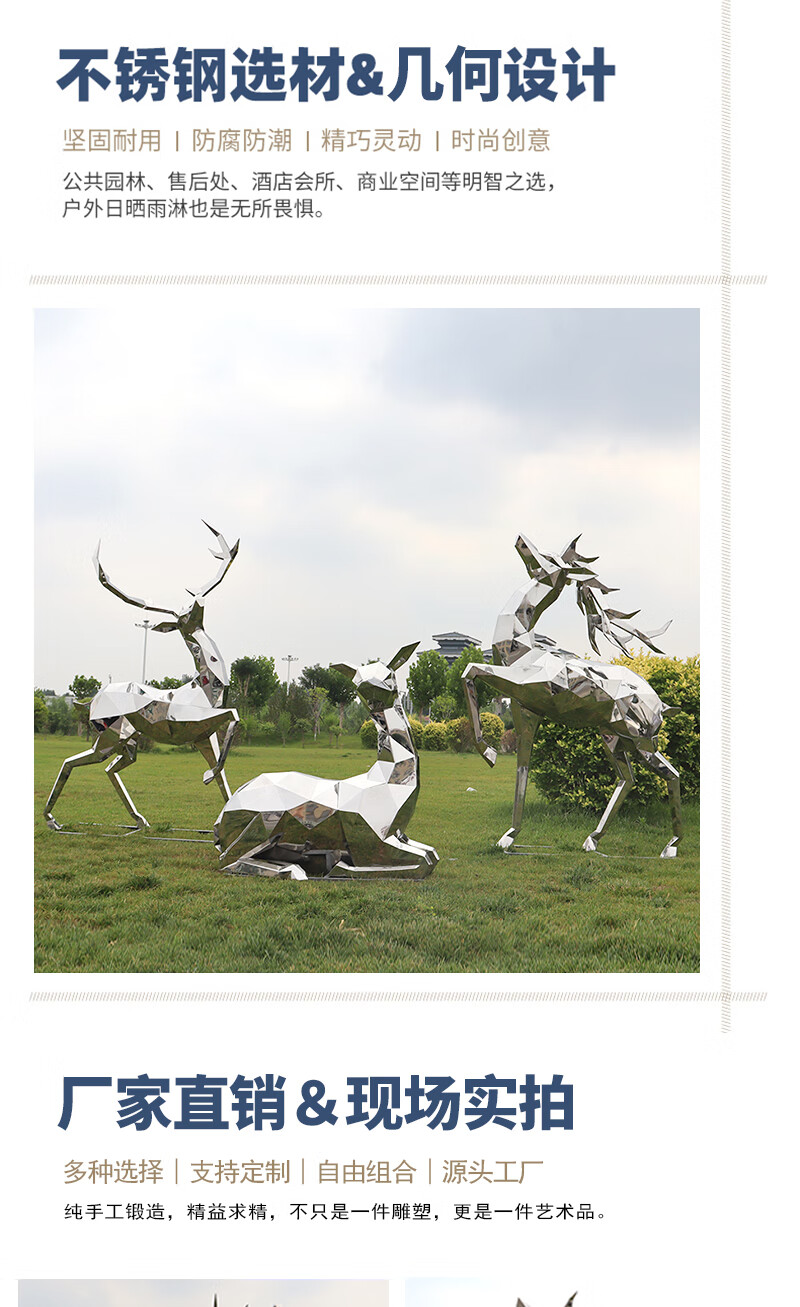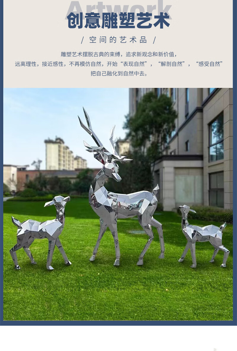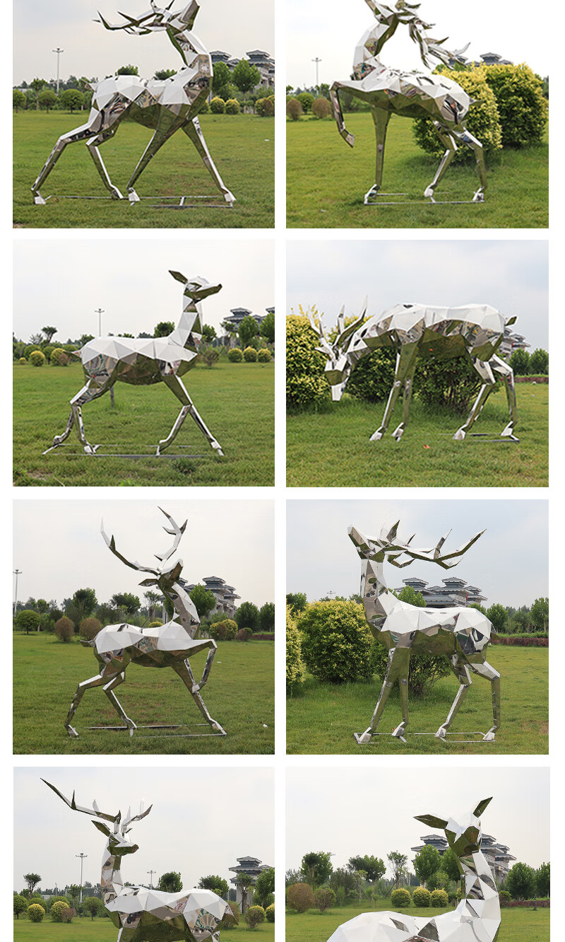 Stainless Steel Deer Sculpture Customized Large Geometric Sectioned Mirror Luminous Hollow Abstract Animal Outdoor Landscape Ornament Customized Contact Customer Service for Details