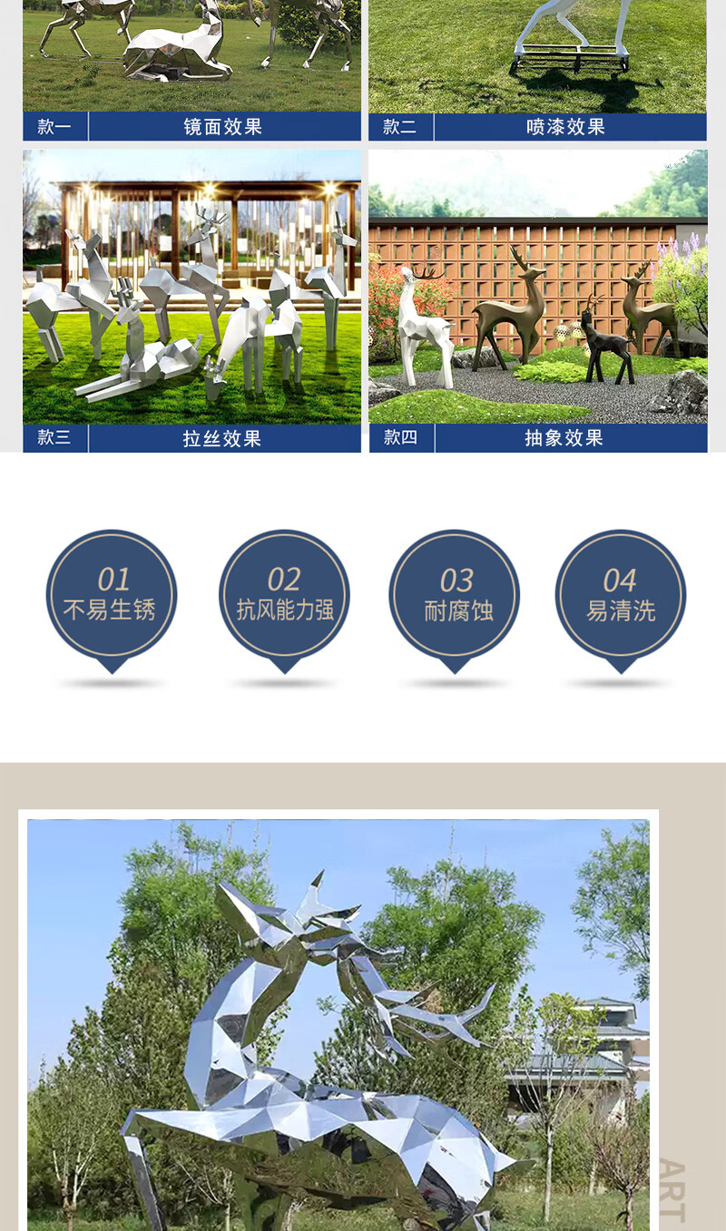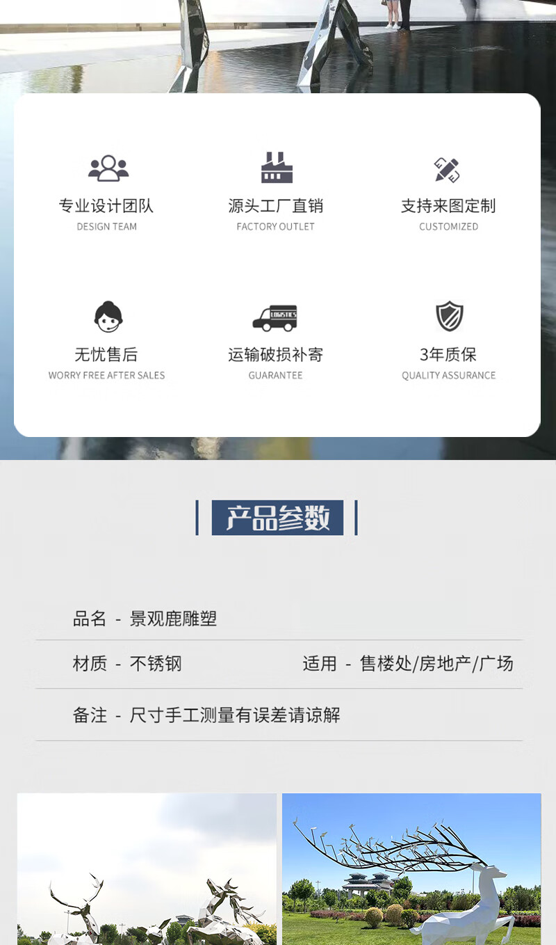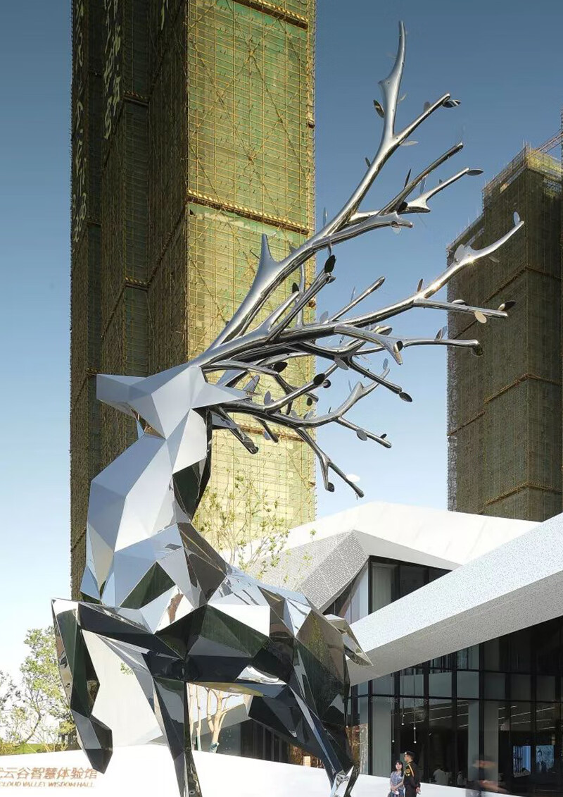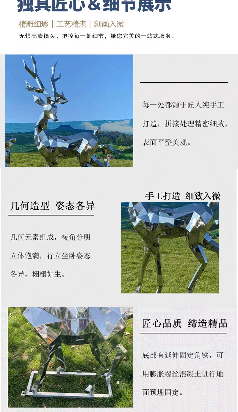 Stainless Steel Deer Sculpture Customized Large Geometric Sectioned Mirror Luminous Hollow Abstract Animal Outdoor Landscape Ornament Customized Contact Customer Service for Details