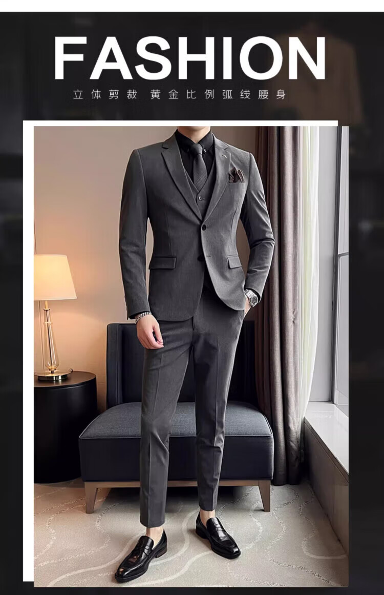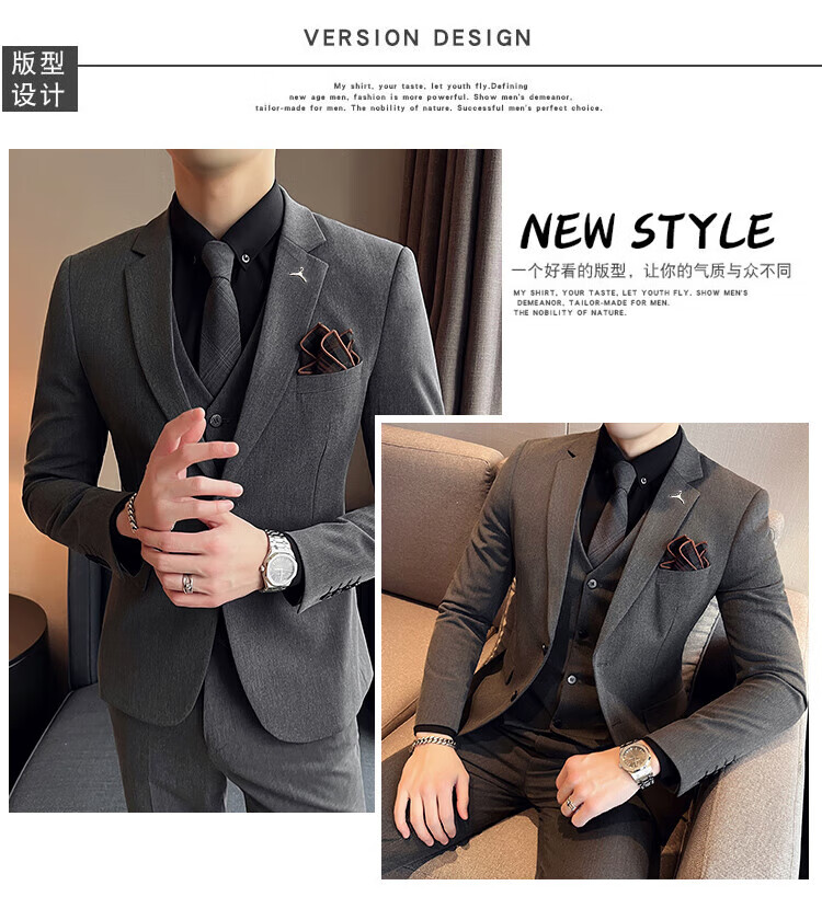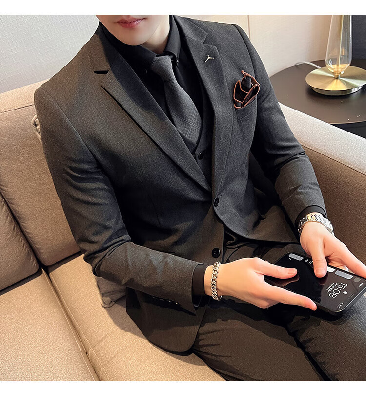 Playboy (PLAYBOY) 2025 New Customized Groom’s Suit Suit Business Professional Formal Wedding Dress Casual British Slim Suit Two-piece Set Gray Suit + Pants (Free Brooch + Pocket Square) S Recommendation 80-90Jin Jin equals 0.5 kg