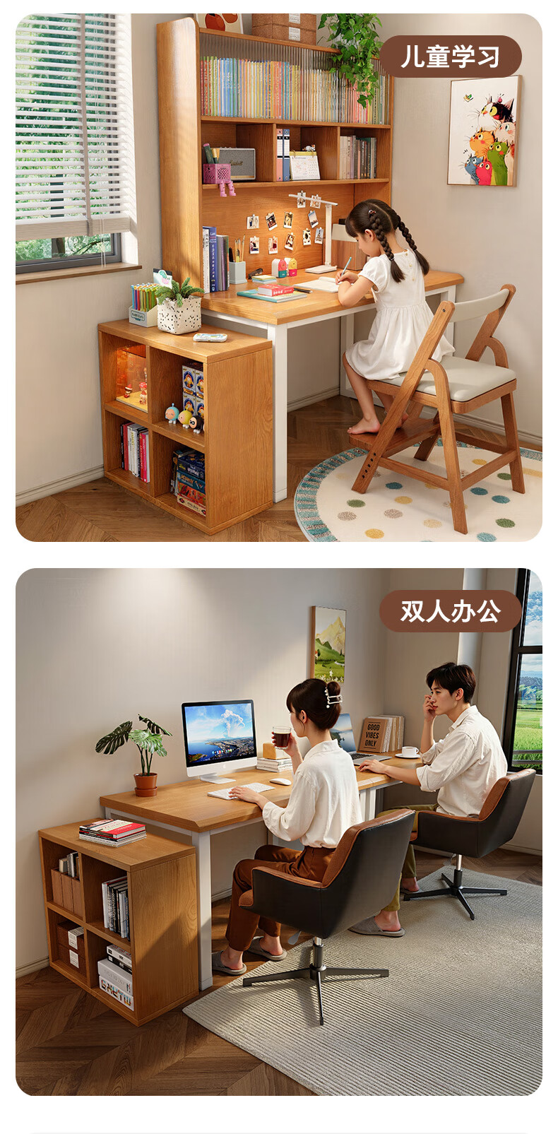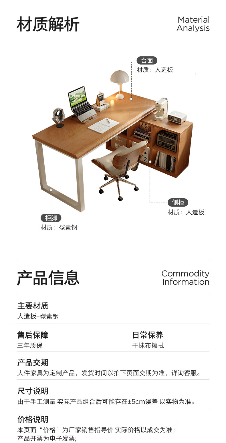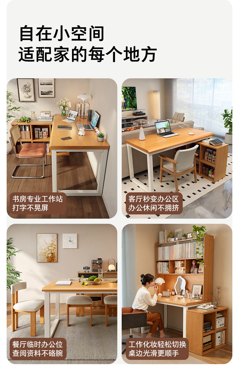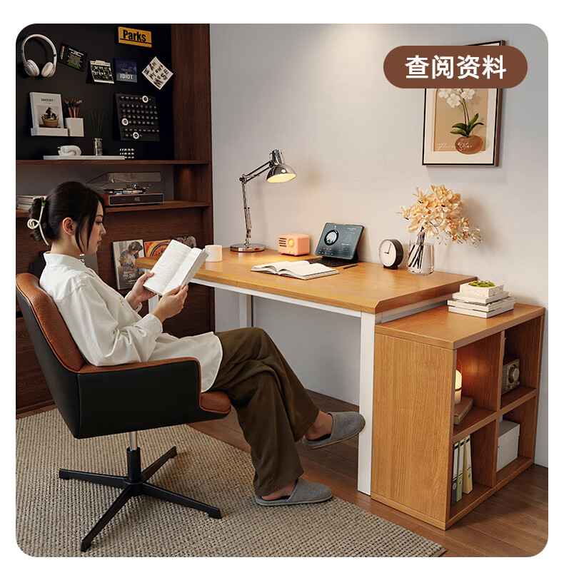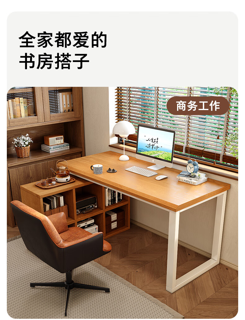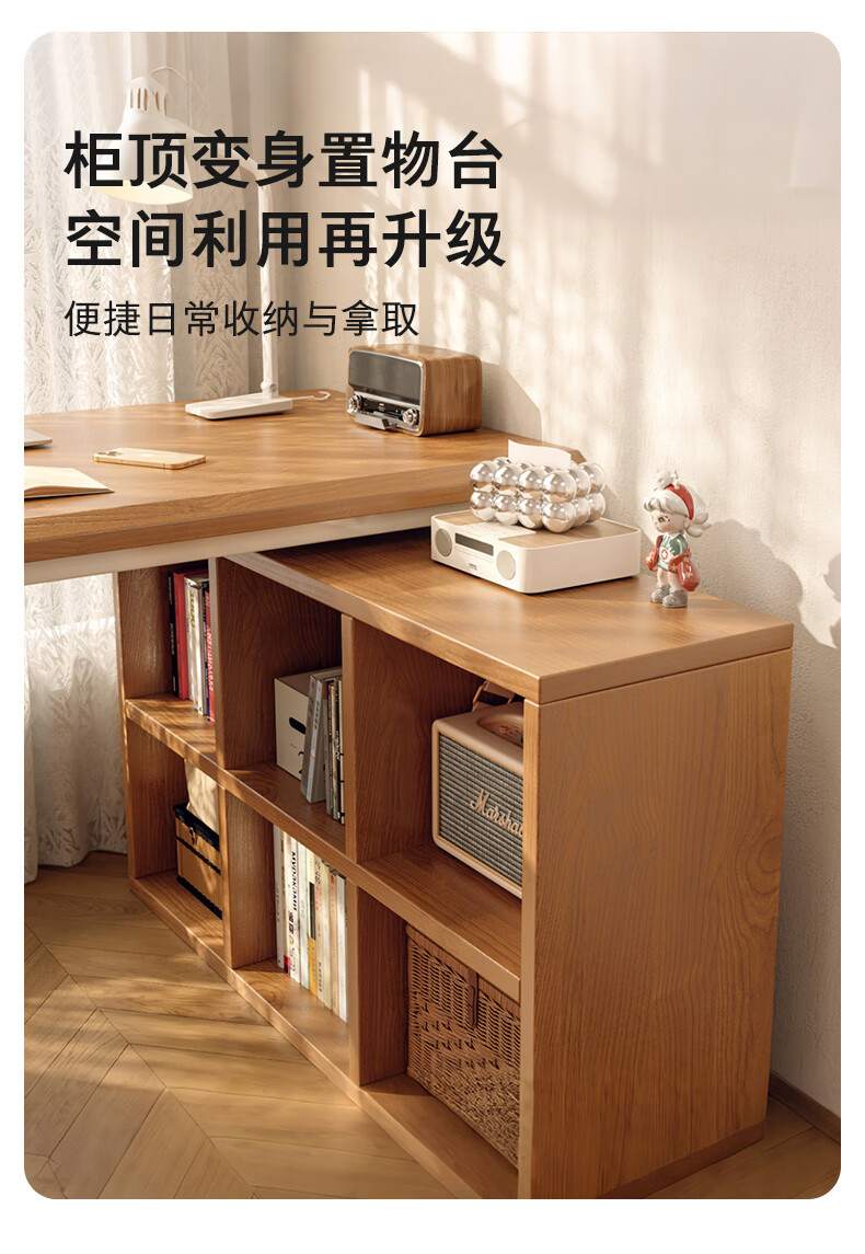 Gujia Home Corner Desk Bookcase Integrated Study Desk Computer Desk Home Study Desk Modern Simple Office Desk 1.2M Table + 6-Gate Cabinet Fresh Log Style Free Door-to-Door Delivery + Installation Included