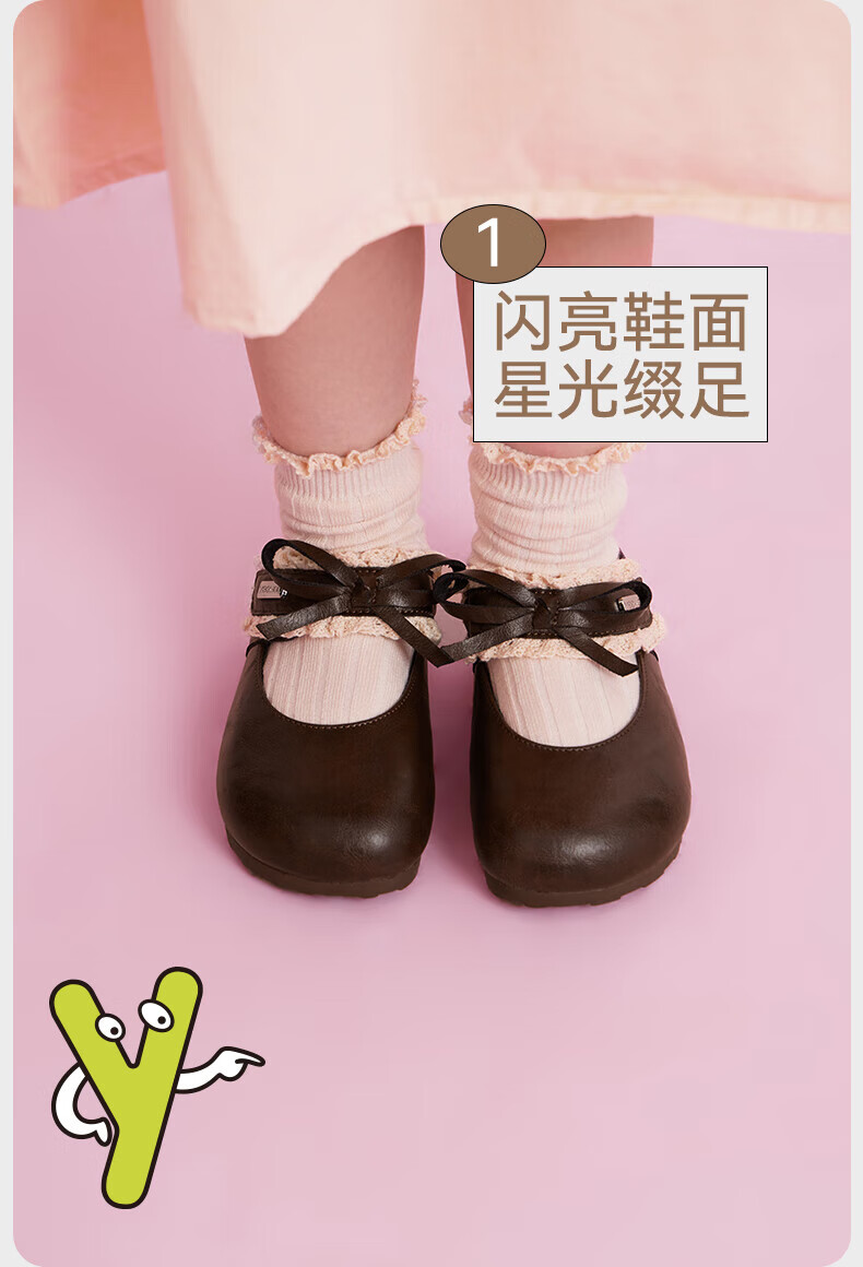 YEEHOO children's shoes girls' flat shoes 2025 autumn new soft-soled princess shoes children's bean shoes little girls leather shoes beige size 29 - suitable for feet 18.1-18.4cm long