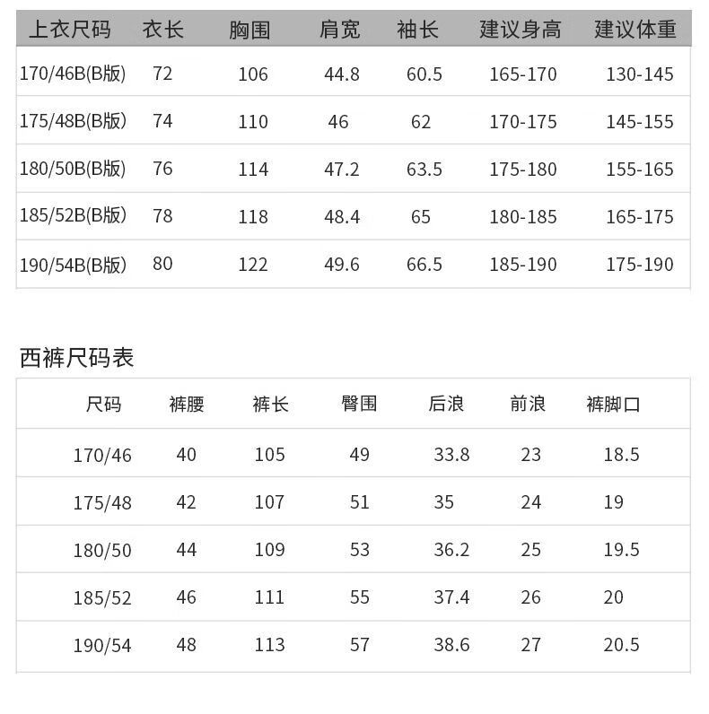 China (cm) 160-165/84-86 165-170 / 88-90 167-172 / 92-96 168-173 / 98-102 170-176 / 106-110