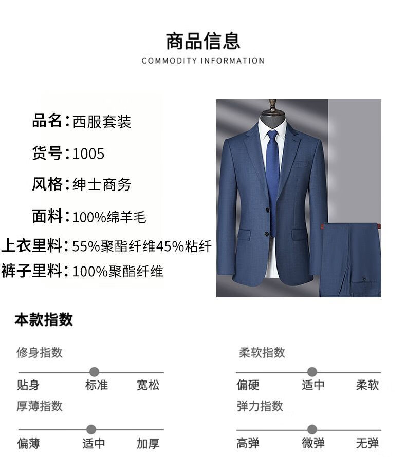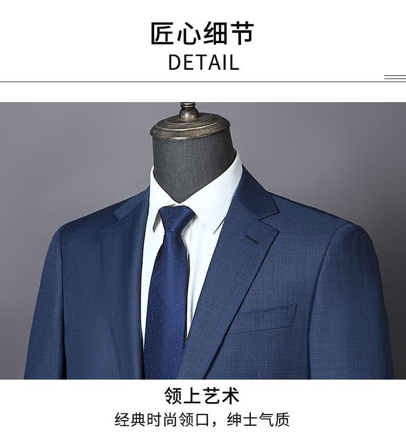 Pierre Cardin high-count worsted 100% wool suit, four seasons high-end professional formal fit, no ironing, business casual suit, blue XL 180