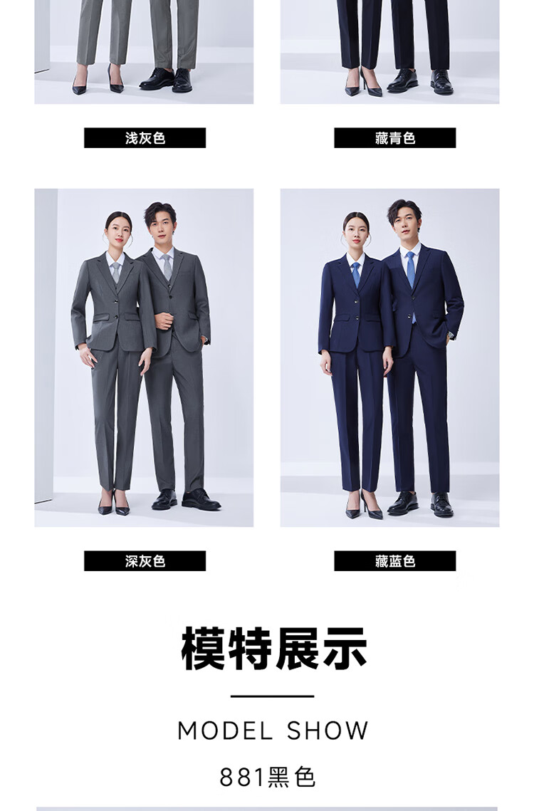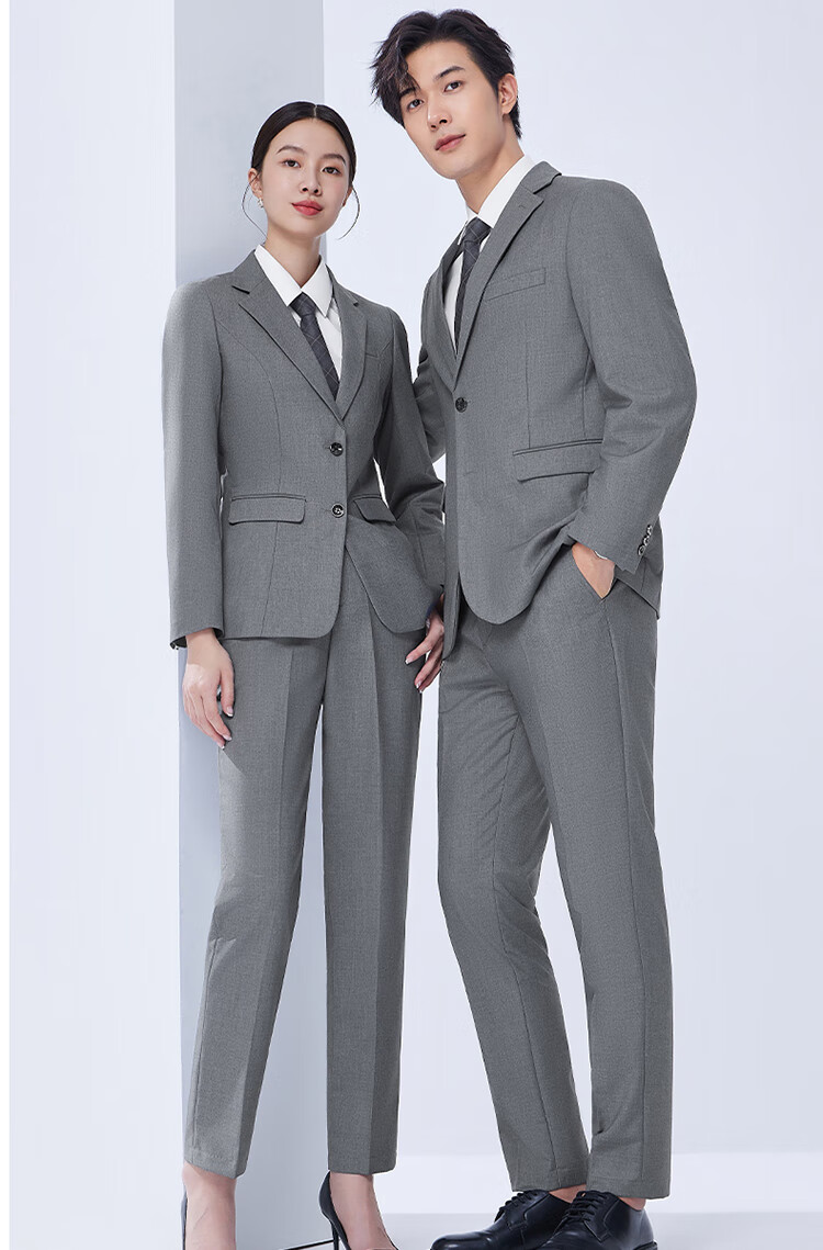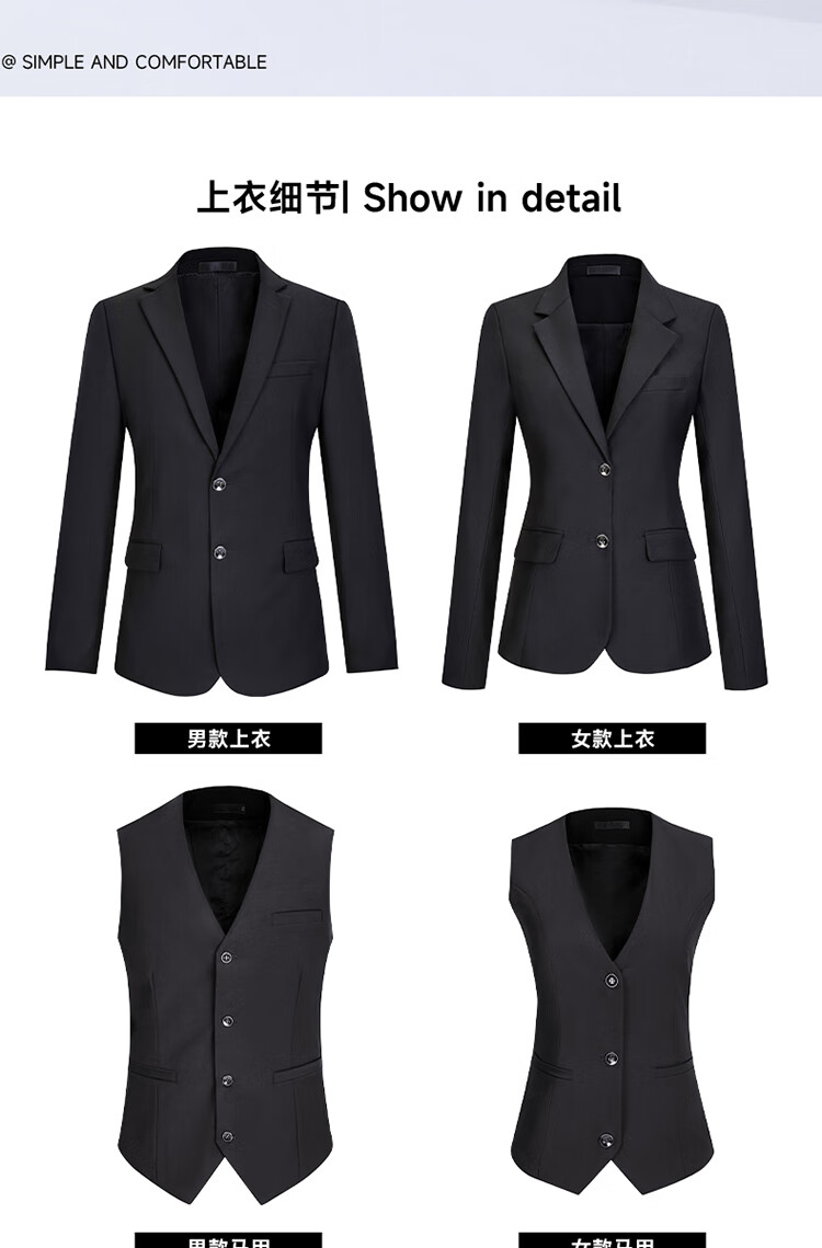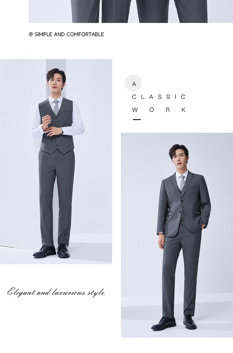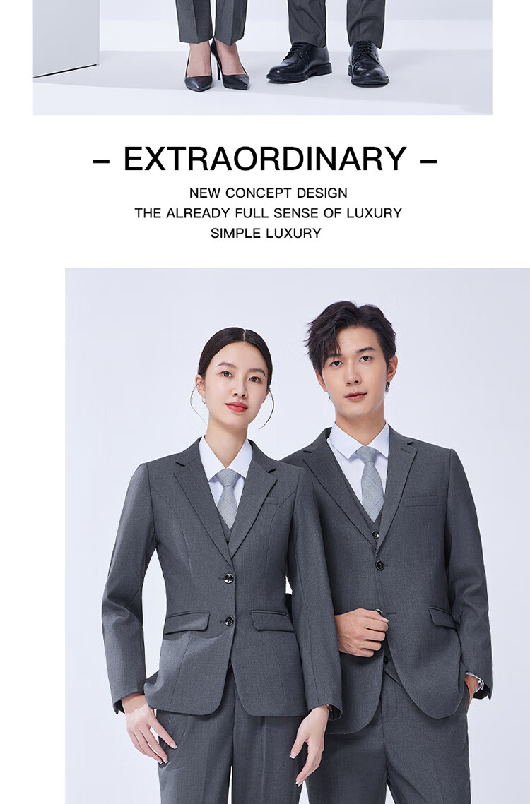 ROMON Gray Suit Suit Men's Business Wear Formal Hotel Unisex 4S Store Work Clothes Bank Suit Vest Navy Women's Suit + Trousers + White Shirt Three-piece Set