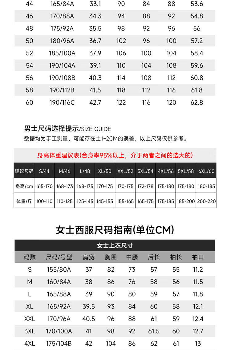 China (cm) 160-165/84-86 165-170 / 88-90 167-172 / 92-96 168-173 / 98-102 170-176 / 106-110