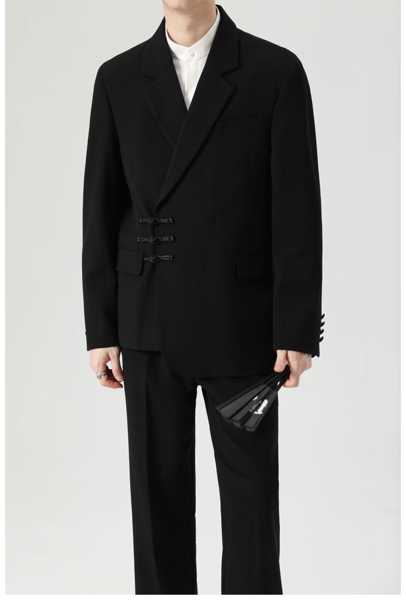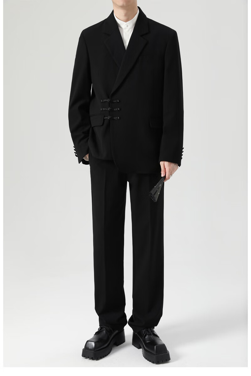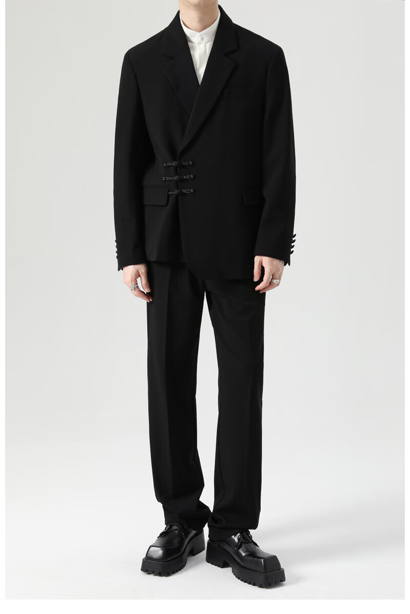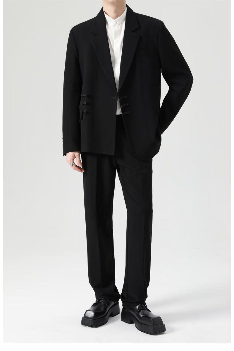 Sound Monkey New Chinese Style Pan Button Zhongshan Suit Jacket Men's Engagement Groom Wedding Suit Suit Dress Large Size Fat Man Suit Jacket+White Shirt+Black Suit Pants XL 115-130Jin Jin equals 0.5 kg