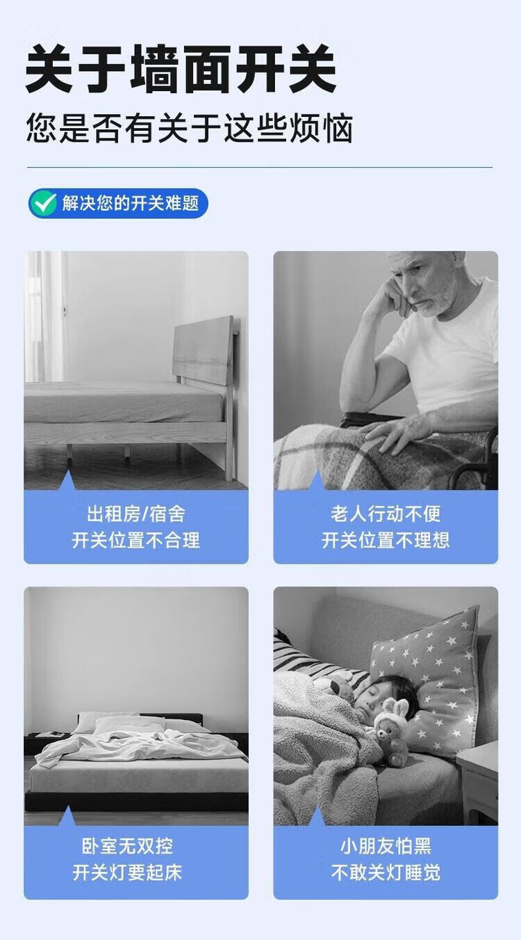 Mo Peng retro switch bean-shaped light-off artifact lazy bedroom lamp voice light can be timed small button old-fashioned universal Paw Patrol black host + 1 black remote control (supports bean-shaped switch)