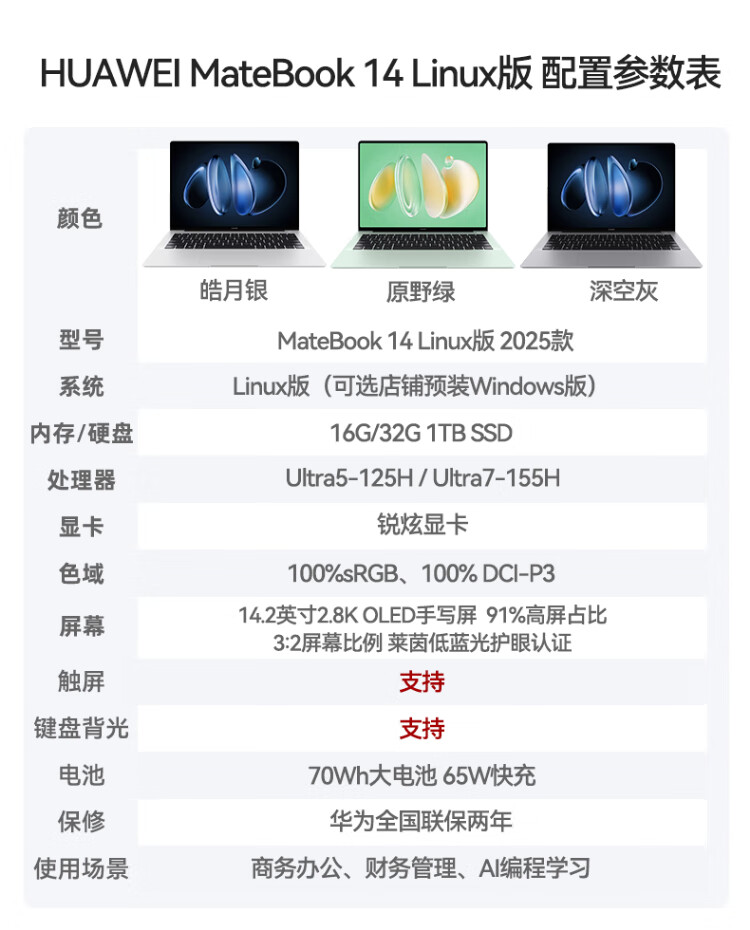 Huawei MateBook 14 Linux version laptop government subsidy touch screen high brush 2.8K OLED screen business office learning performance thin and light portable computer Ultra5 deep space gray 16G+1TB store pre-installed Windows (not activated)