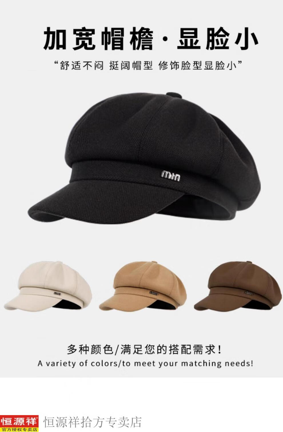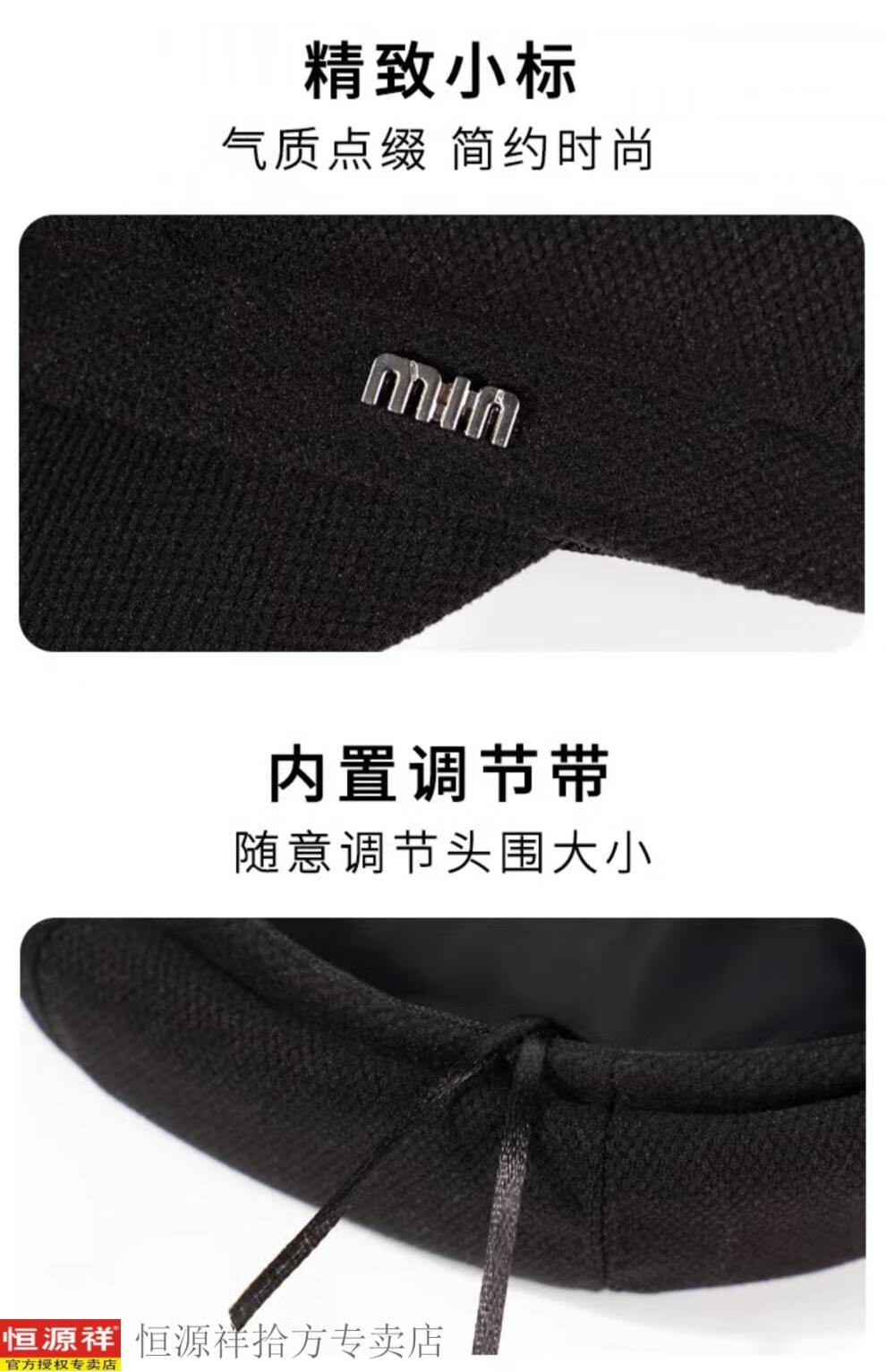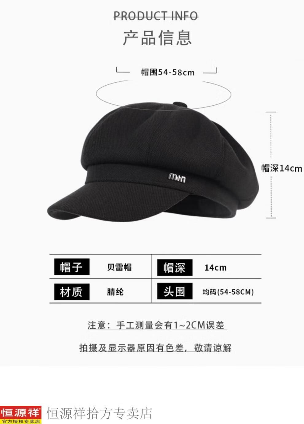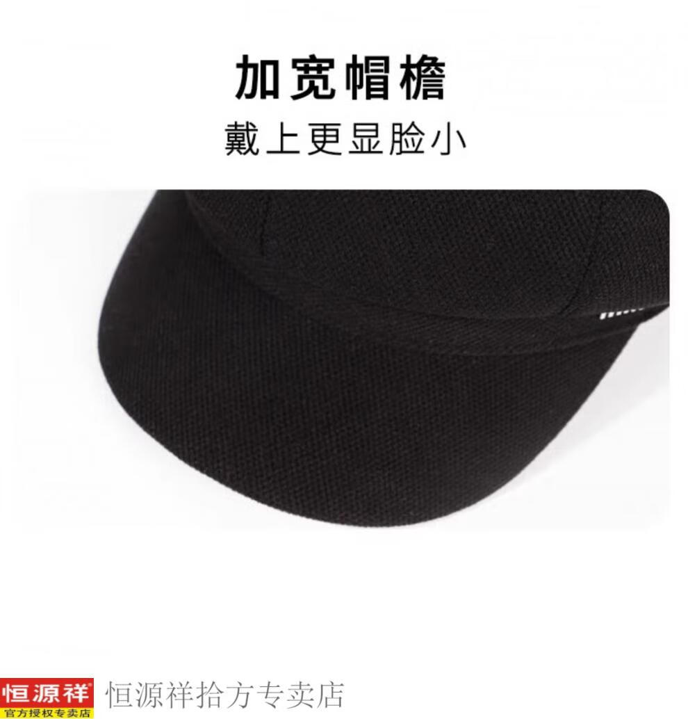 Hengyuanxiang's new beret for women in autumn and winter, small duck tongue, octagonal hat, large head circumference, French retro black newsboy hat, trendy black M, one size fits all, adjustable (54-58c)