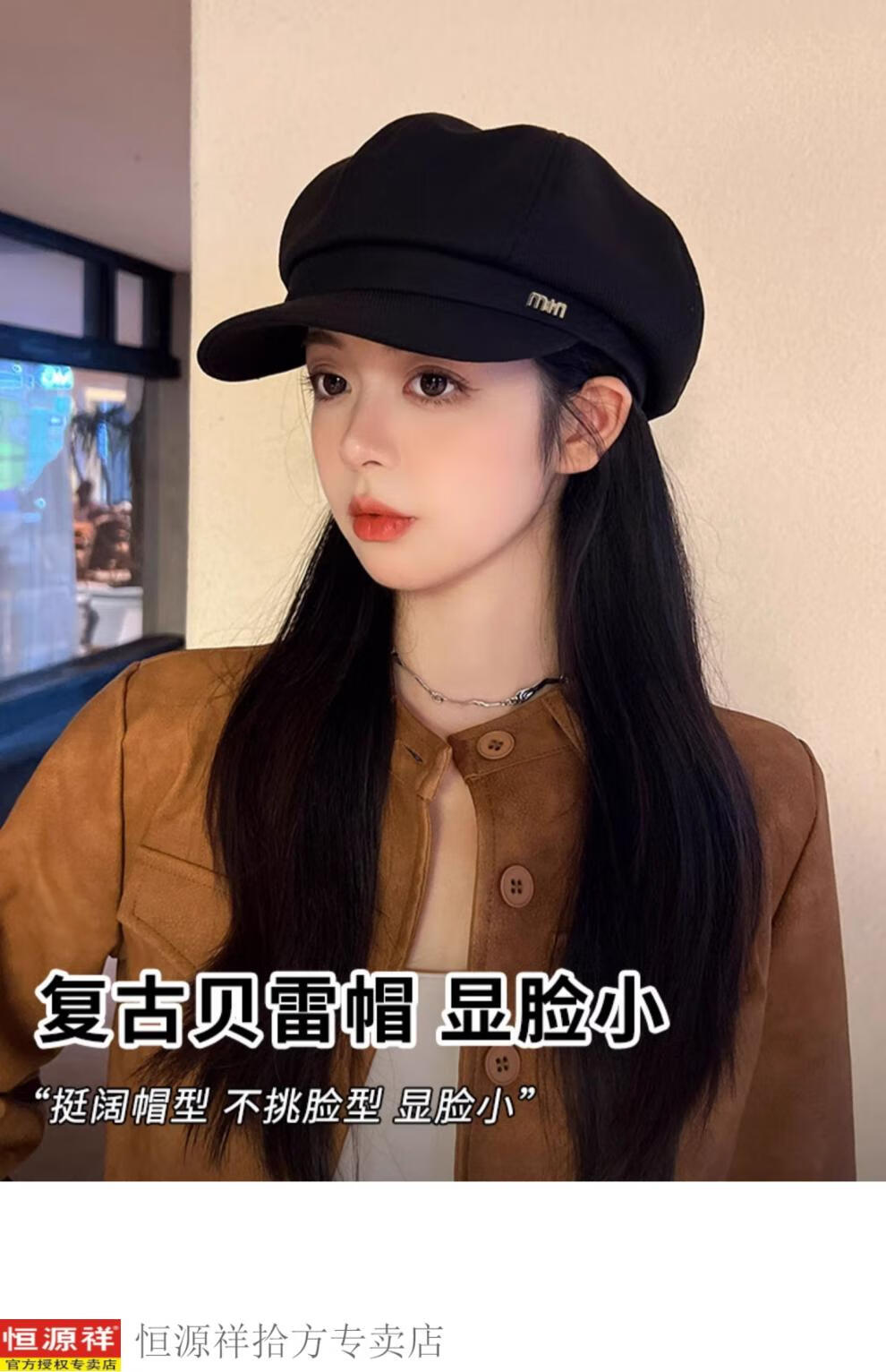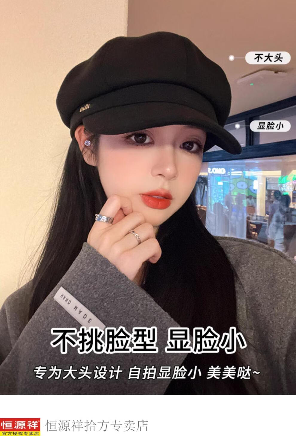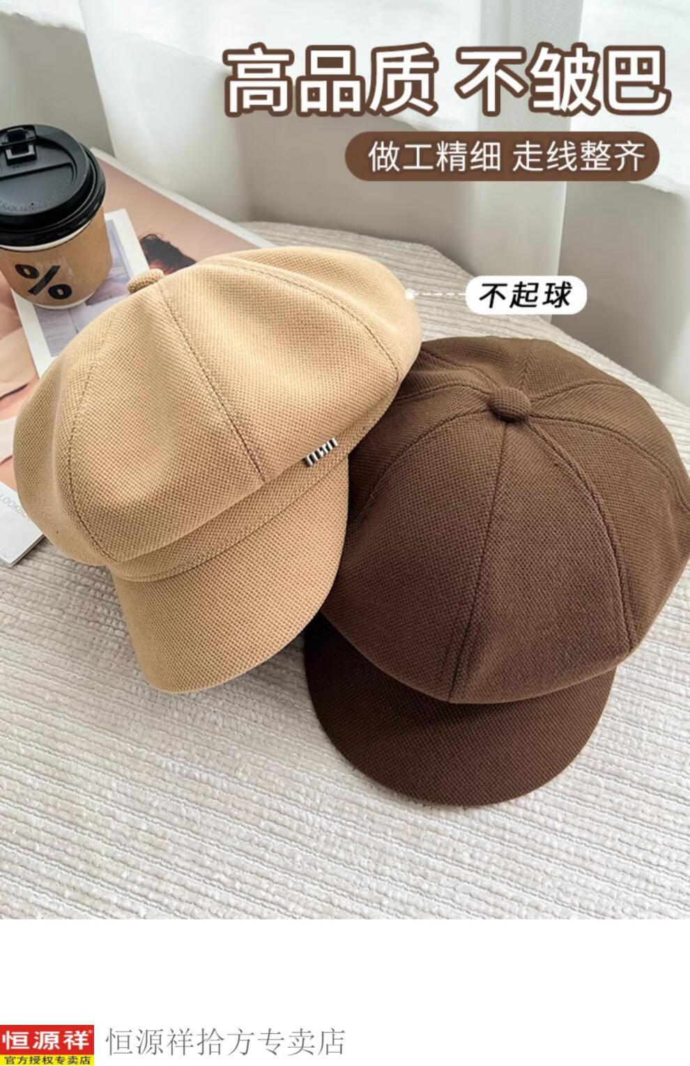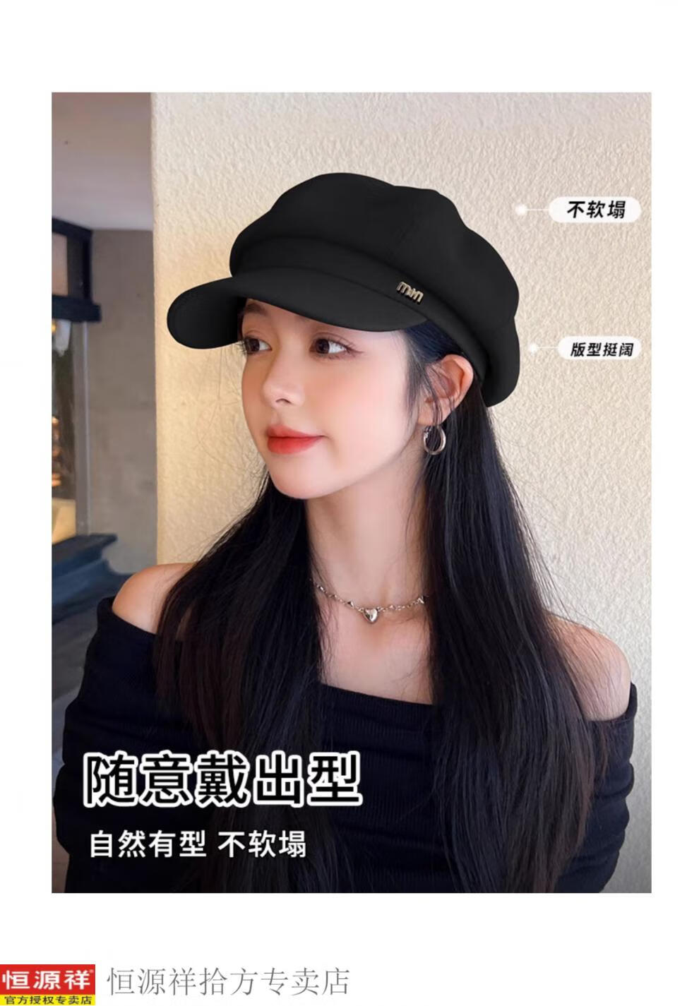 Hengyuanxiang's new beret for women in autumn and winter, small duck tongue, octagonal hat, large head circumference, French retro black newsboy hat, trendy black M, one size fits all, adjustable (54-58c)