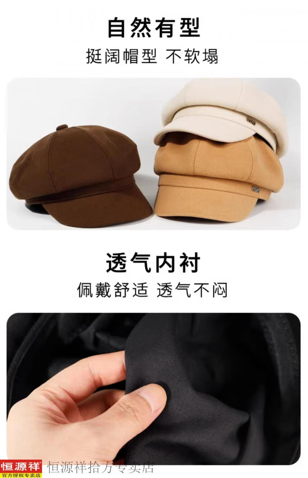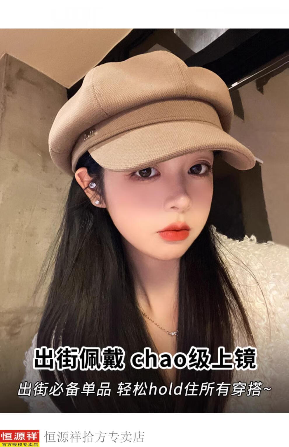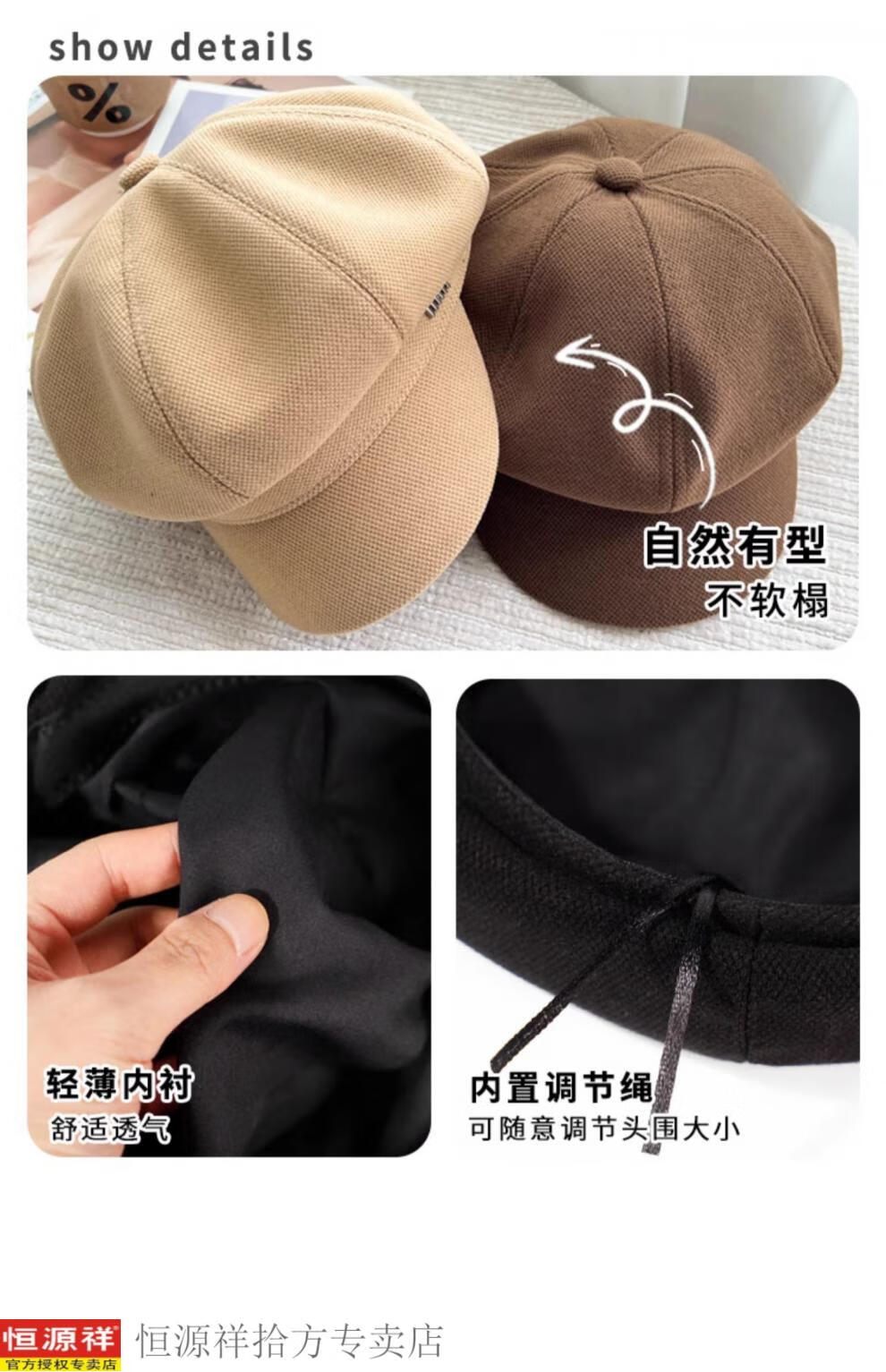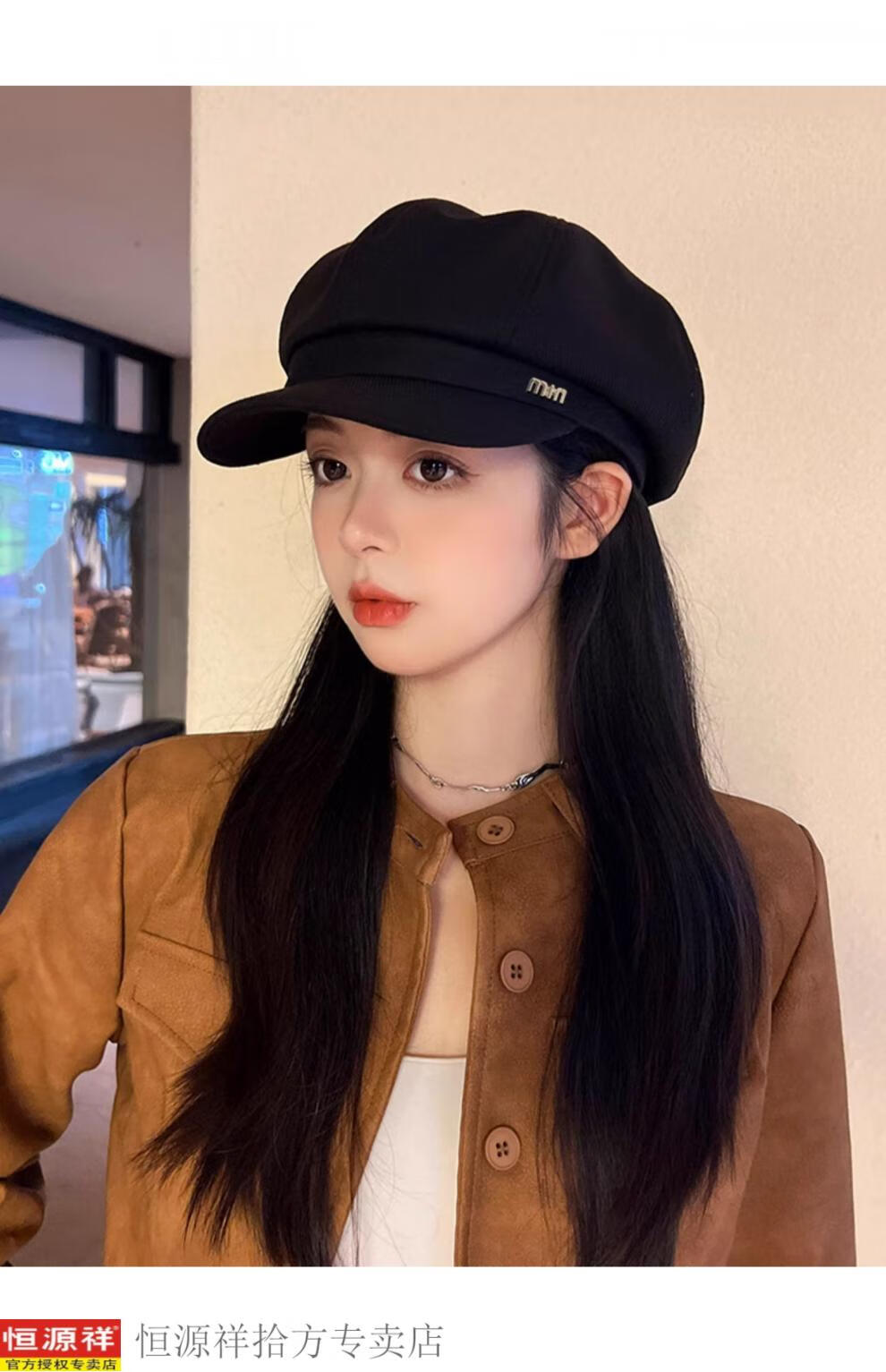 Hengyuanxiang's new beret for women in autumn and winter, small duck tongue, octagonal hat, large head circumference, French retro black newsboy hat, trendy black M, one size fits all, adjustable (54-58c)