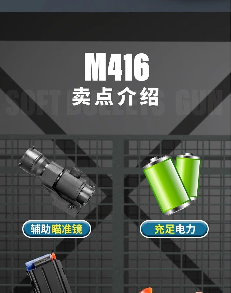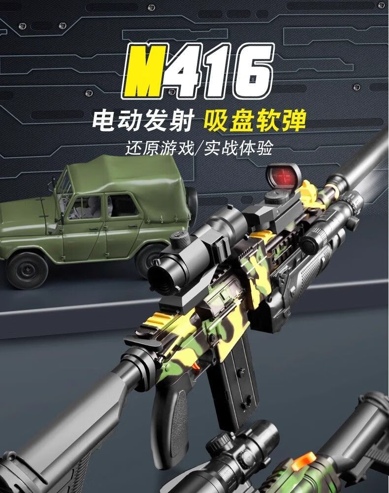 Bonas Assault Rifle Electric Burst M416 Manual Soft Bullet Children's Toy Submachine Gun Delta Chicken Game Same Style Side Pull Single Shot Rifle Pure Black Standard 10 Soft Bullets